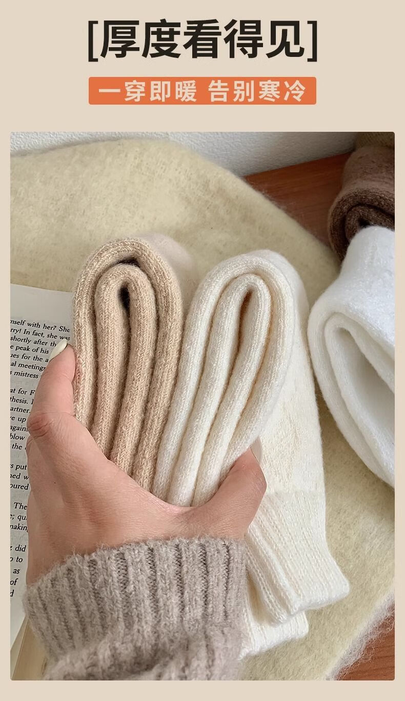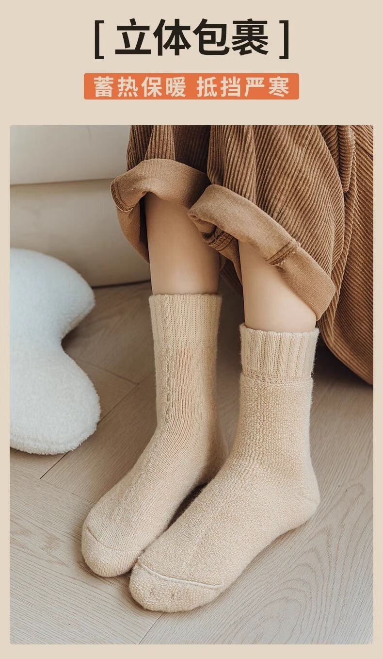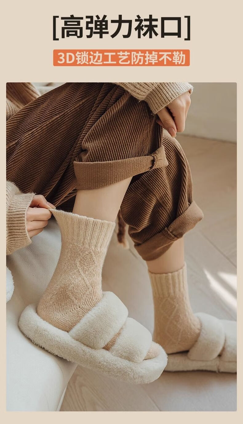 雅鹿毛圈袜子女中筒袜秋冬款加厚保暖袜防臭抗冻长筒袜花纹百搭堆堆袜 随机二色【共2双】 均码 雅鹿 10A抑菌/高弹透气/抗起球