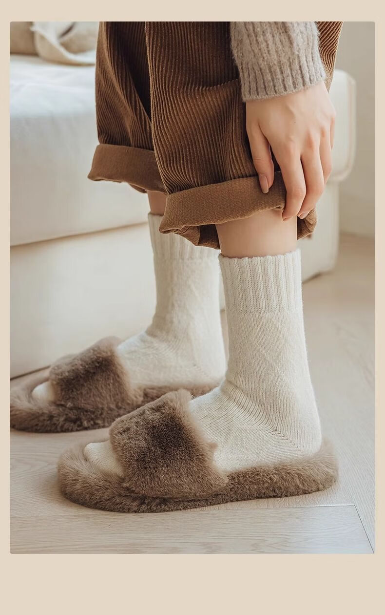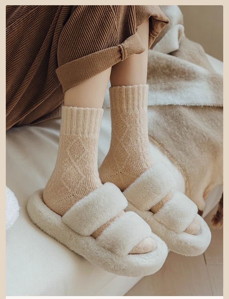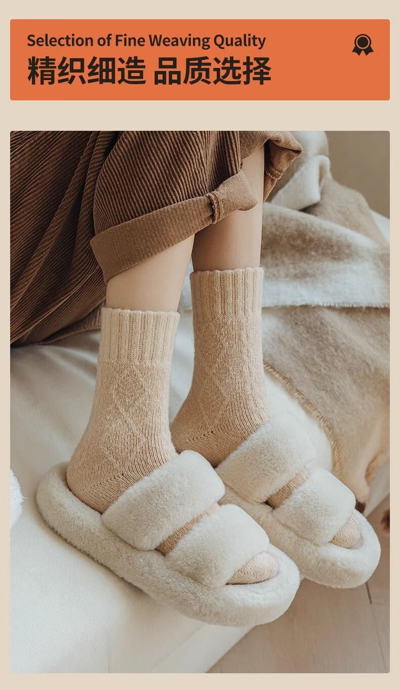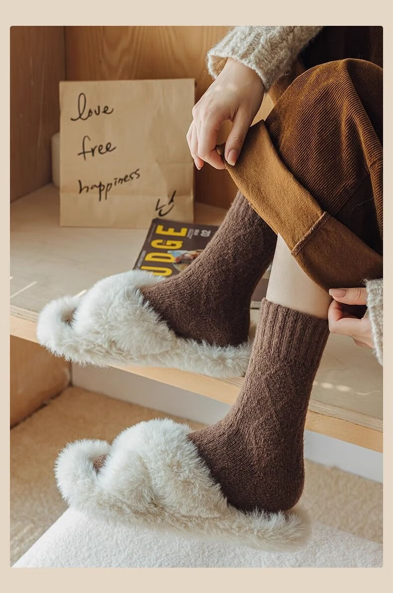 雅鹿毛圈袜子女中筒袜秋冬款加厚保暖袜防臭抗冻长筒袜花纹百搭堆堆袜 随机二色【共2双】 均码 雅鹿 10A抑菌/高弹透气/抗起球