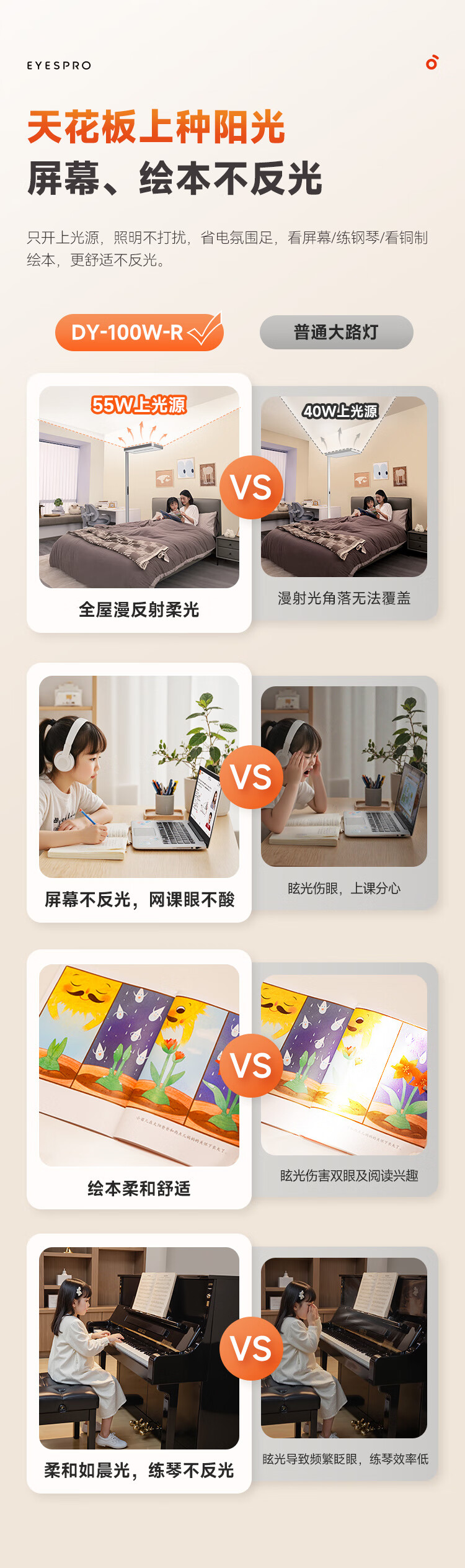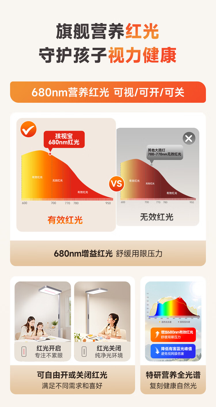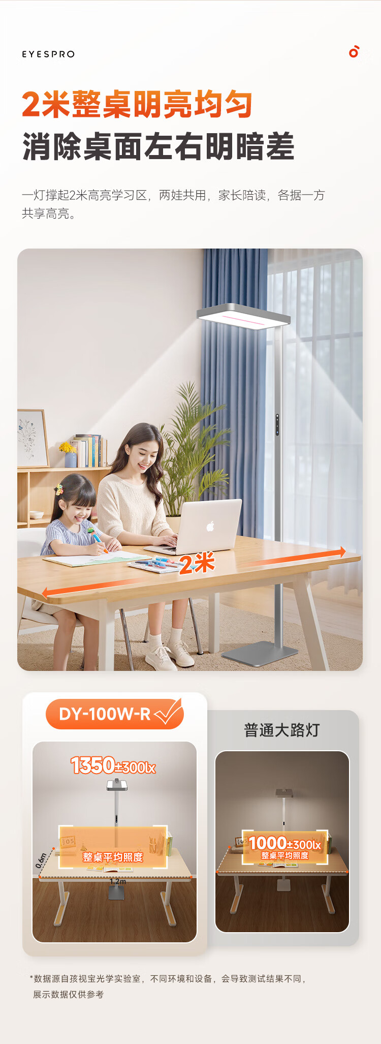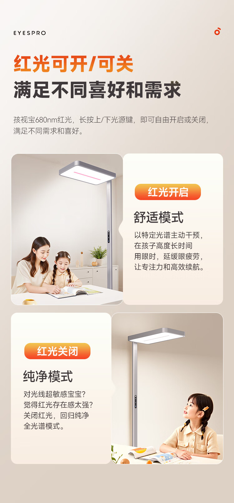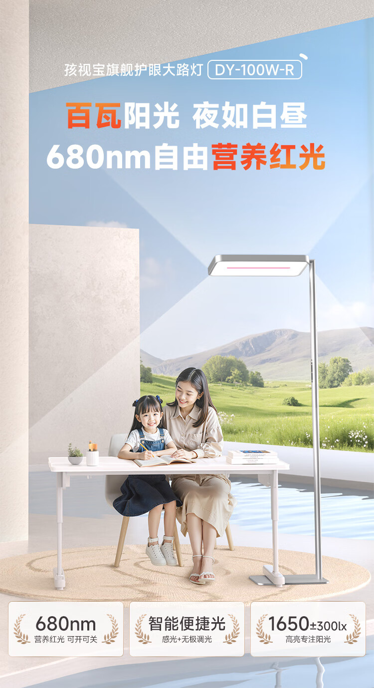 孩视宝立式大路灯全光谱护眼学习阅读家用落地台灯 DY-100W-R 红光护眼