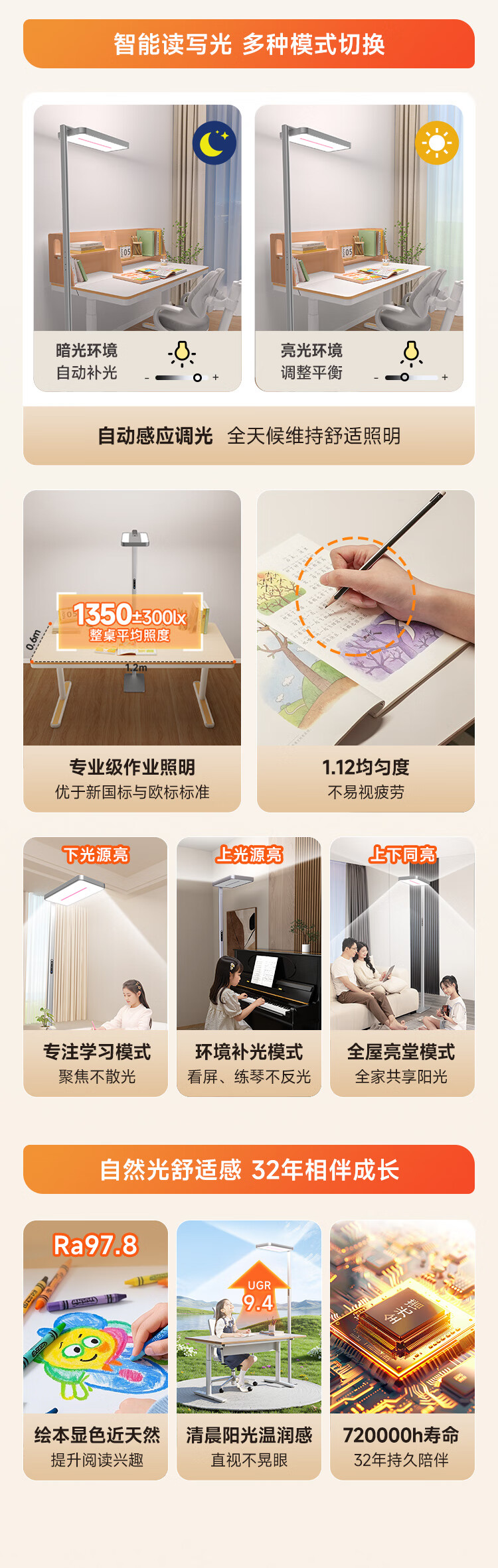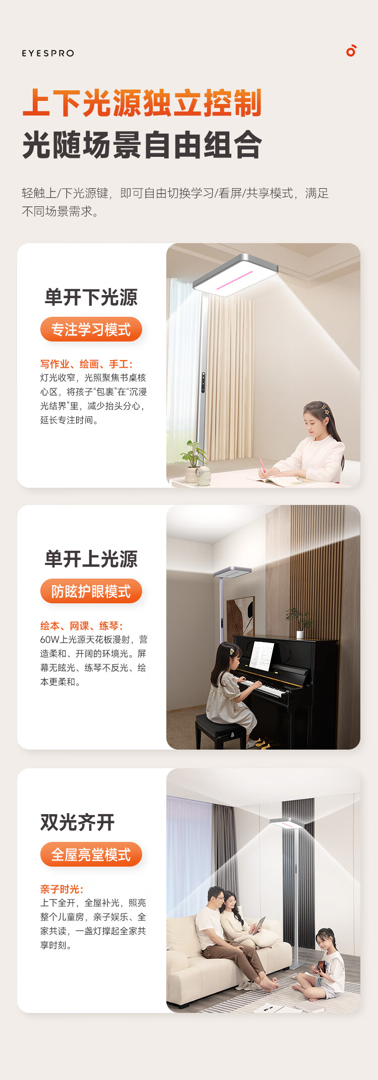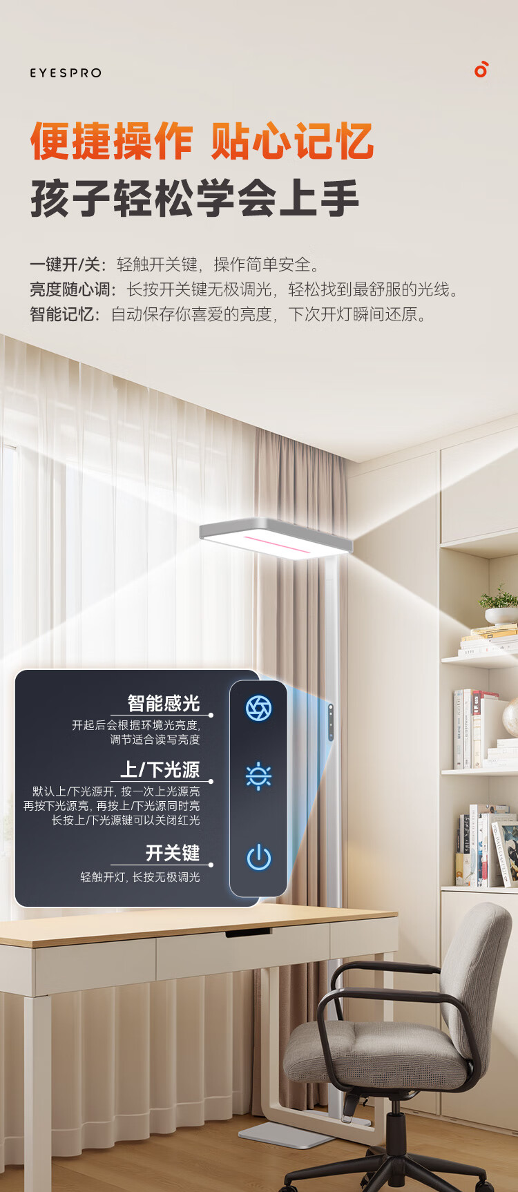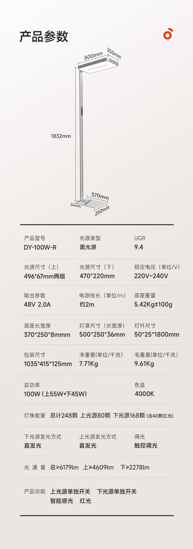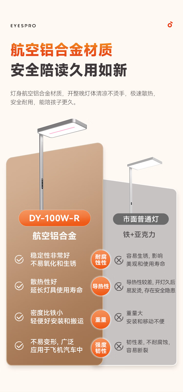 孩视宝立式大路灯全光谱护眼学习阅读家用落地台灯 DY-100W-R 红光护眼
