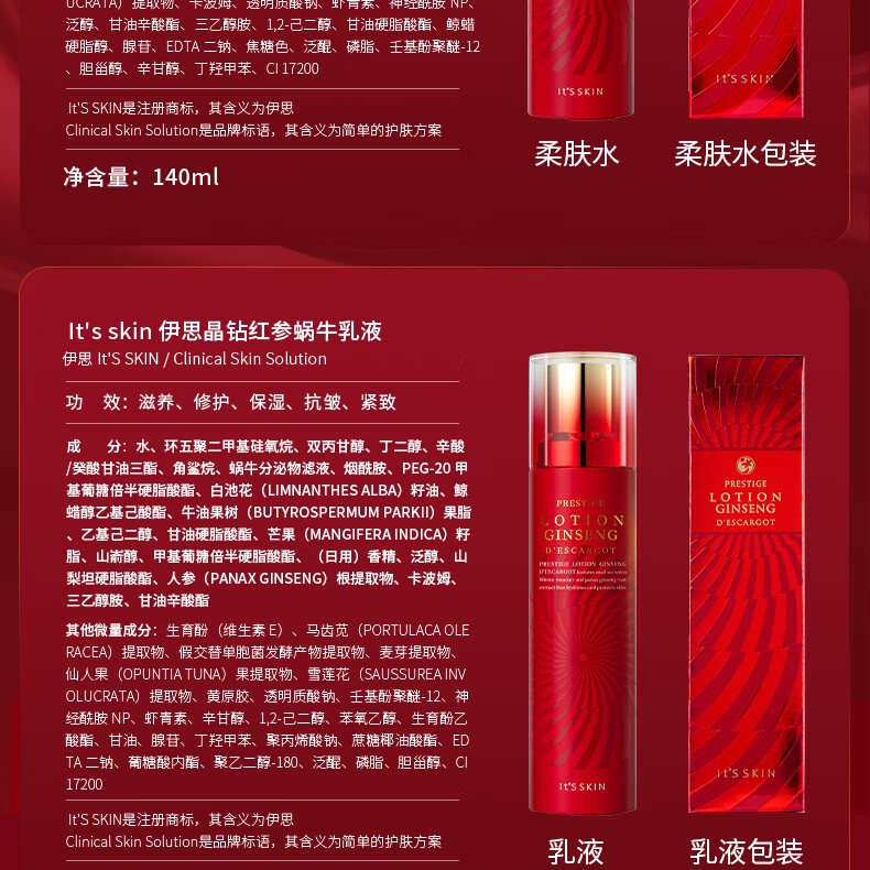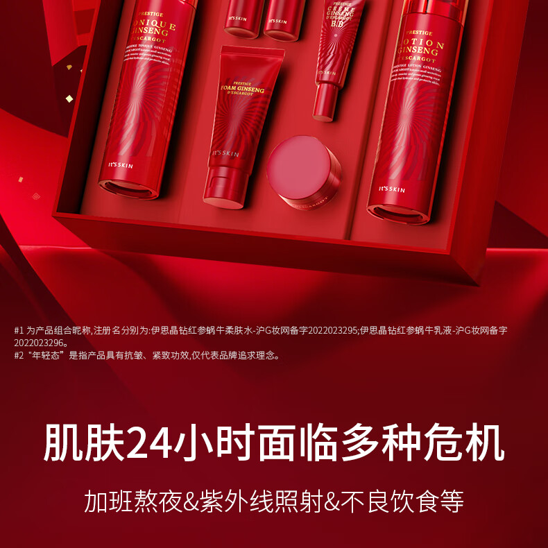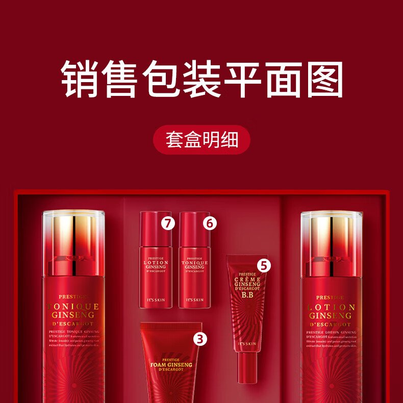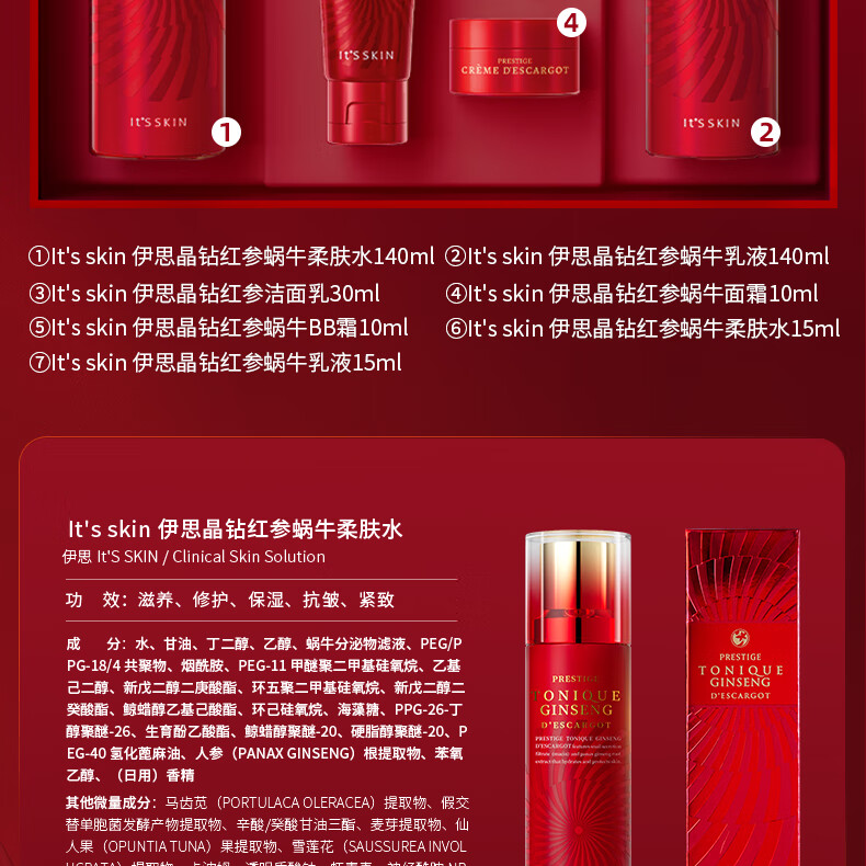 伊思(It’s skin)红参蜗牛水乳7件套装 抗皱淡化细纹提拉紧致护肤品礼盒圣诞礼物女