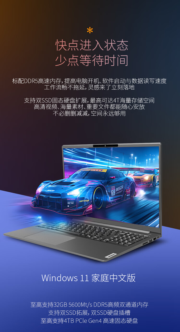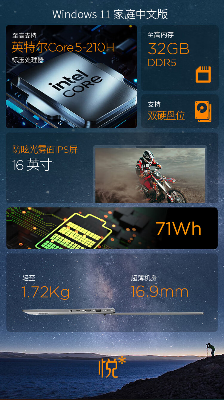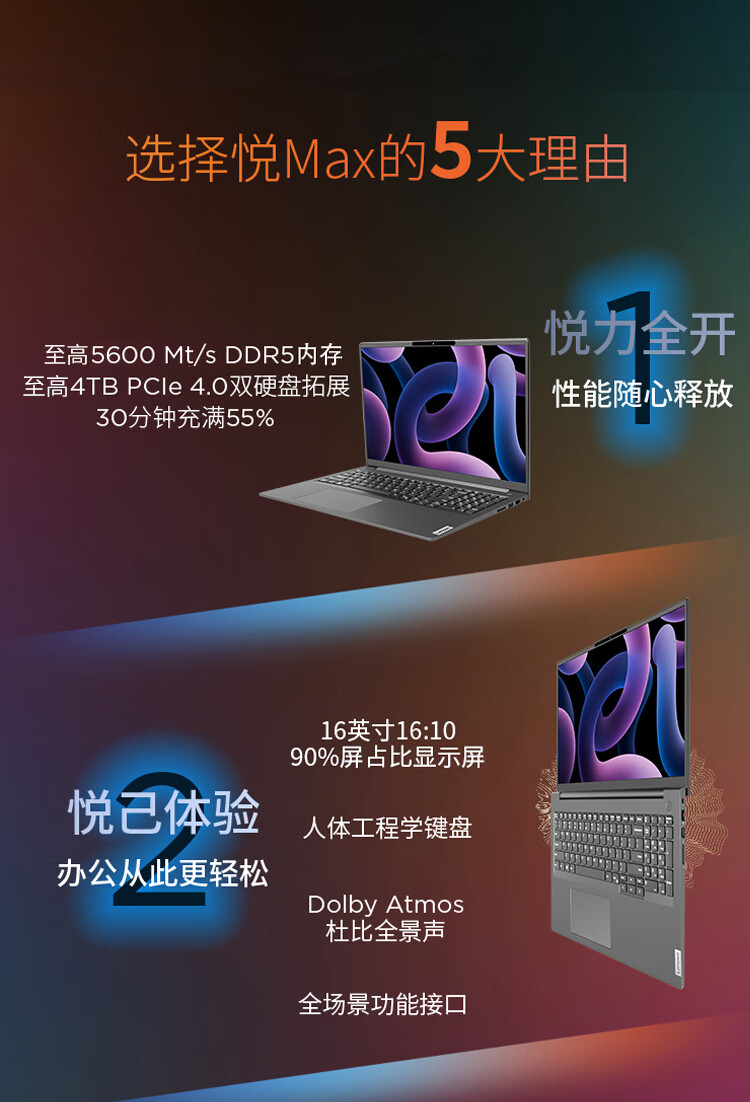 联想笔记本电脑昭阳·悦Max16 酷睿2代Core5-210h 16G 1T 16英寸高性能轻薄商用办公学生本