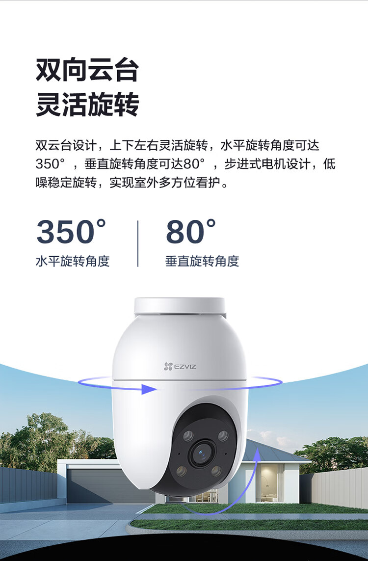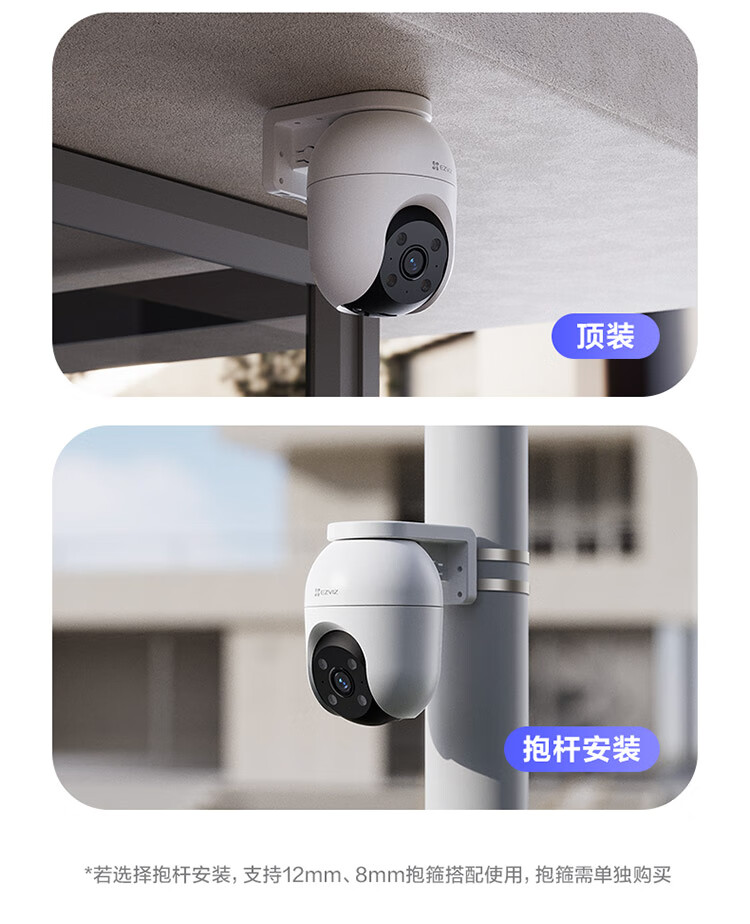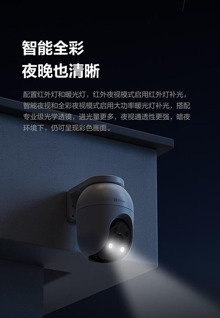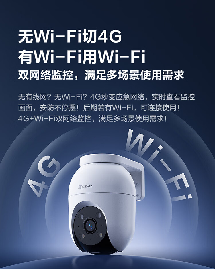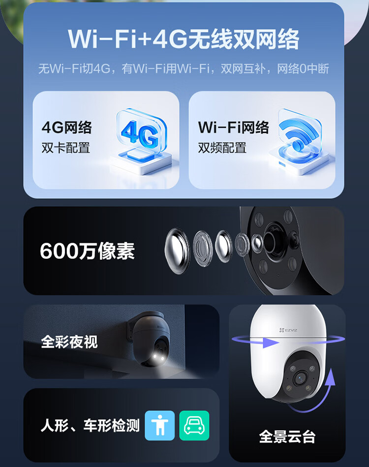 萤石C8C 600万摄像头 WiFi/4G双模版 室外双云台360° 防水防尘监控 手机远程 人形检测 全彩夜视