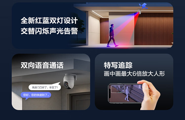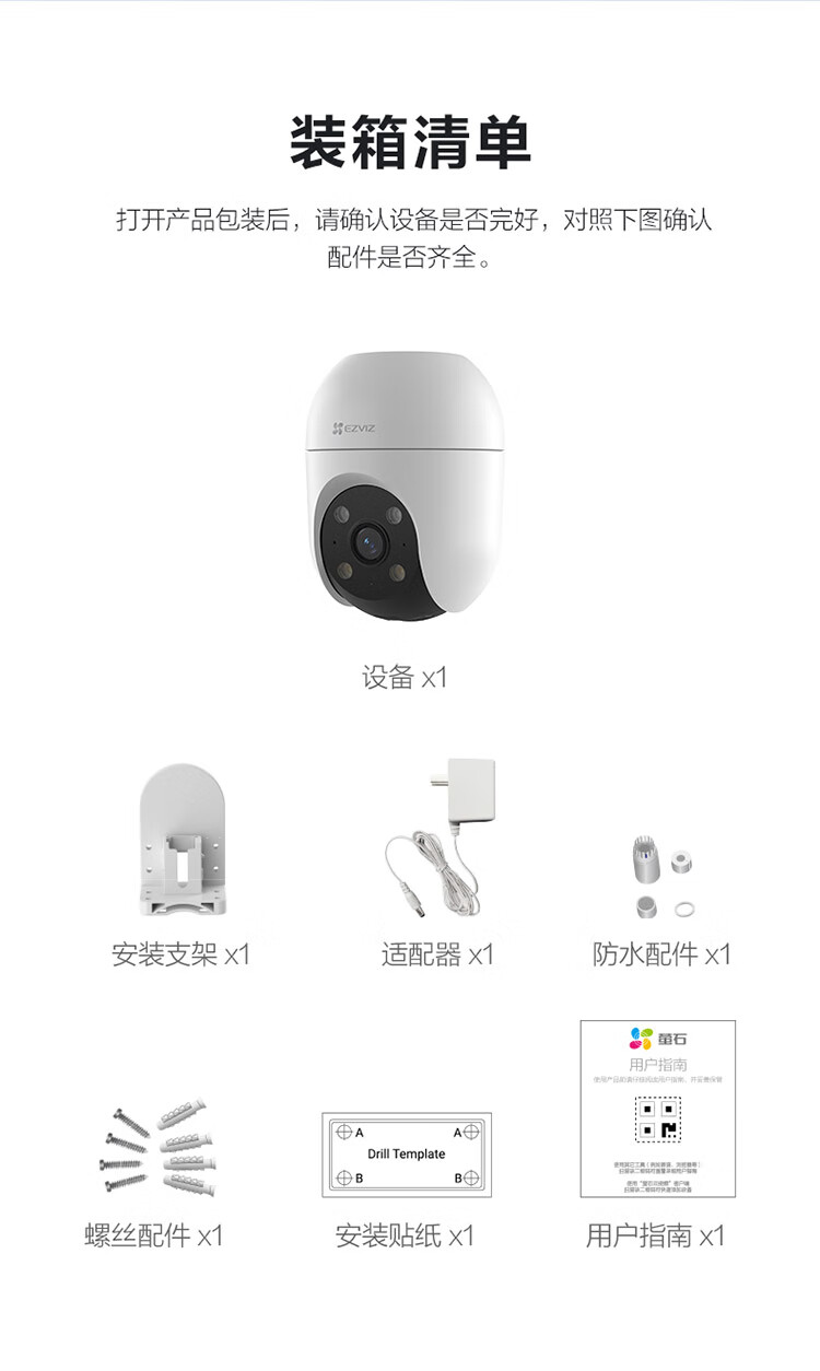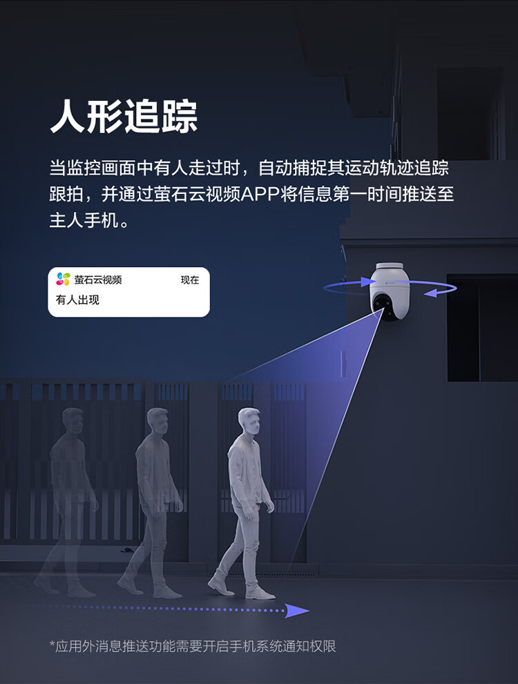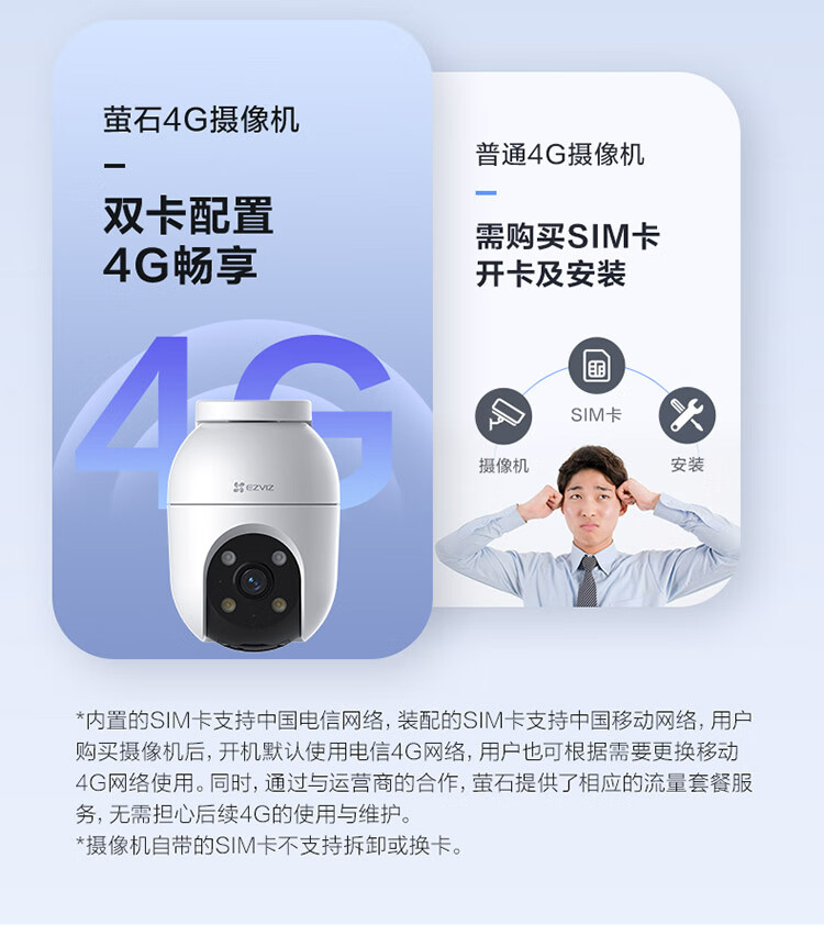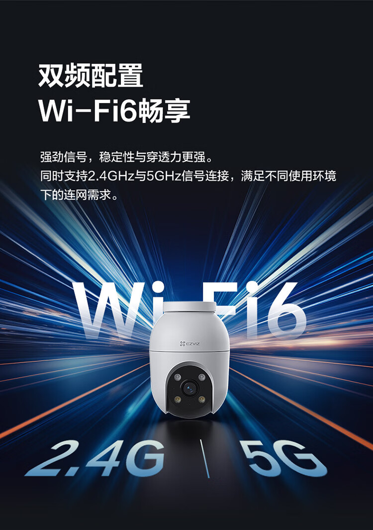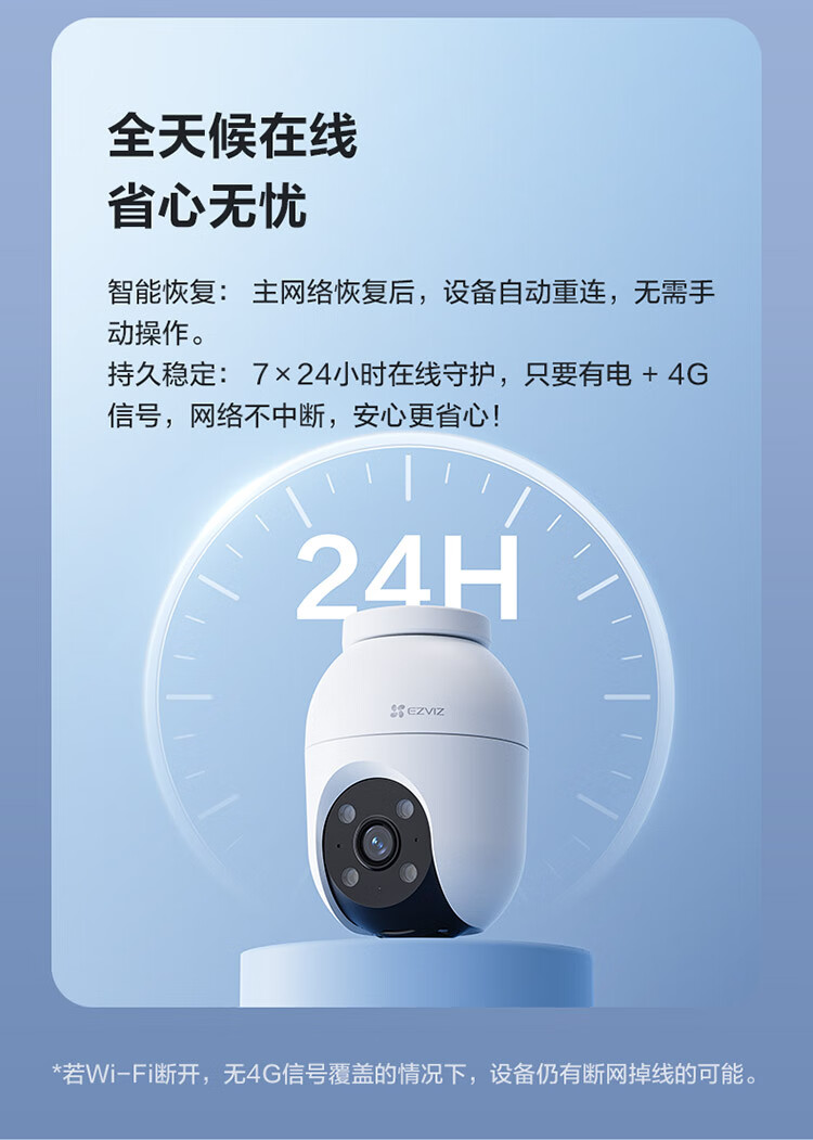 萤石C8C 600万摄像头 WiFi/4G双模版 室外双云台360° 防水防尘监控 手机远程 人形检测 全彩夜视