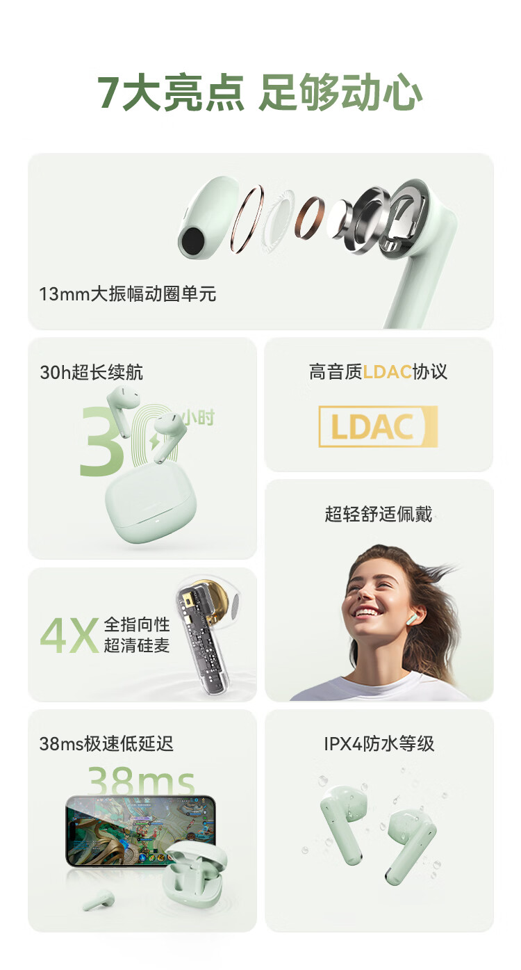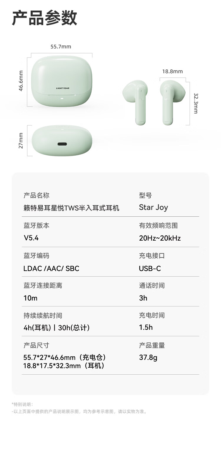籁特易耳星悦 蓝牙耳机半入耳AI通话降噪学生游戏运动音乐LDAC高音质真无线耳机蓝牙5.4长续航适用苹果华为 太空灰【LDAC旗舰音质】 超长续航