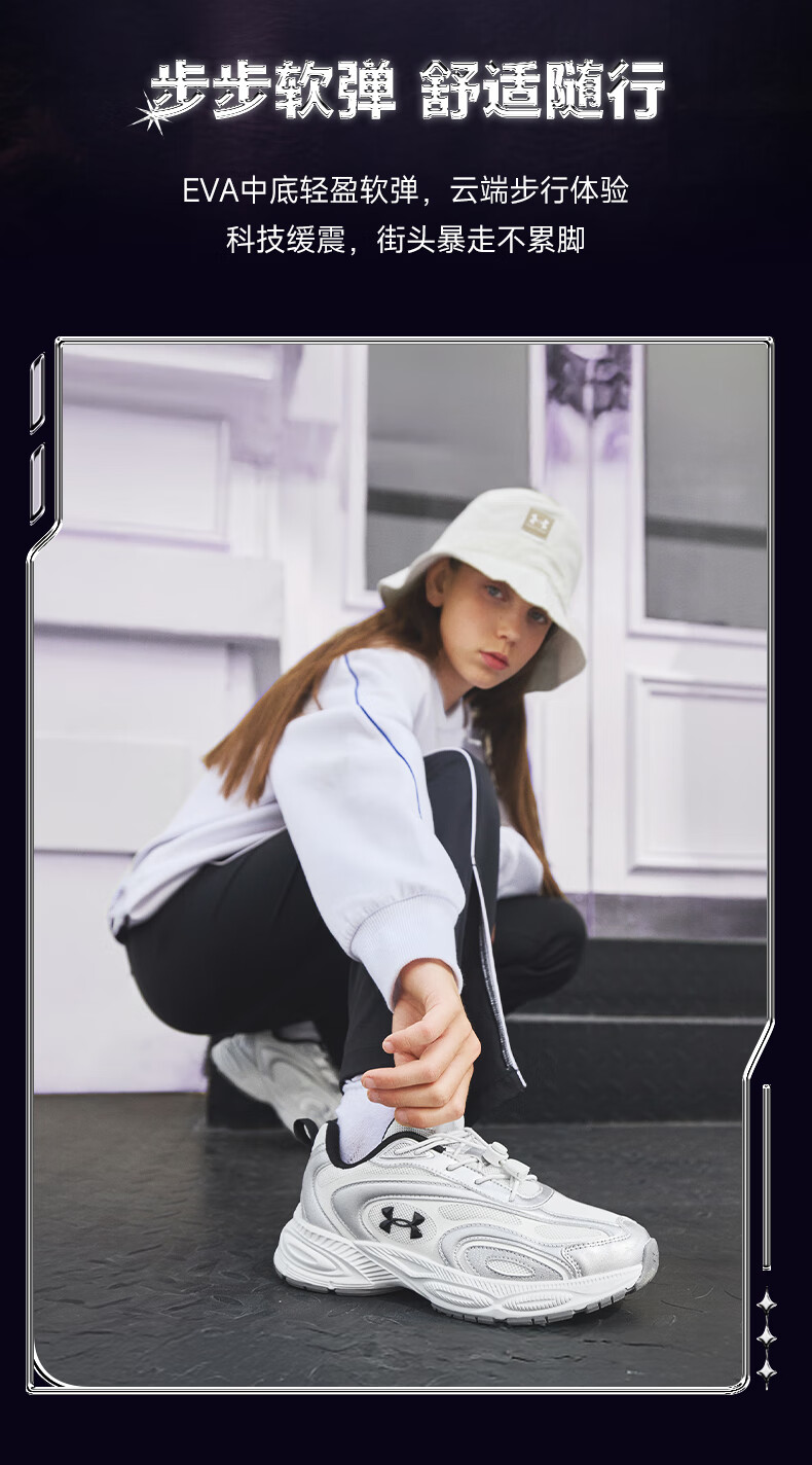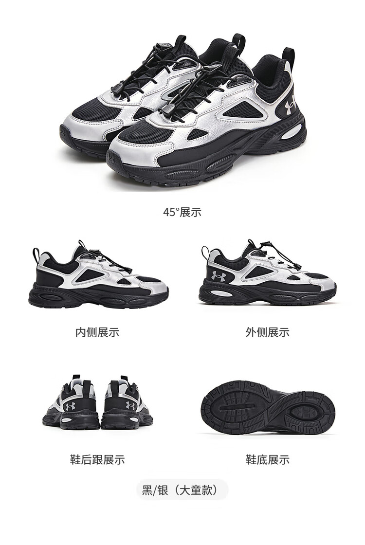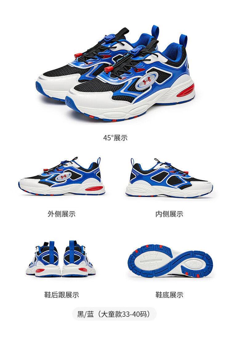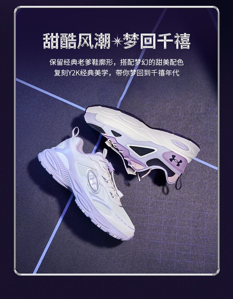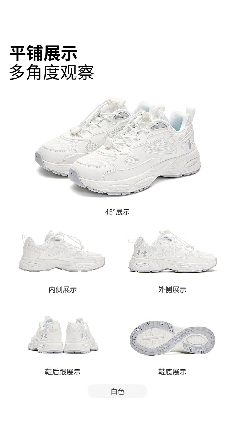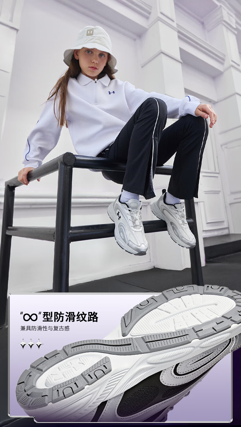 UNDER ARMOUR童鞋男女大童运动鞋束带老爹鞋厚底舒软缓震儿童小白鞋2441302