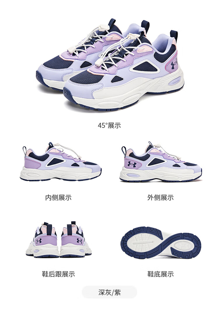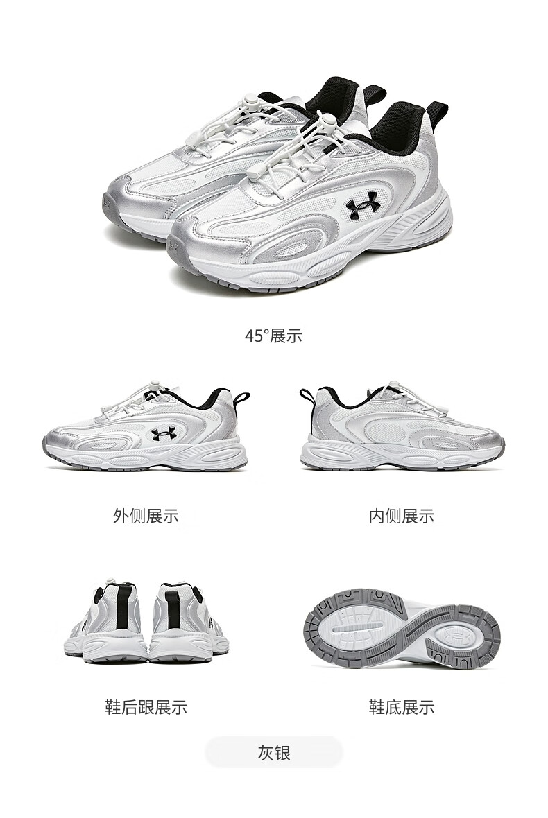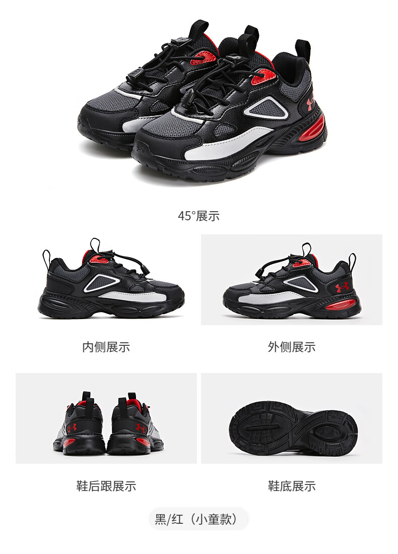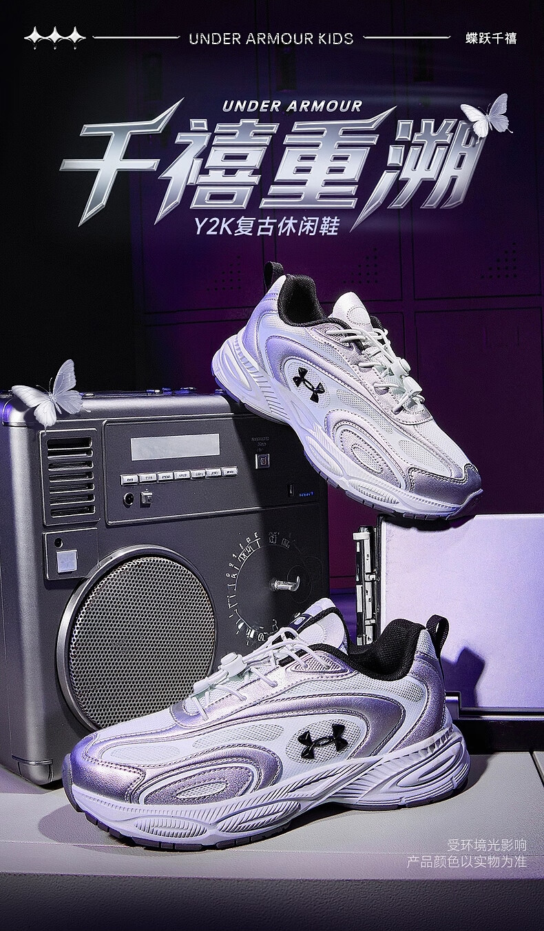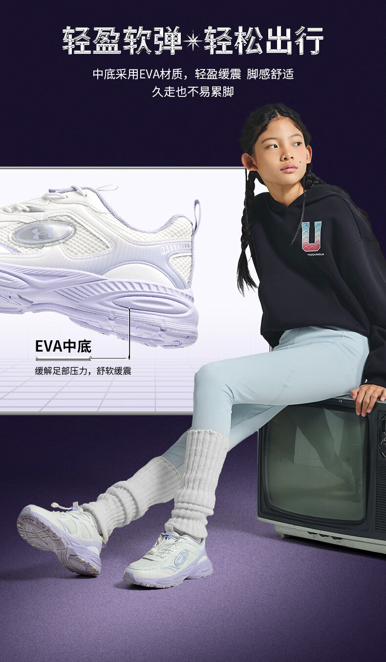 UNDER ARMOUR童鞋男女大童运动鞋束带老爹鞋厚底舒软缓震儿童小白鞋2441302