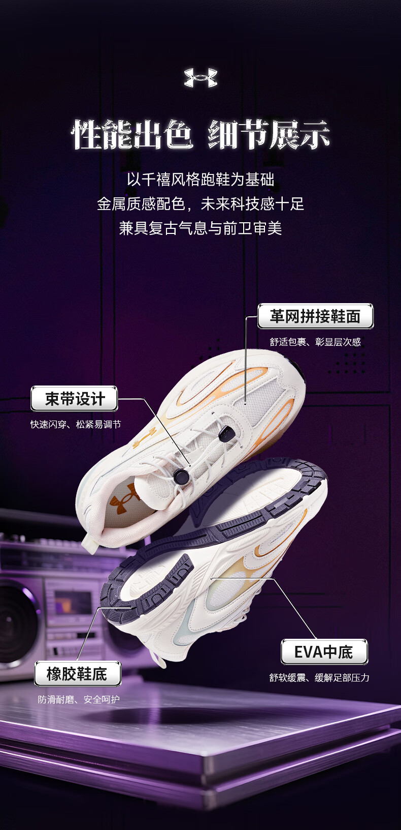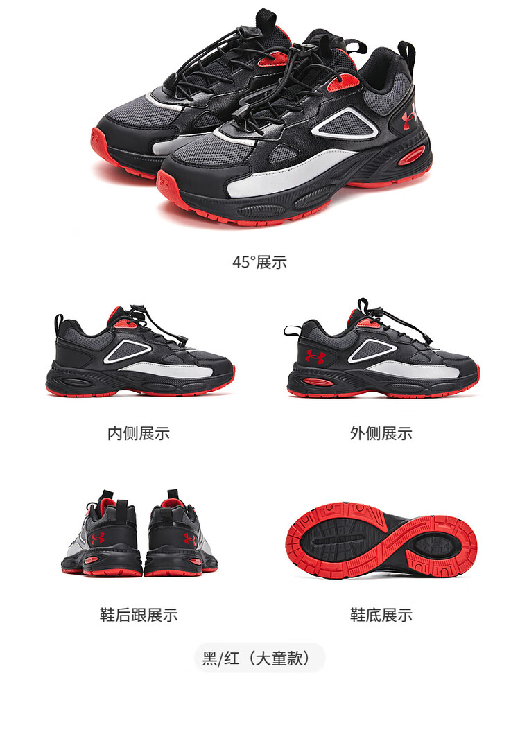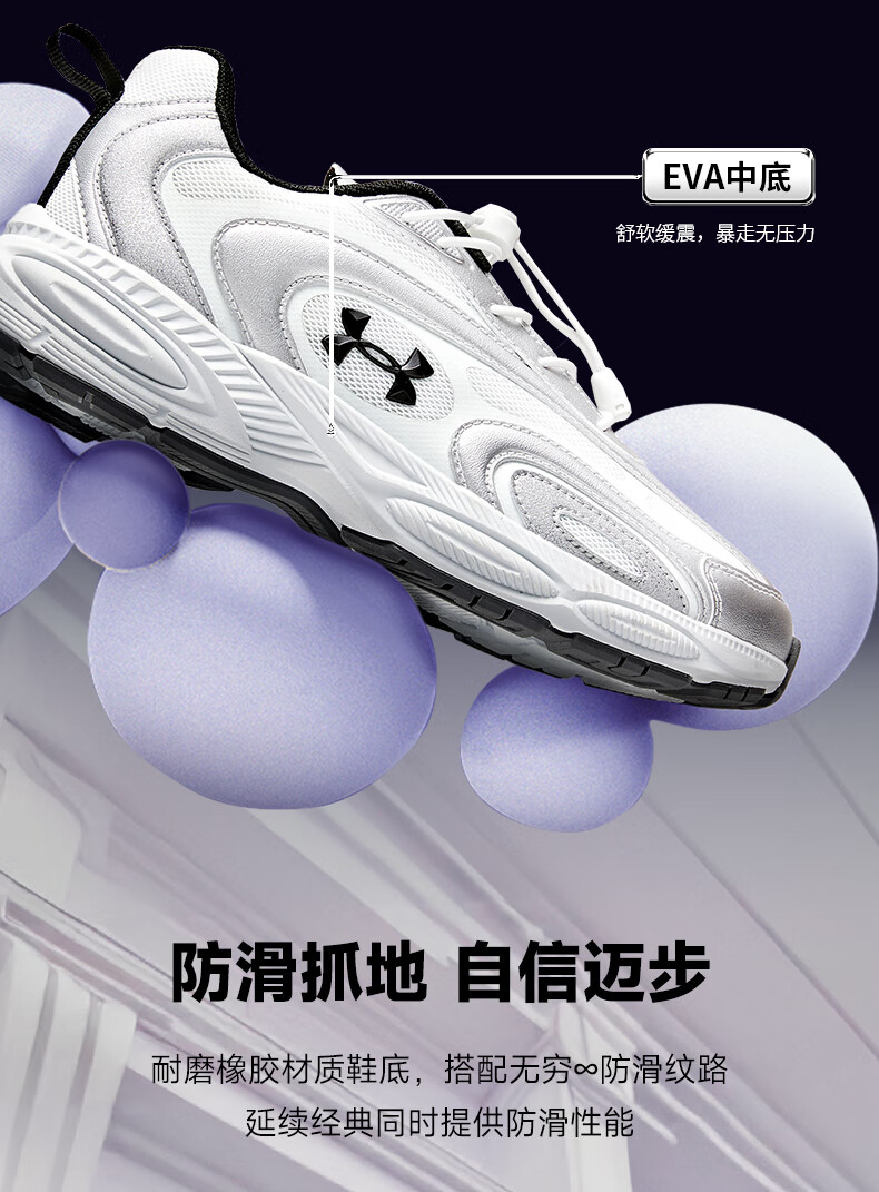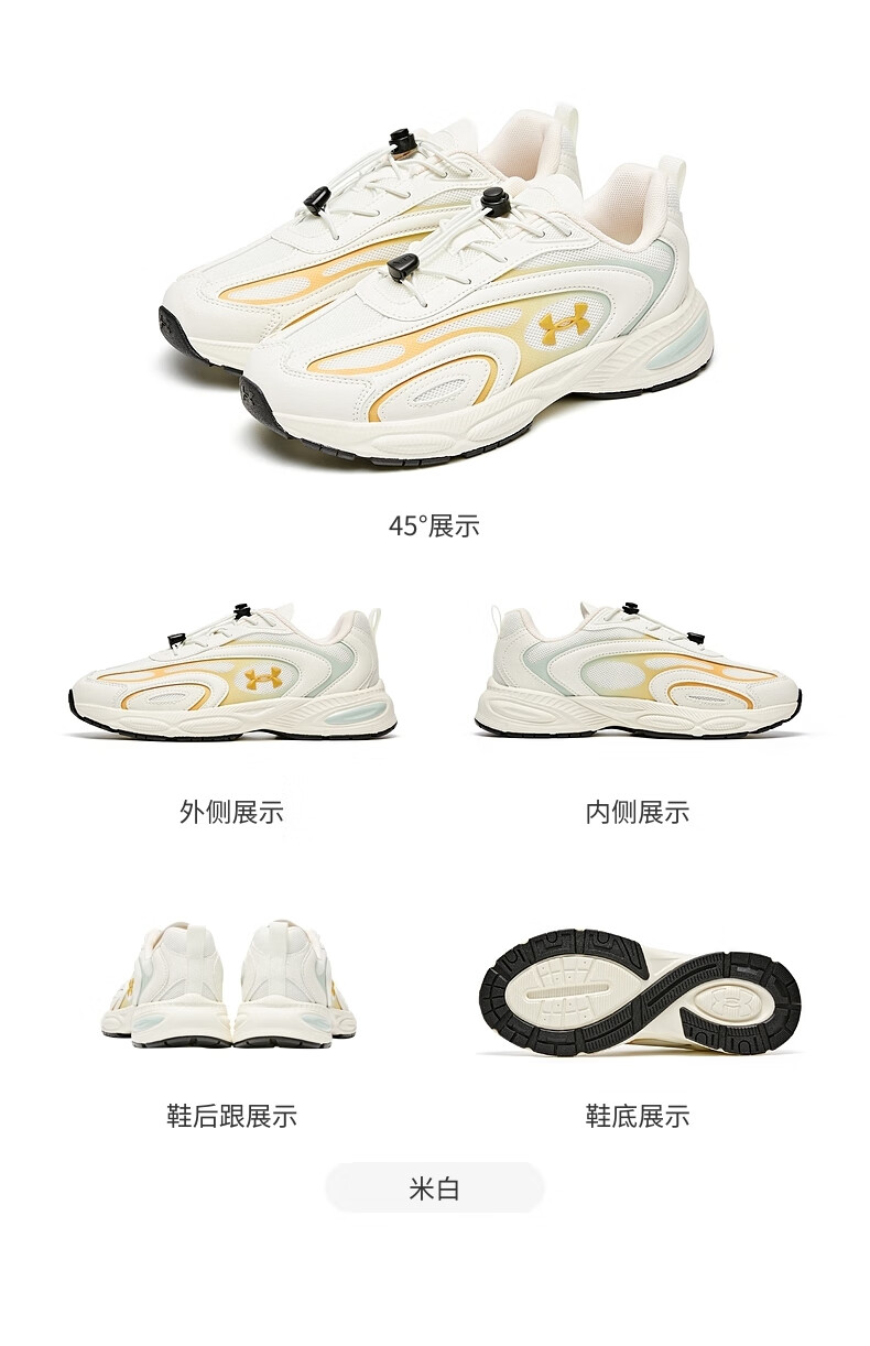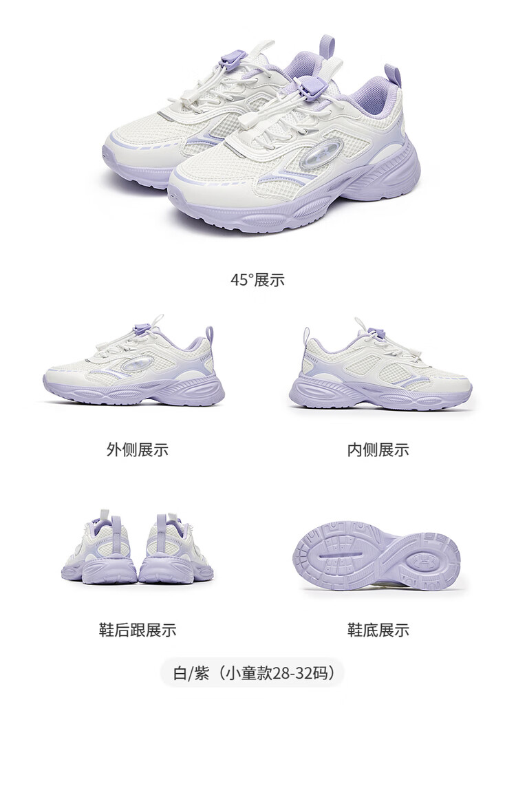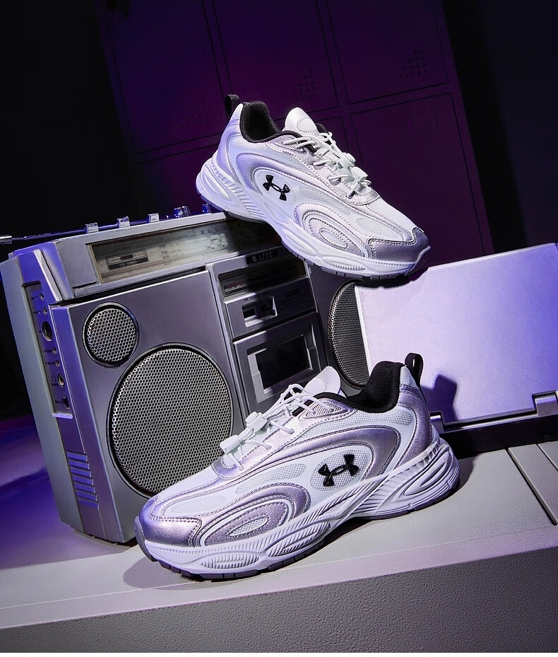 UNDER ARMOUR童鞋男女大童运动鞋束带老爹鞋厚底舒软缓震儿童小白鞋2441302