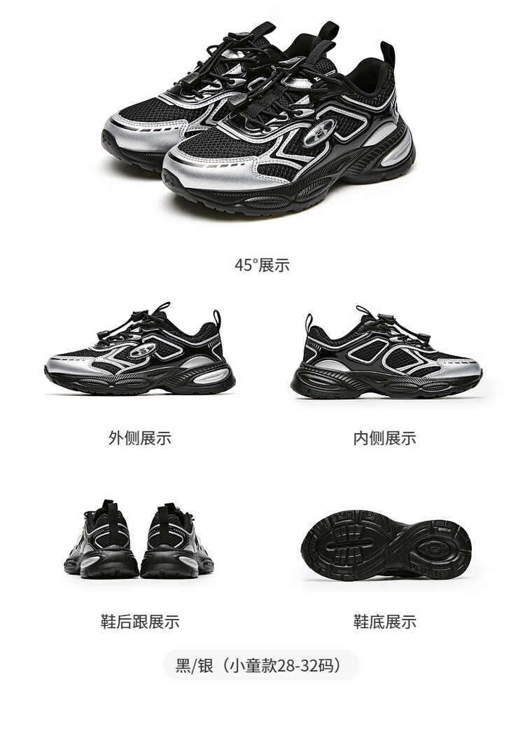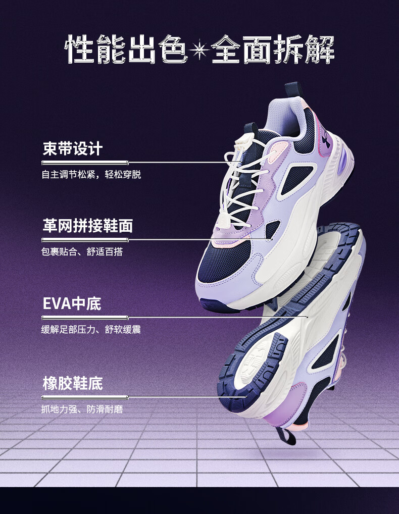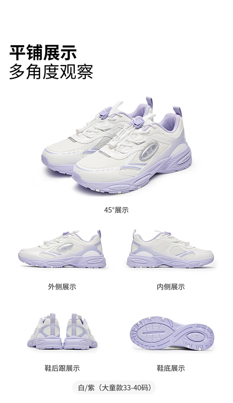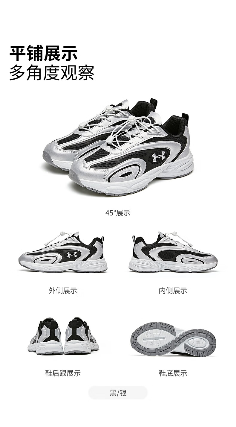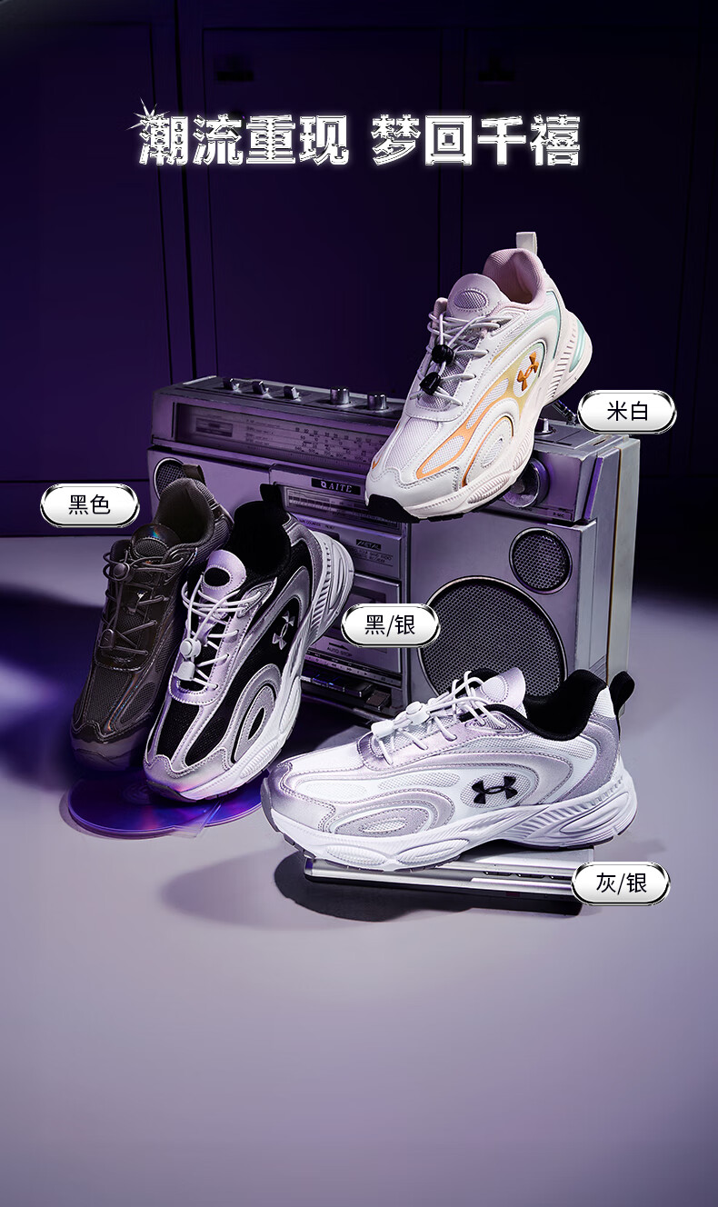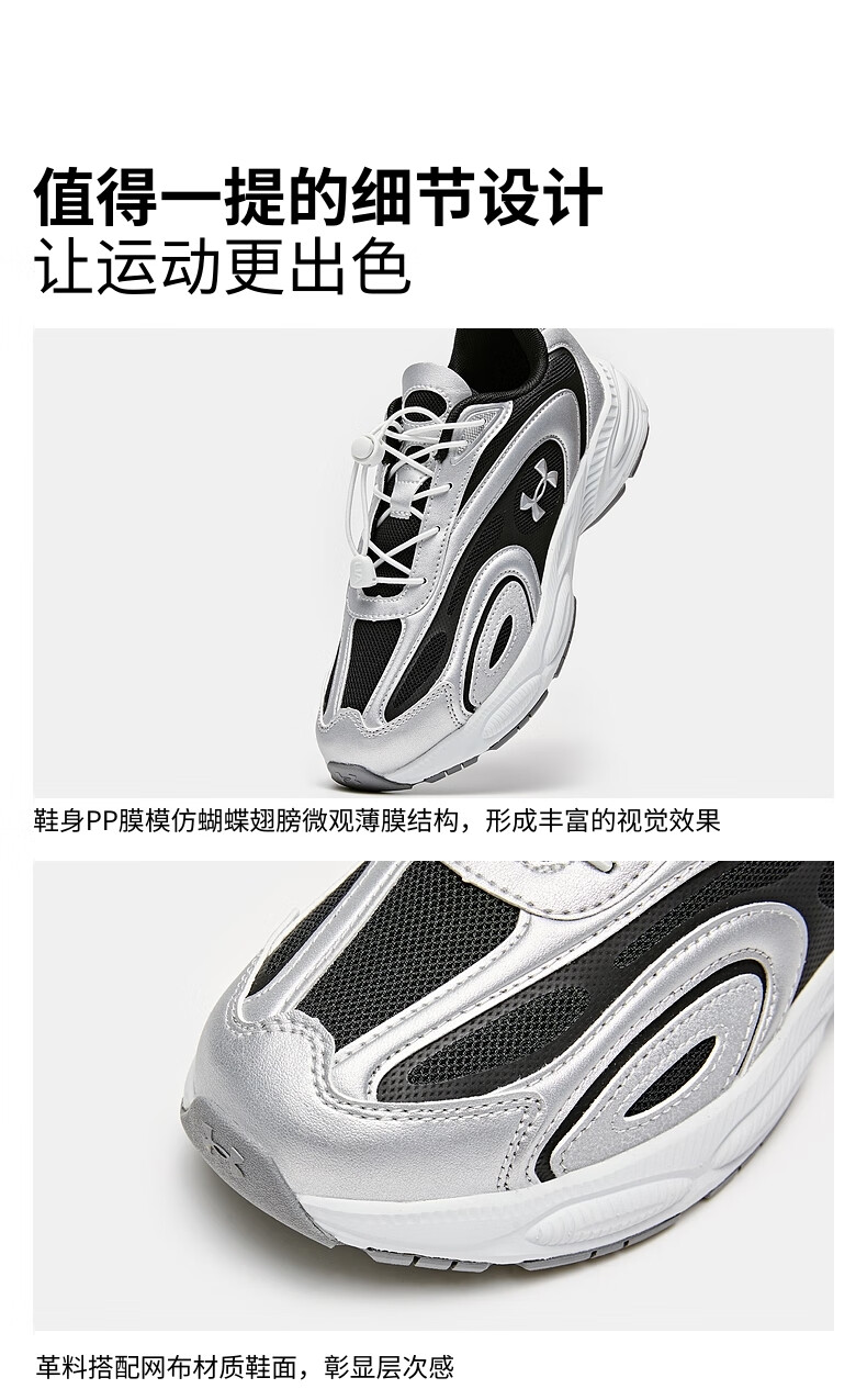 UNDER ARMOUR童鞋男女大童运动鞋束带老爹鞋厚底舒软缓震儿童小白鞋2441302