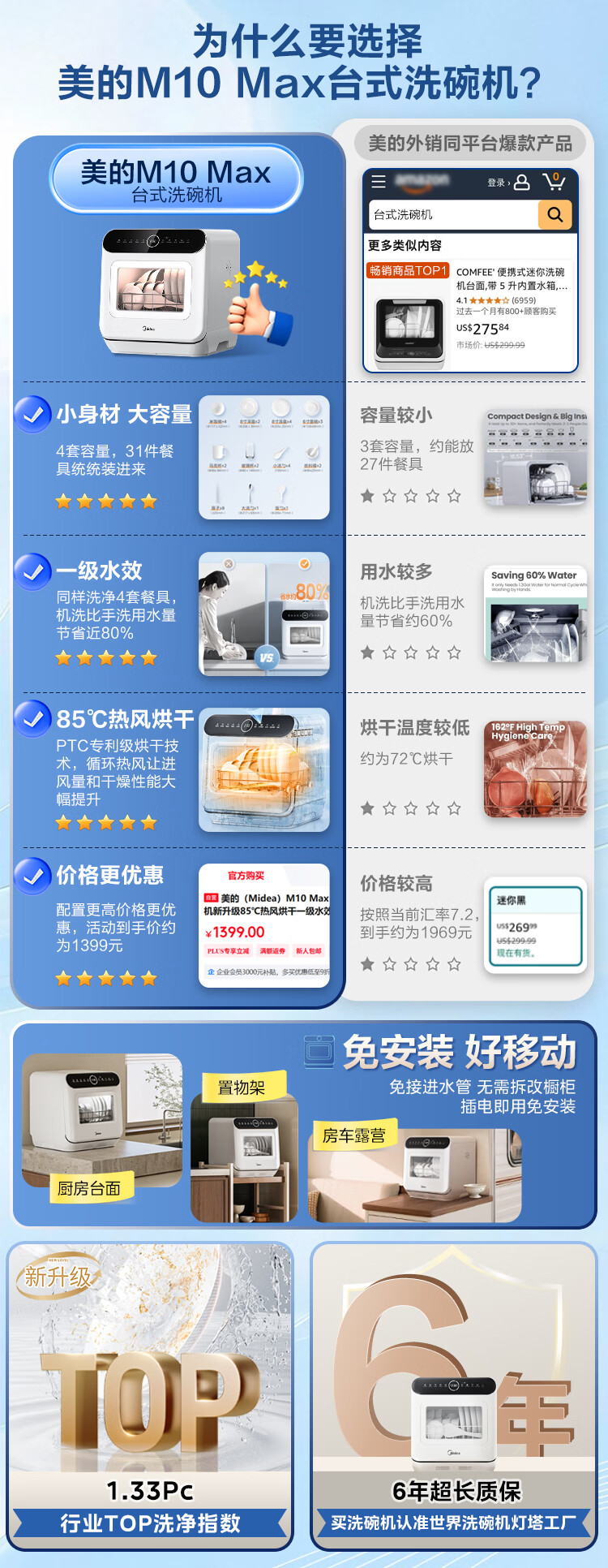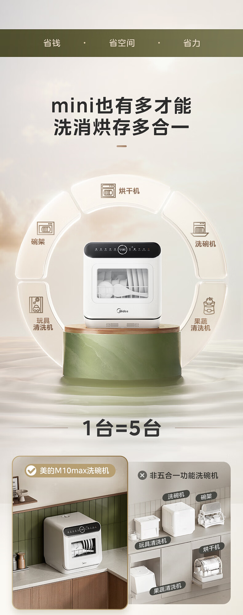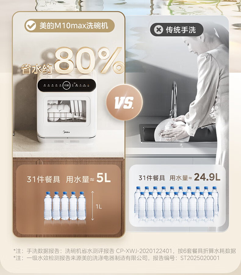 美的(Midea)【可爱多台式M10 Max】洗碗机新升级85℃热风烘干一级水效高温除菌双层碗篮家用小尺寸免安装