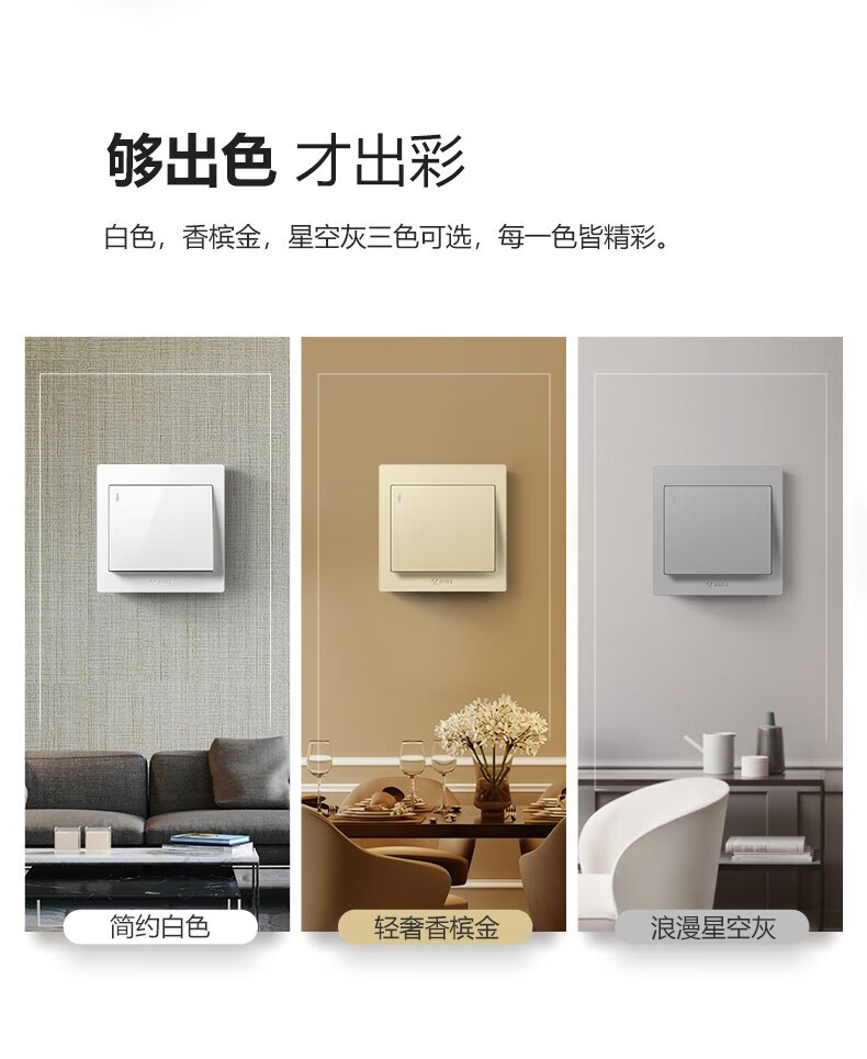 ABB开关插座面板 德典系列皓月灰 磨砂哑光奶油风 无边框 86型电源 正五孔插座