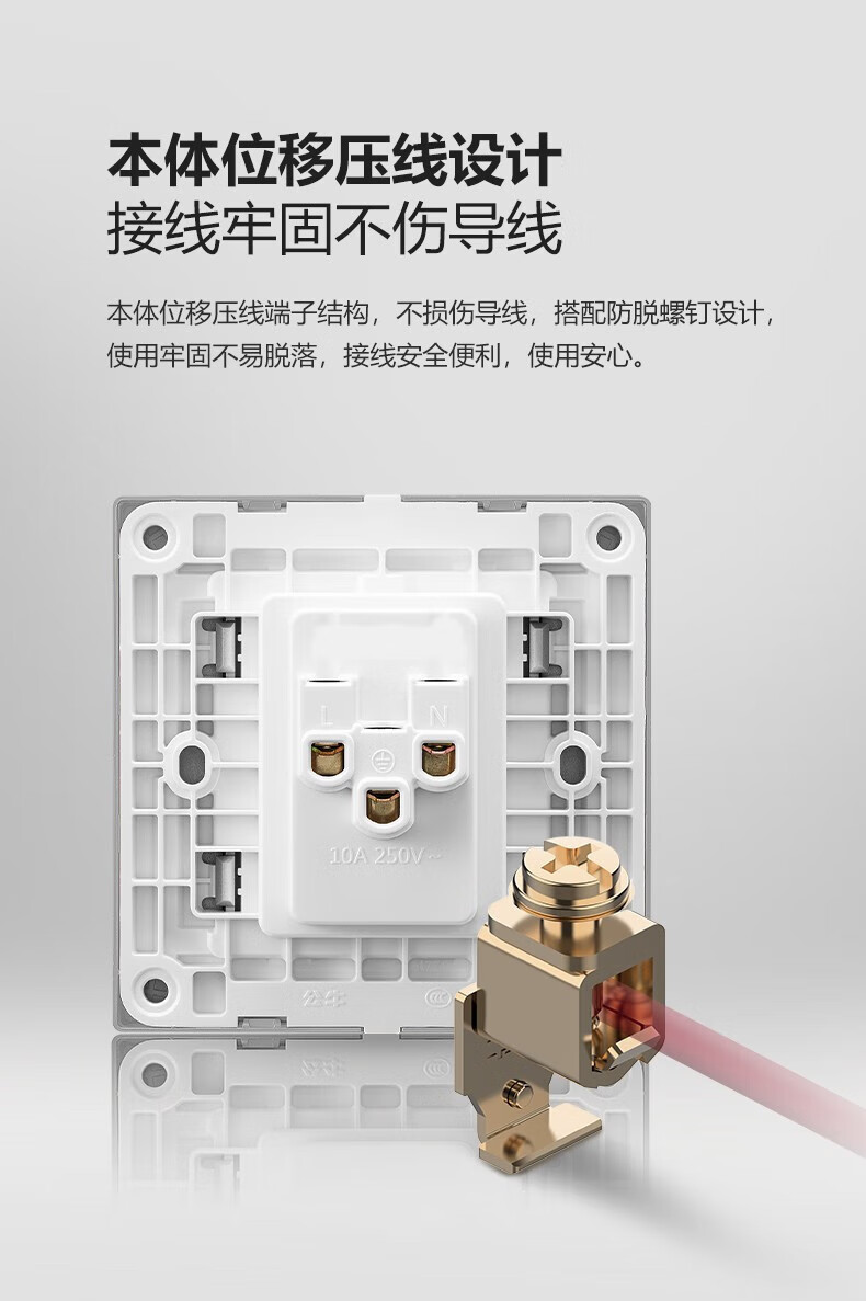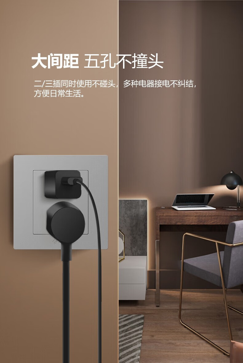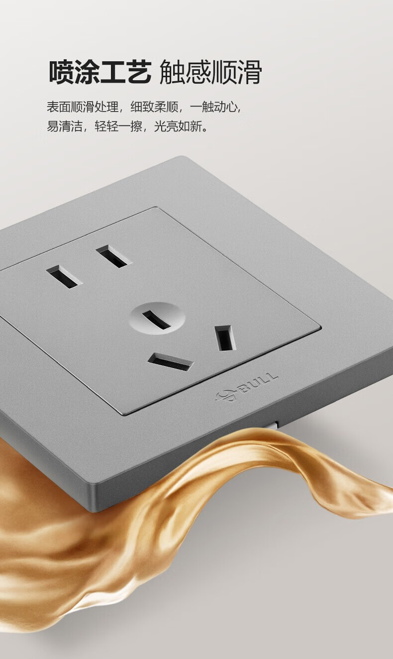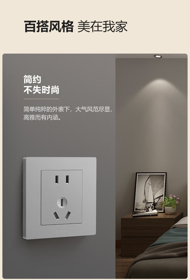 ABB开关插座面板 德典系列皓月灰 磨砂哑光奶油风 无边框 86型电源 斜五孔插座