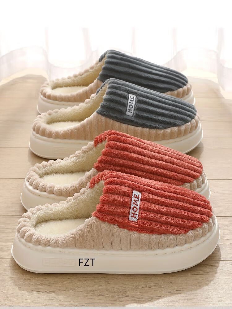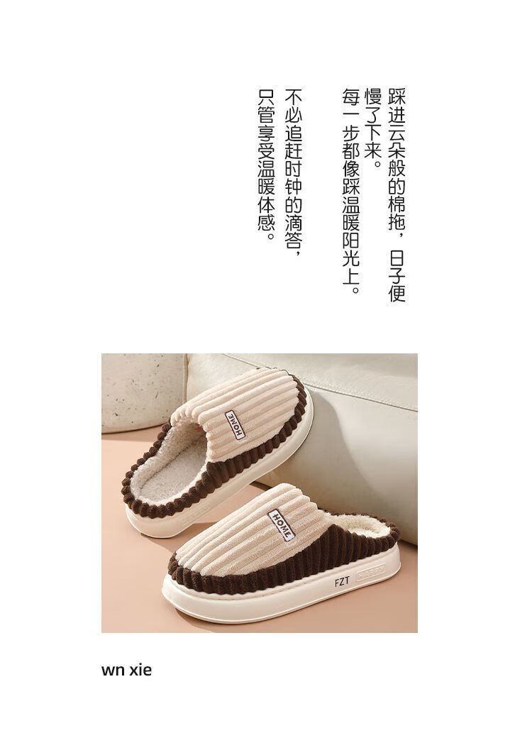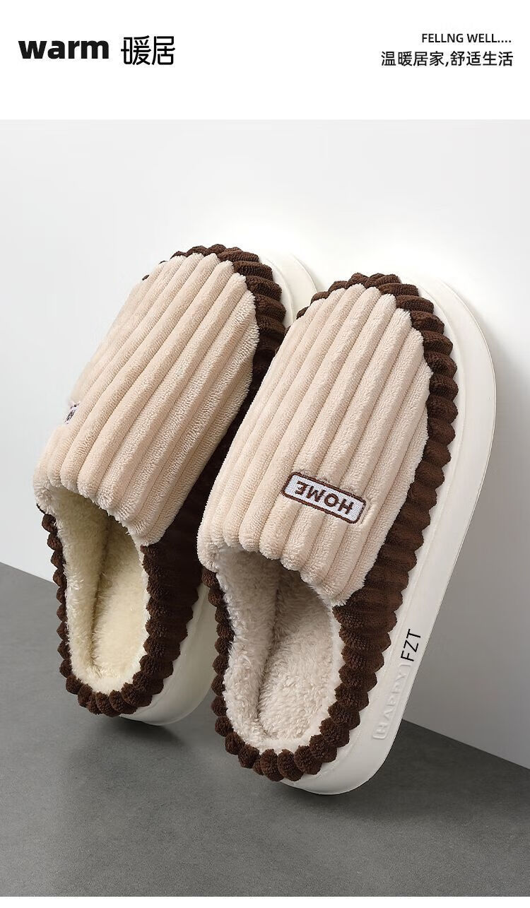 FZT包跟棉拖鞋女2025秋冬新款防滑防臭室内家居简约毛绒绒棉鞋男外穿 粉色 38-39 适合37-38【内长235mm】