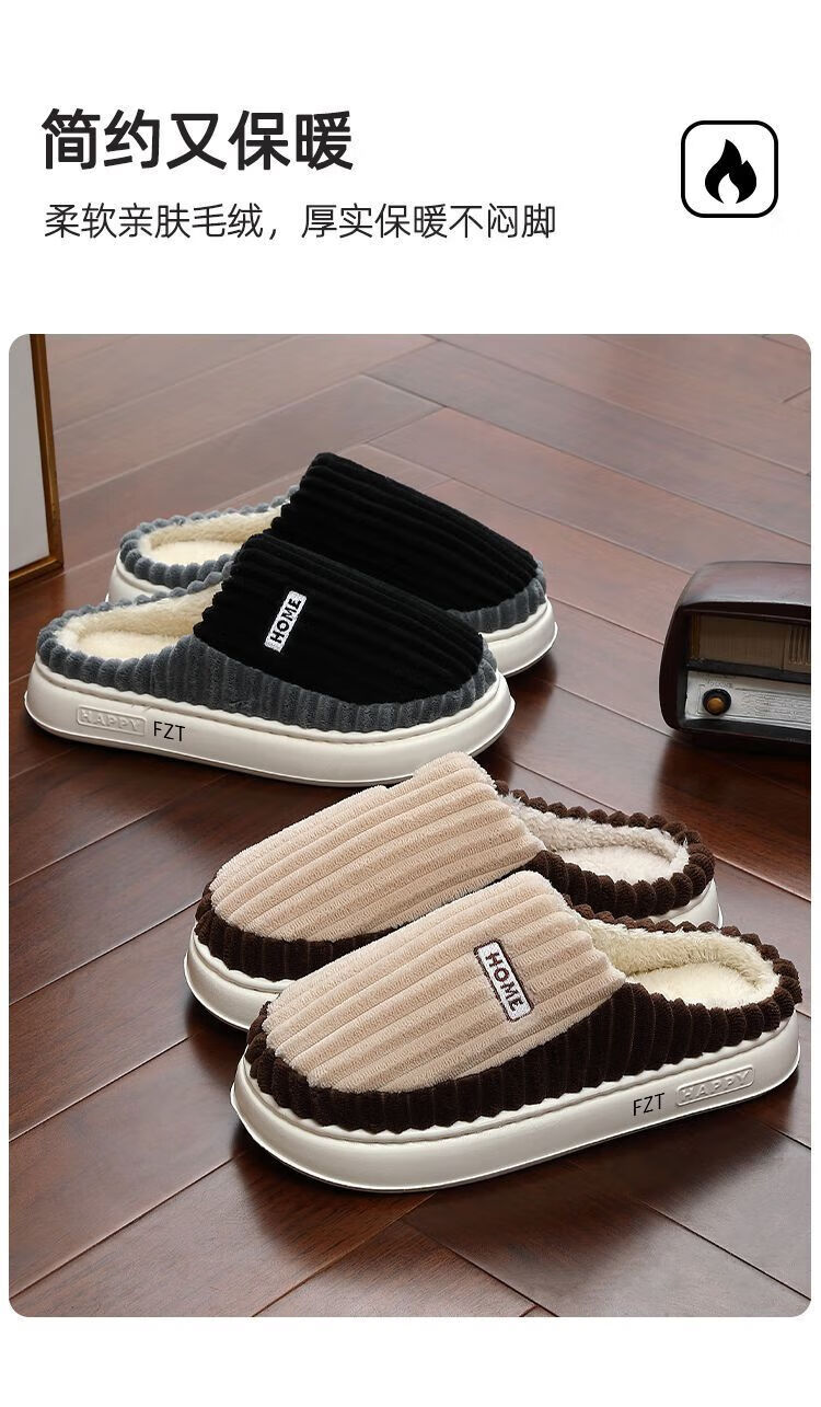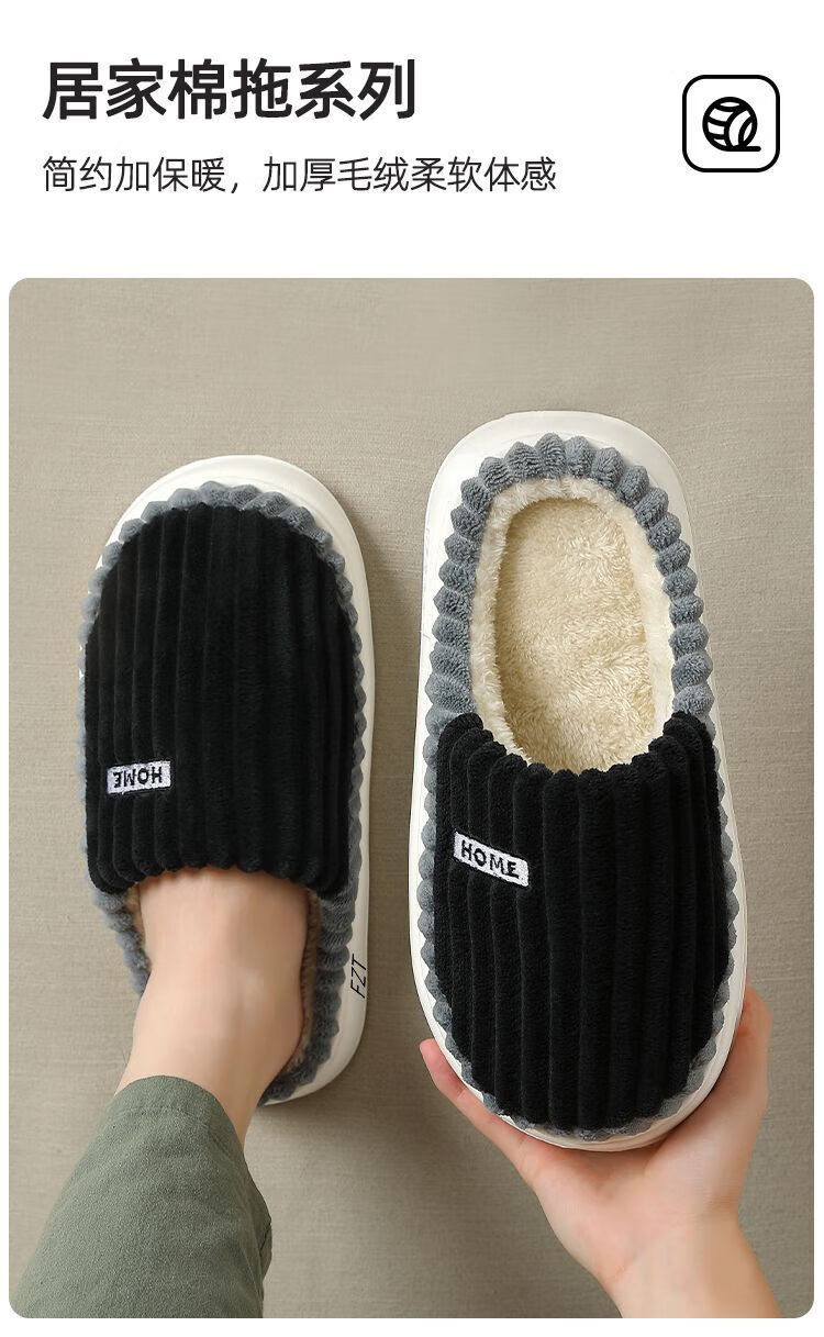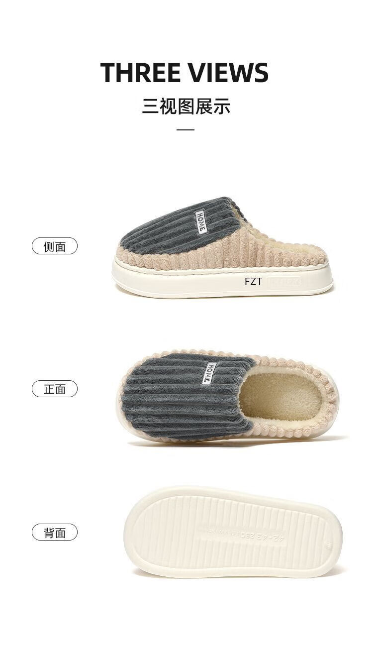 FZT棉拖鞋女士款秋冬季2025新款室内居家防滑加厚保暖毛绒棉拖鞋男士 灰色 36-37 标准码
