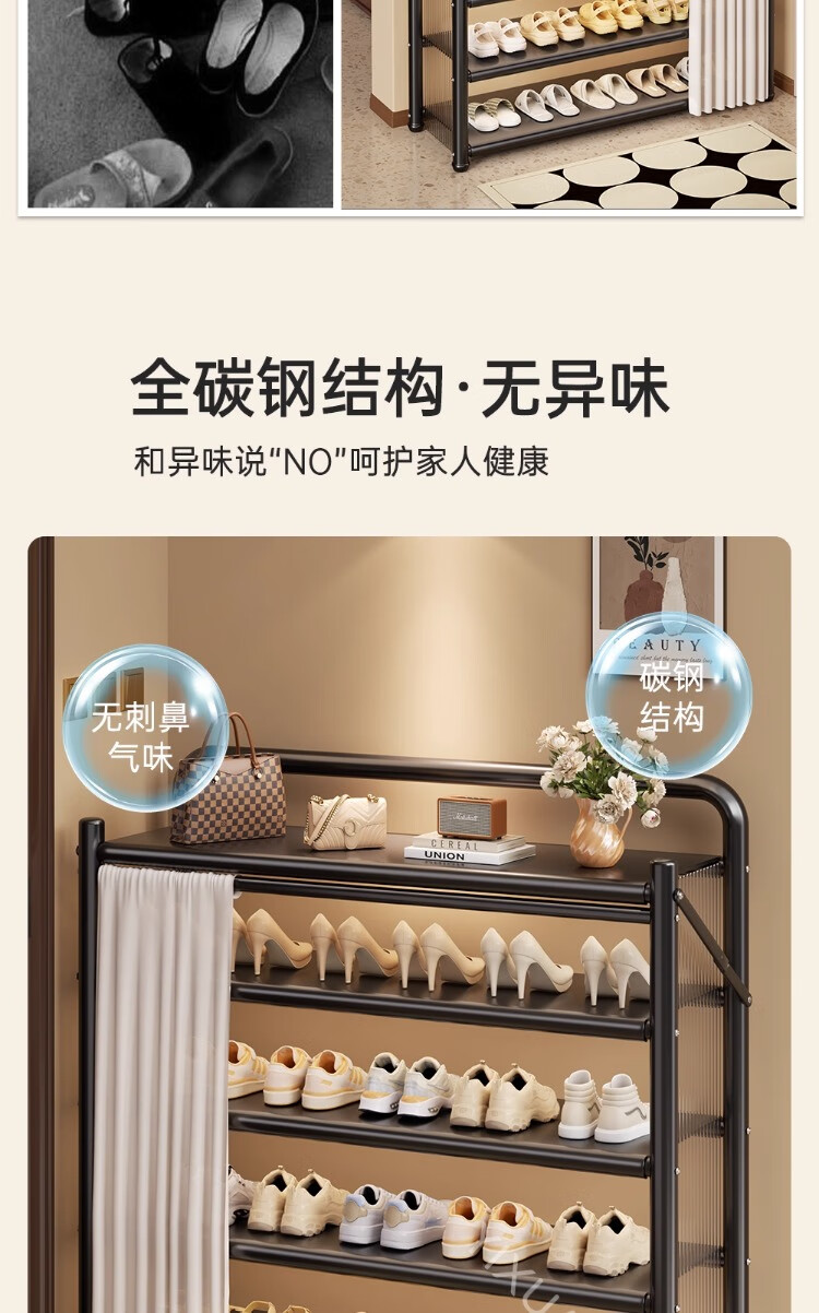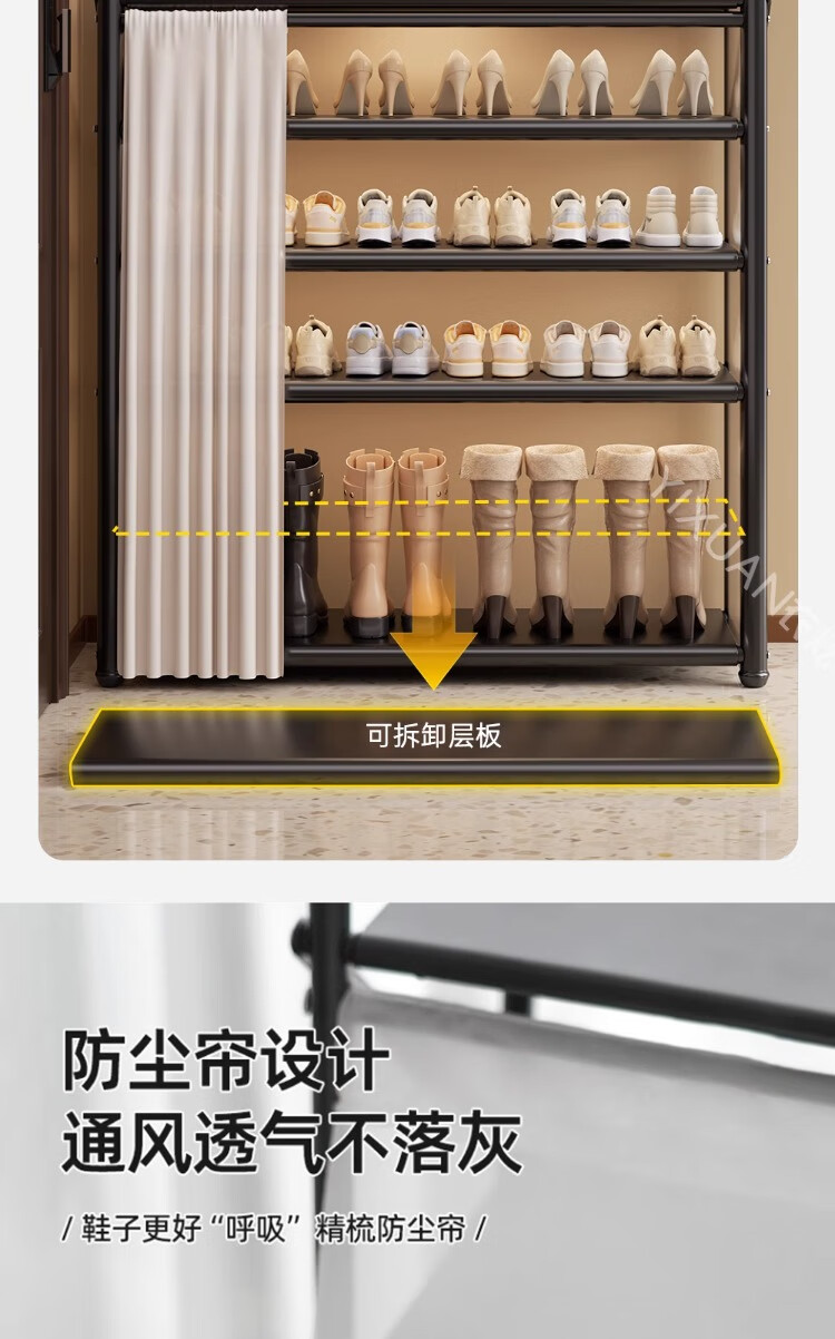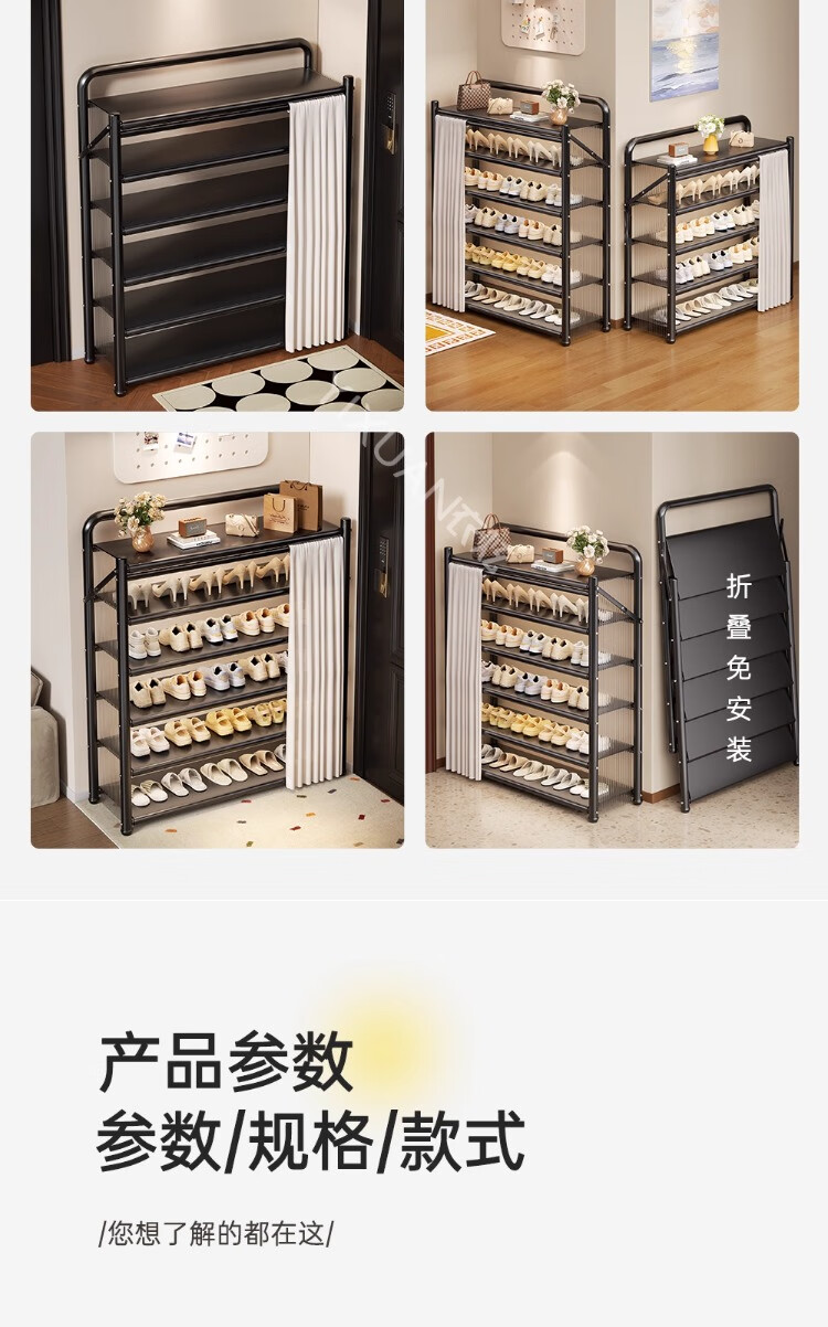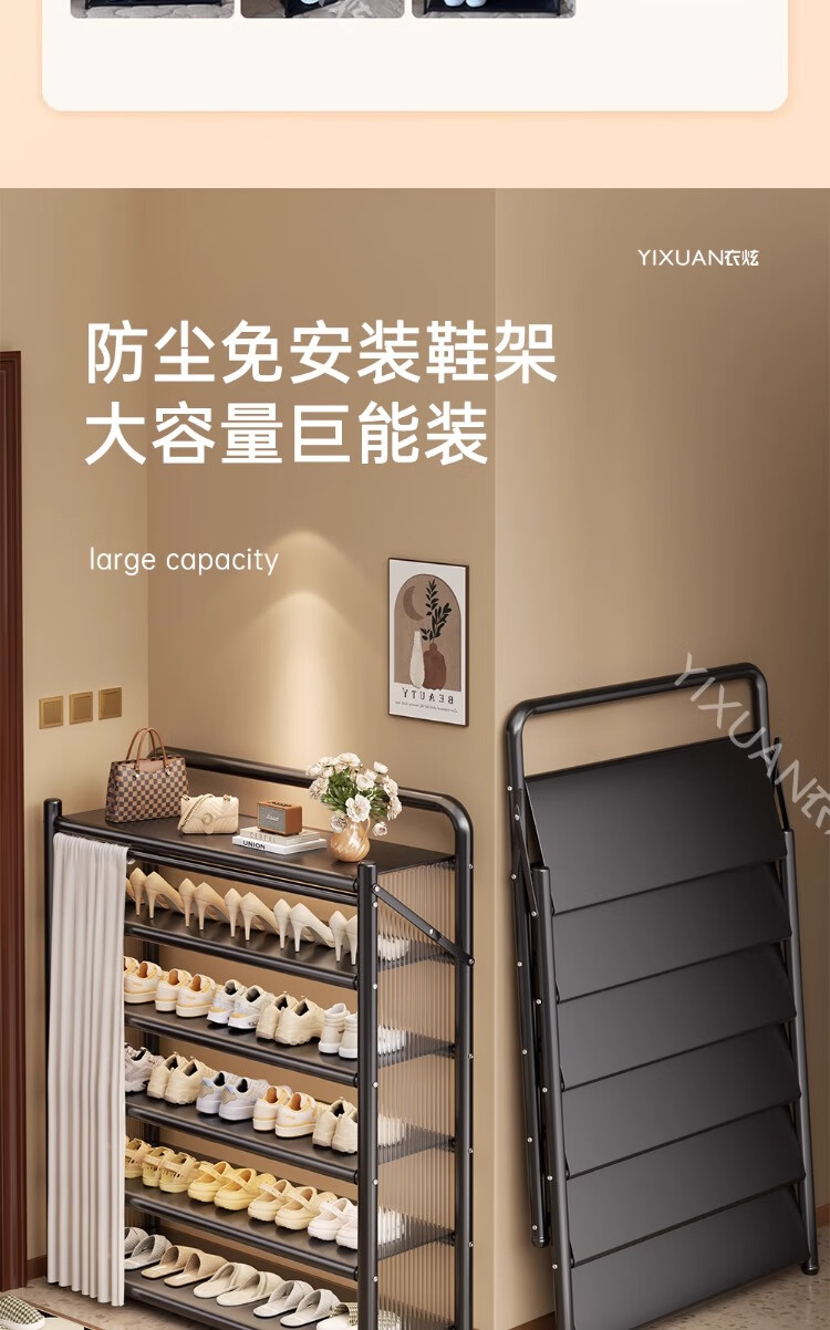 衣炫鞋架多层家用门口室内入户门小窄免安装折叠简易鞋柜宿舍出租房用 月光白|6层90cm【全面防尘】