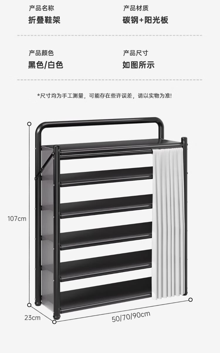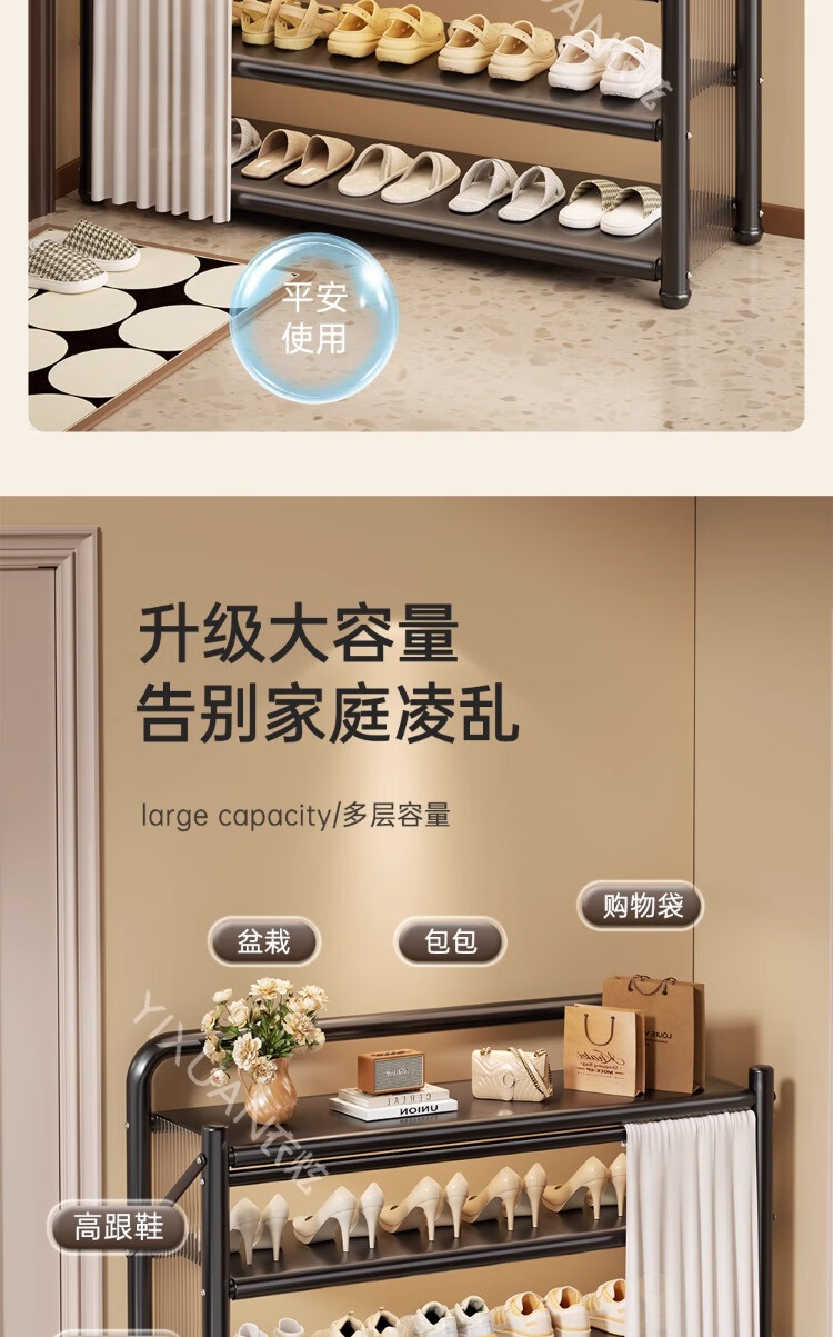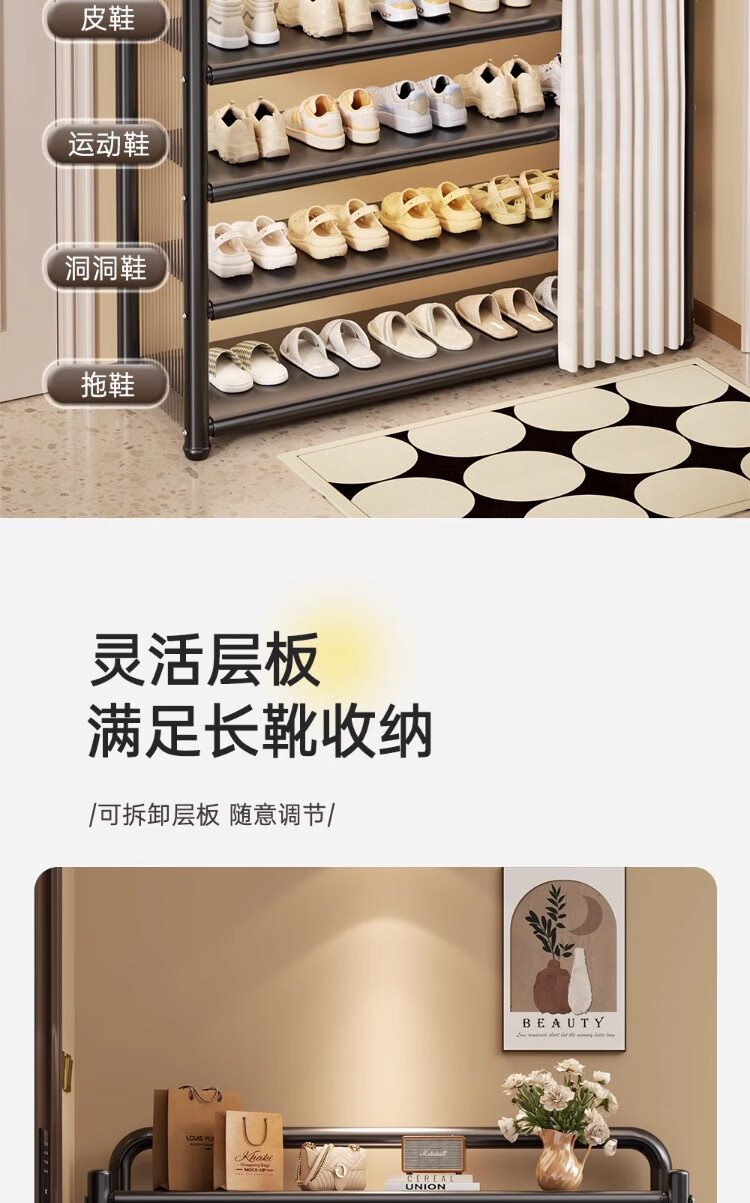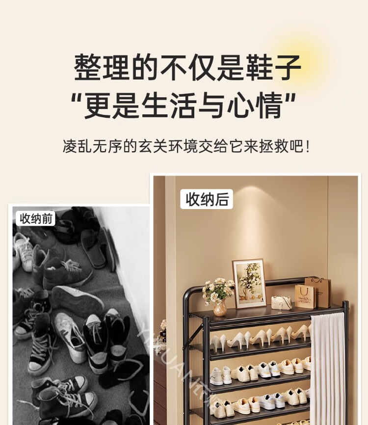 衣炫鞋架多层家用门口室内入户门小窄免安装折叠简易鞋柜宿舍出租房用 月光白|6层90cm【全面防尘】