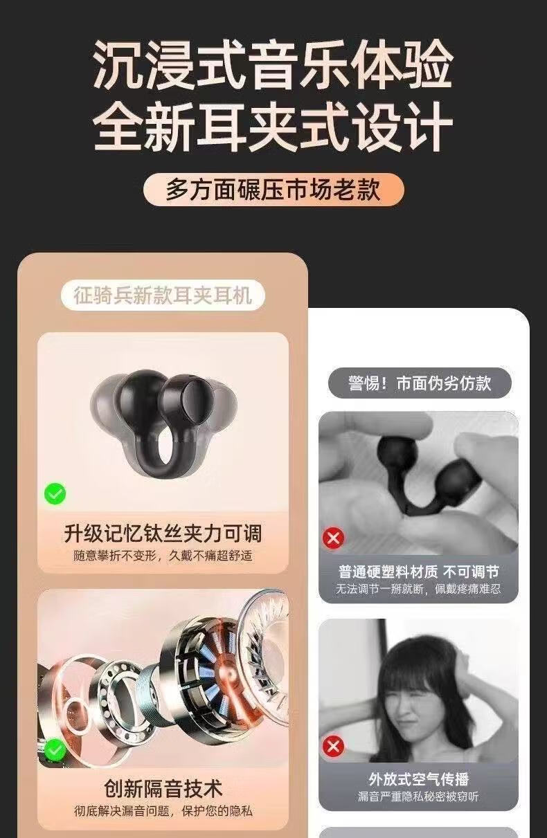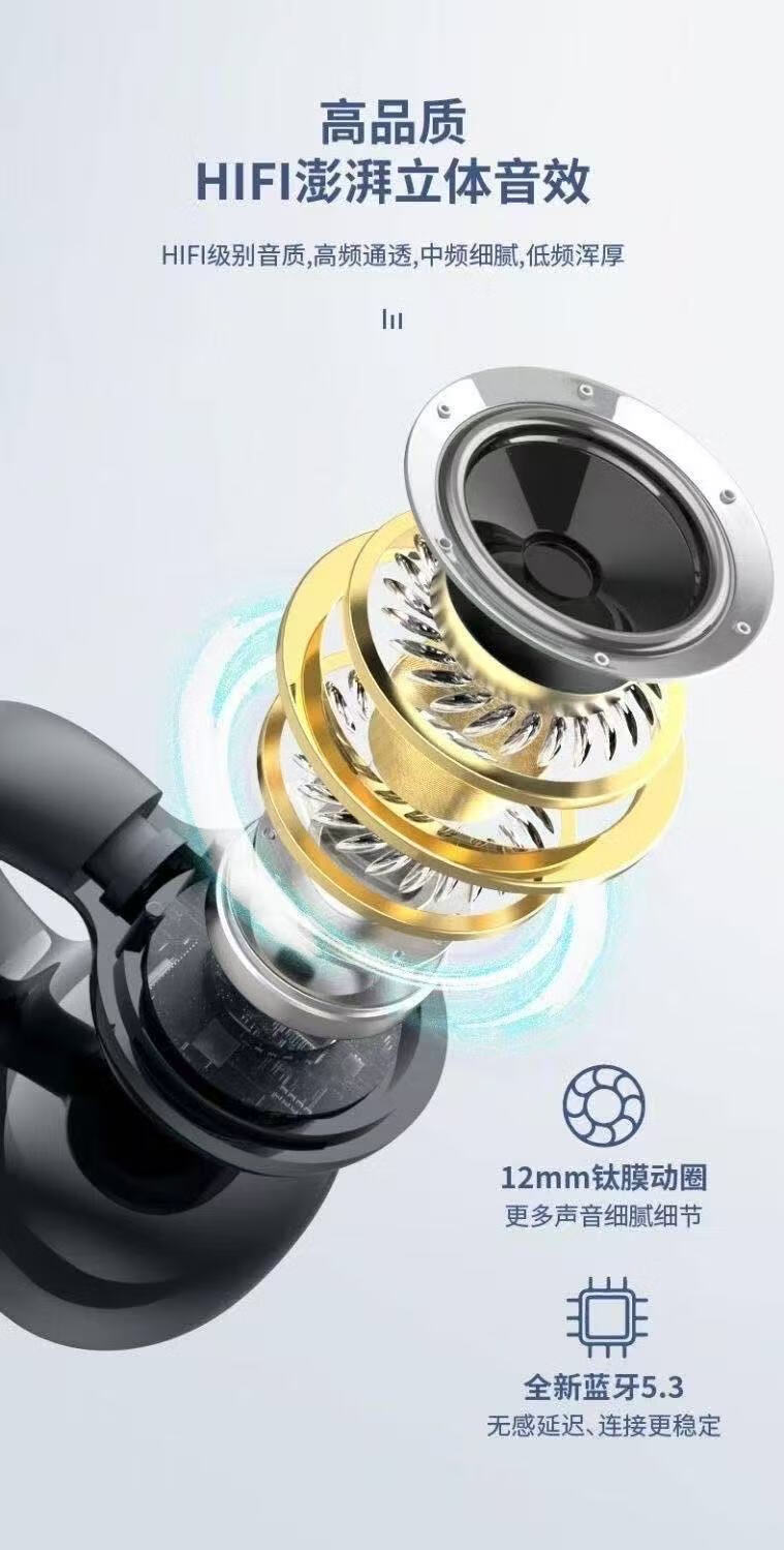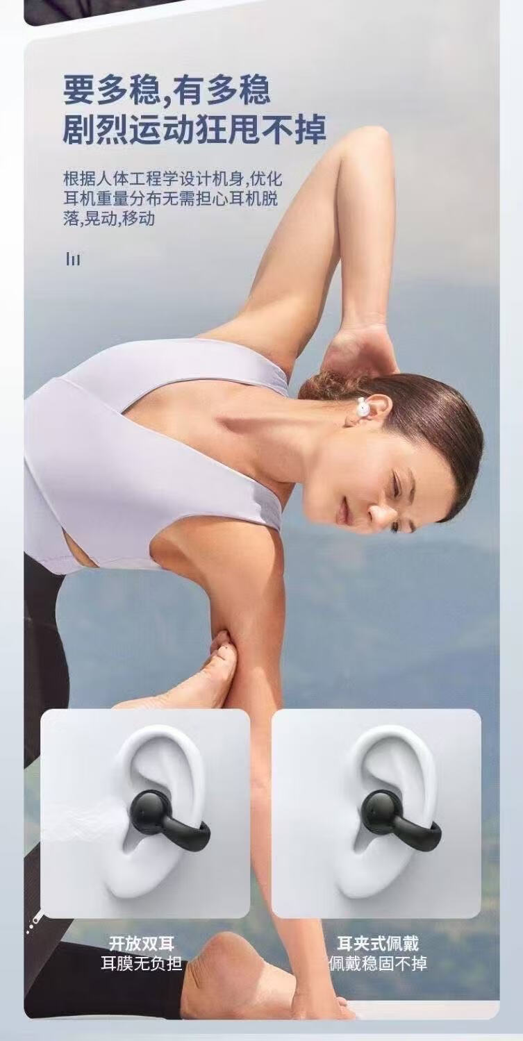 鑫羽音【甄选直发】蓝牙耳机夹耳式骨传导2025新款无线运动不入耳跑步挂 白色【HiFi环绕音+持久续航】 【手机通用】蓝牙5.4-单耳