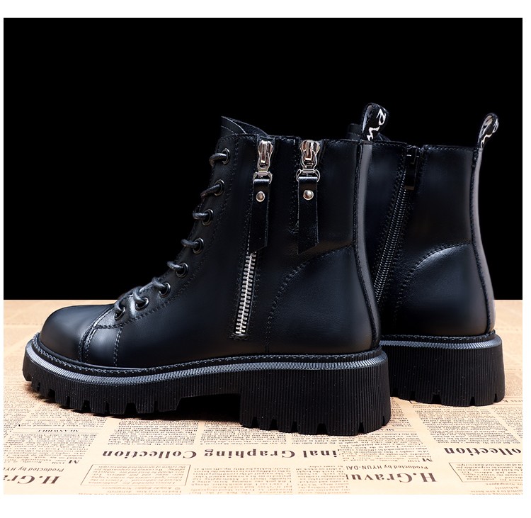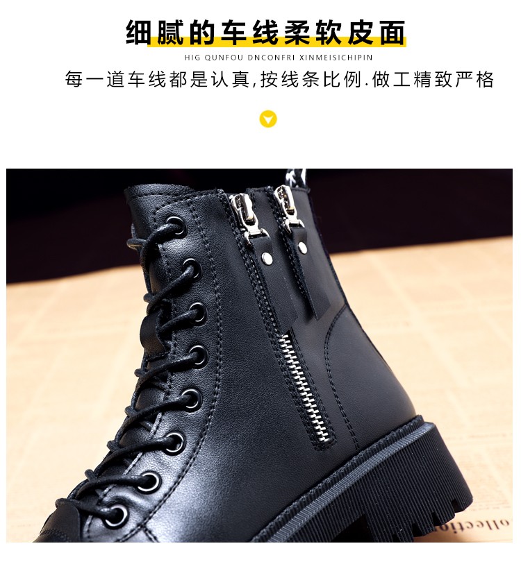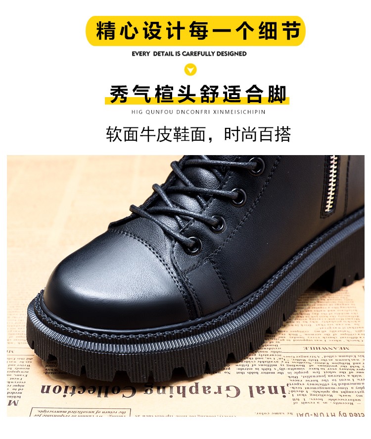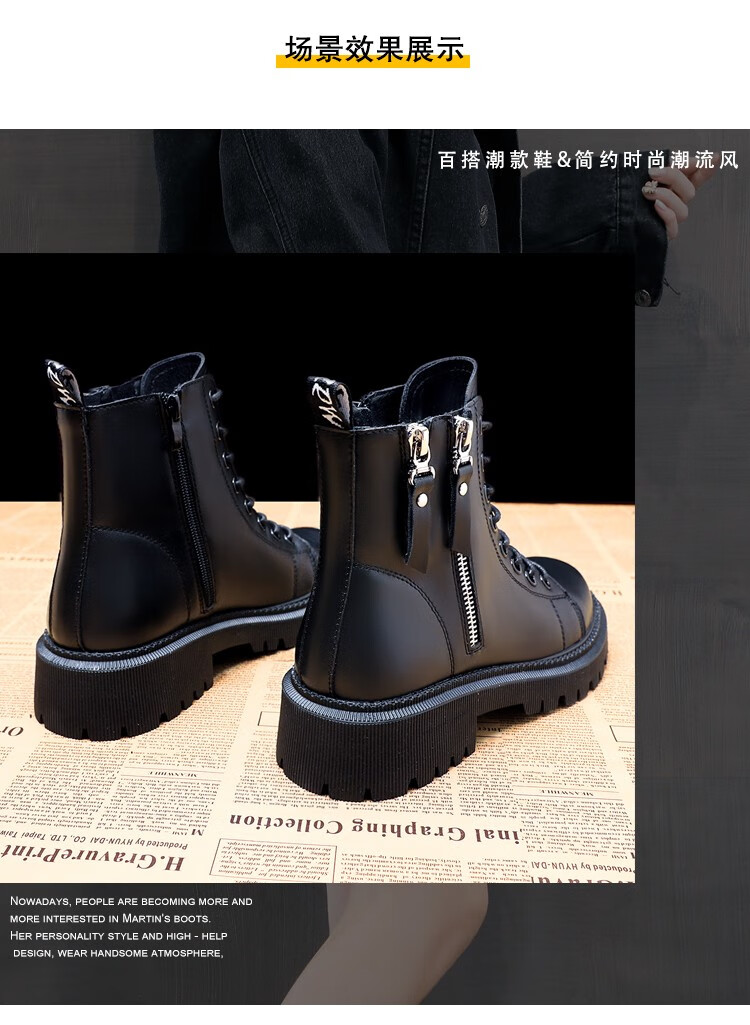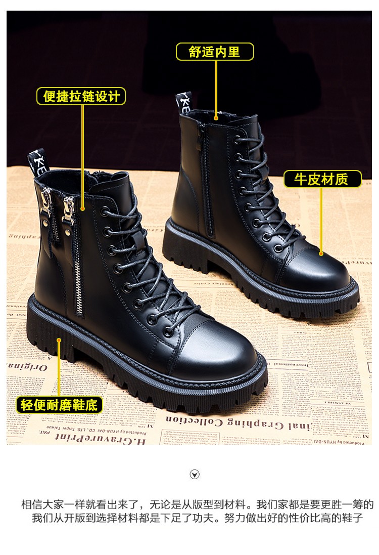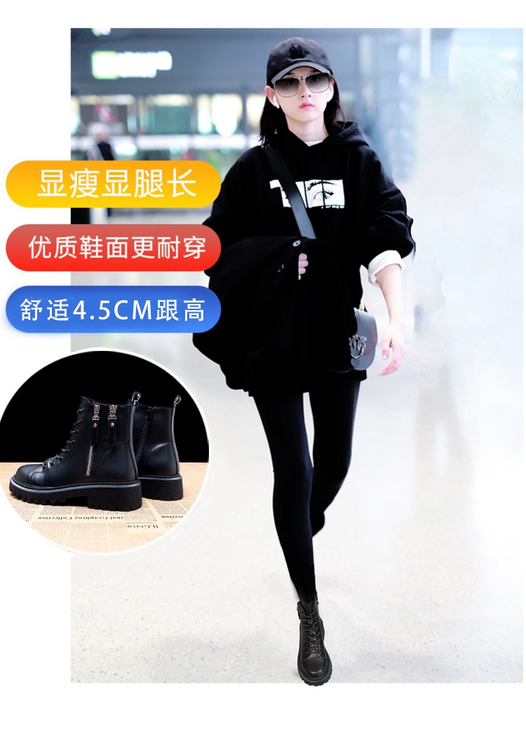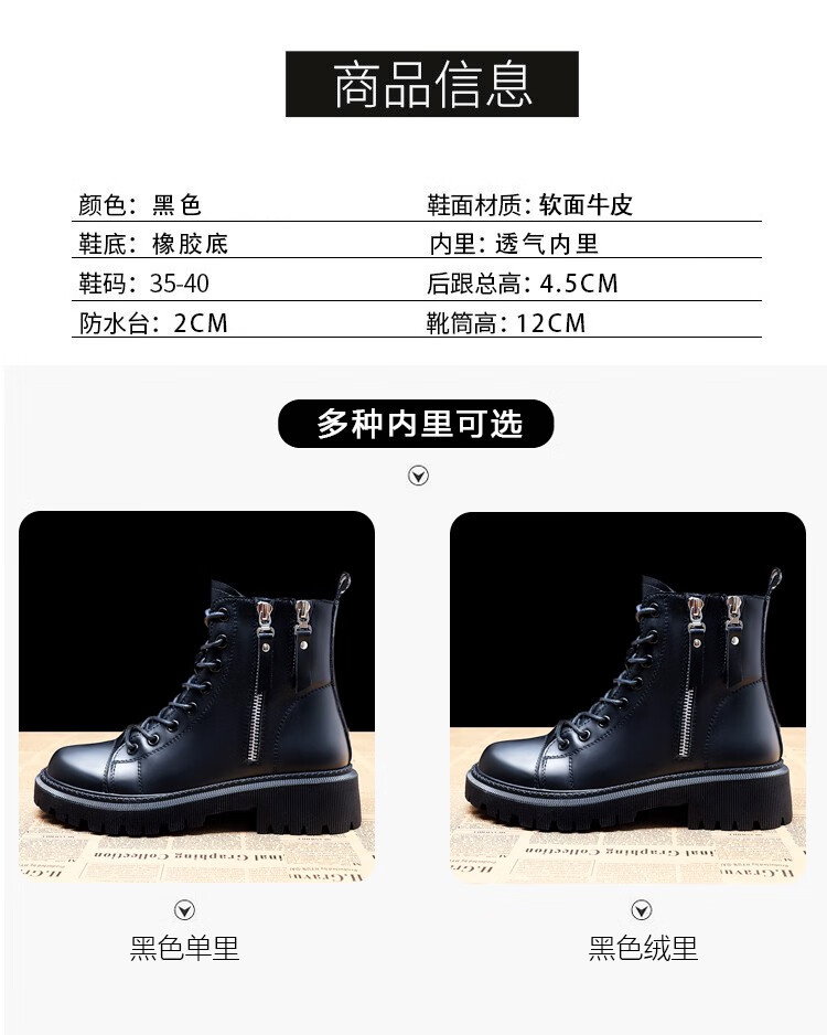 柯妮丽人马丁靴女靴子2025新款英伦风女鞋增高女士短靴系带机车女靴潮鞋子 黑色加绒 36
