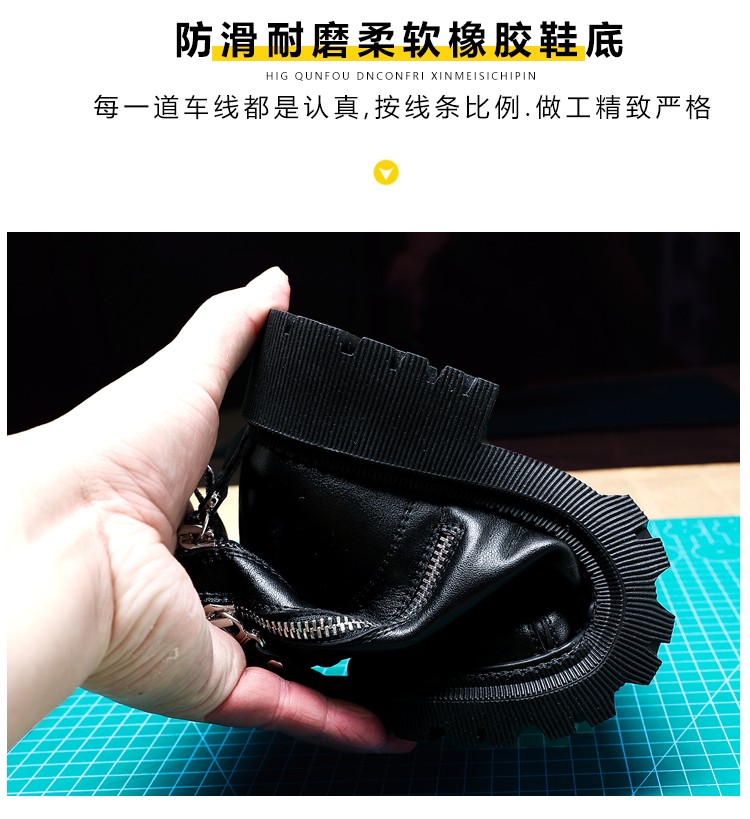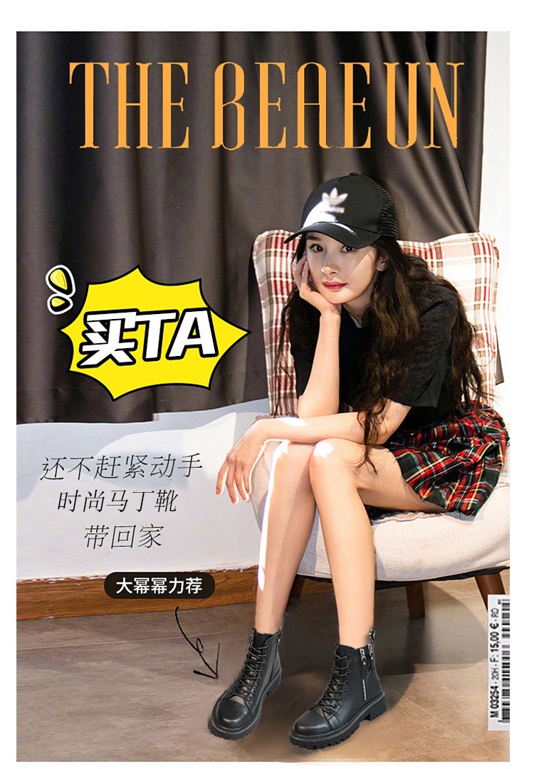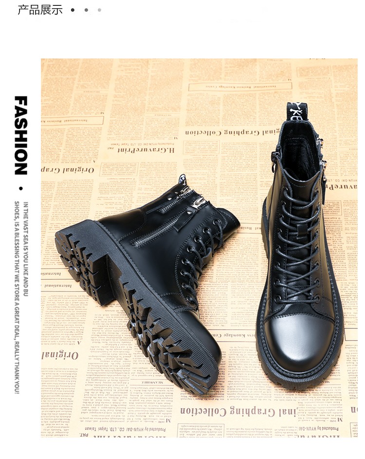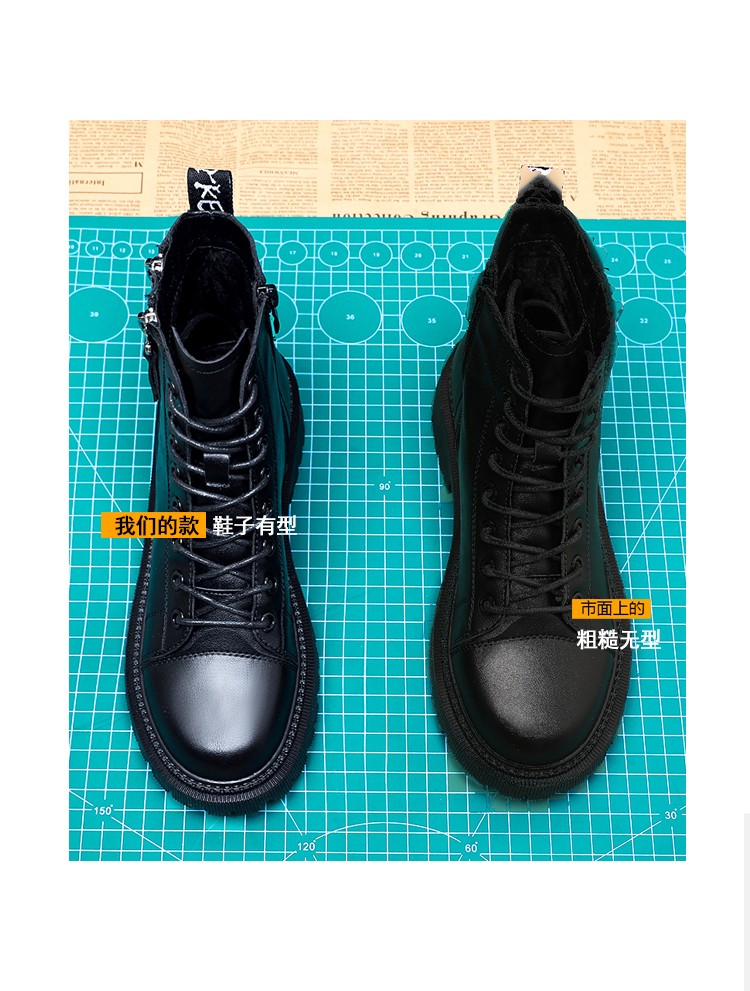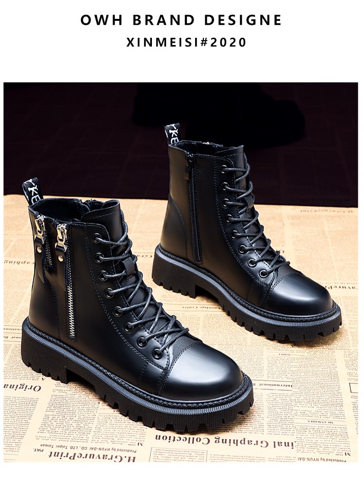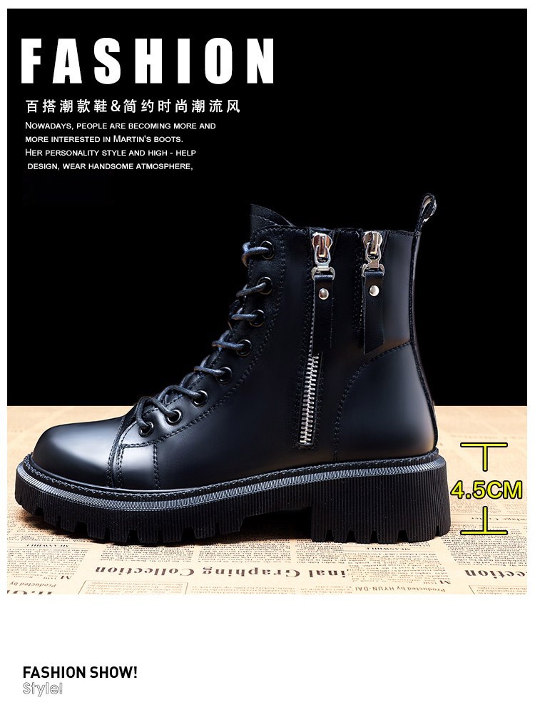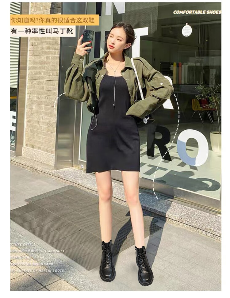 柯妮丽人马丁靴女靴子2025新款英伦风女鞋增高女士短靴系带机车女靴潮鞋子 黑色加绒 36