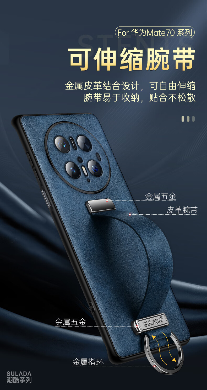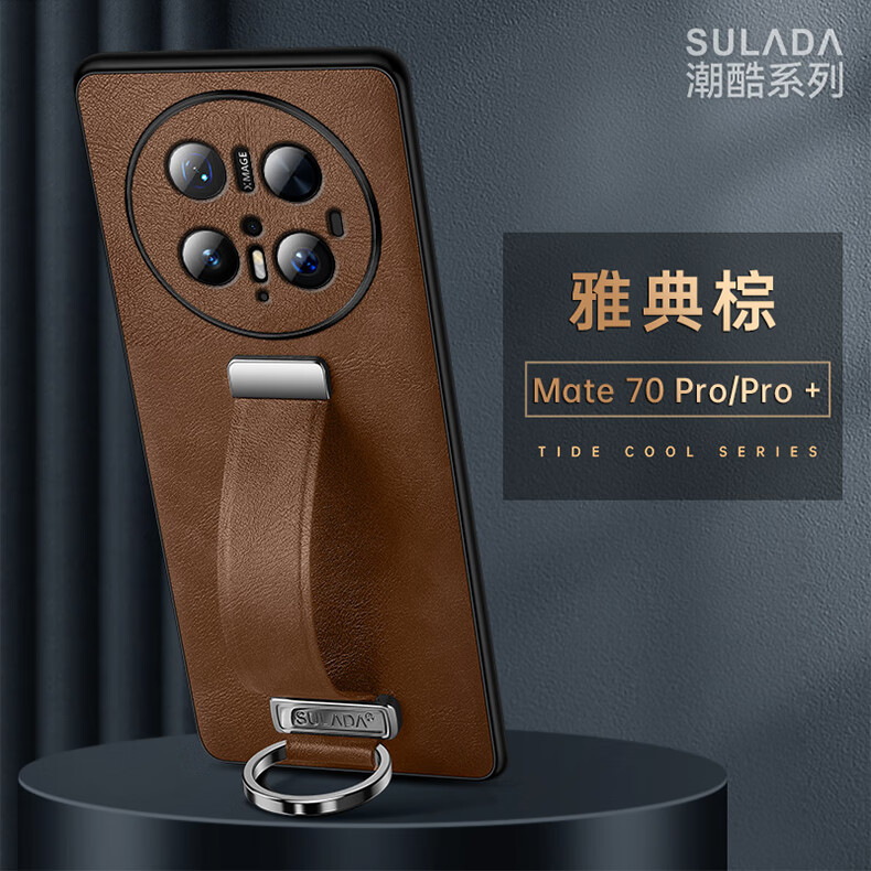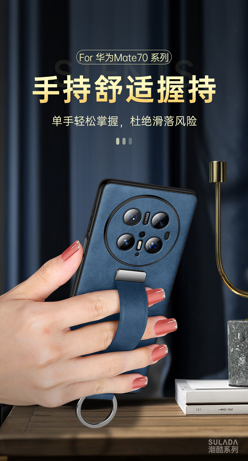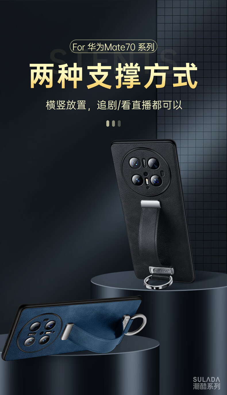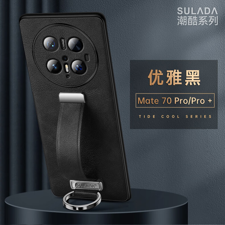 适用华为Mate70Pro手机壳新款素皮防摔mate70Pro腕带指环支架套 优雅黑 华为 Mate 70 Pro+