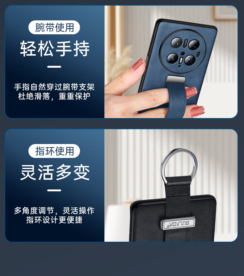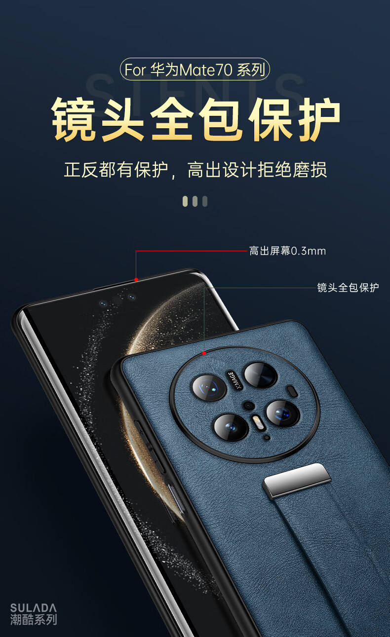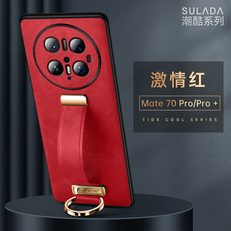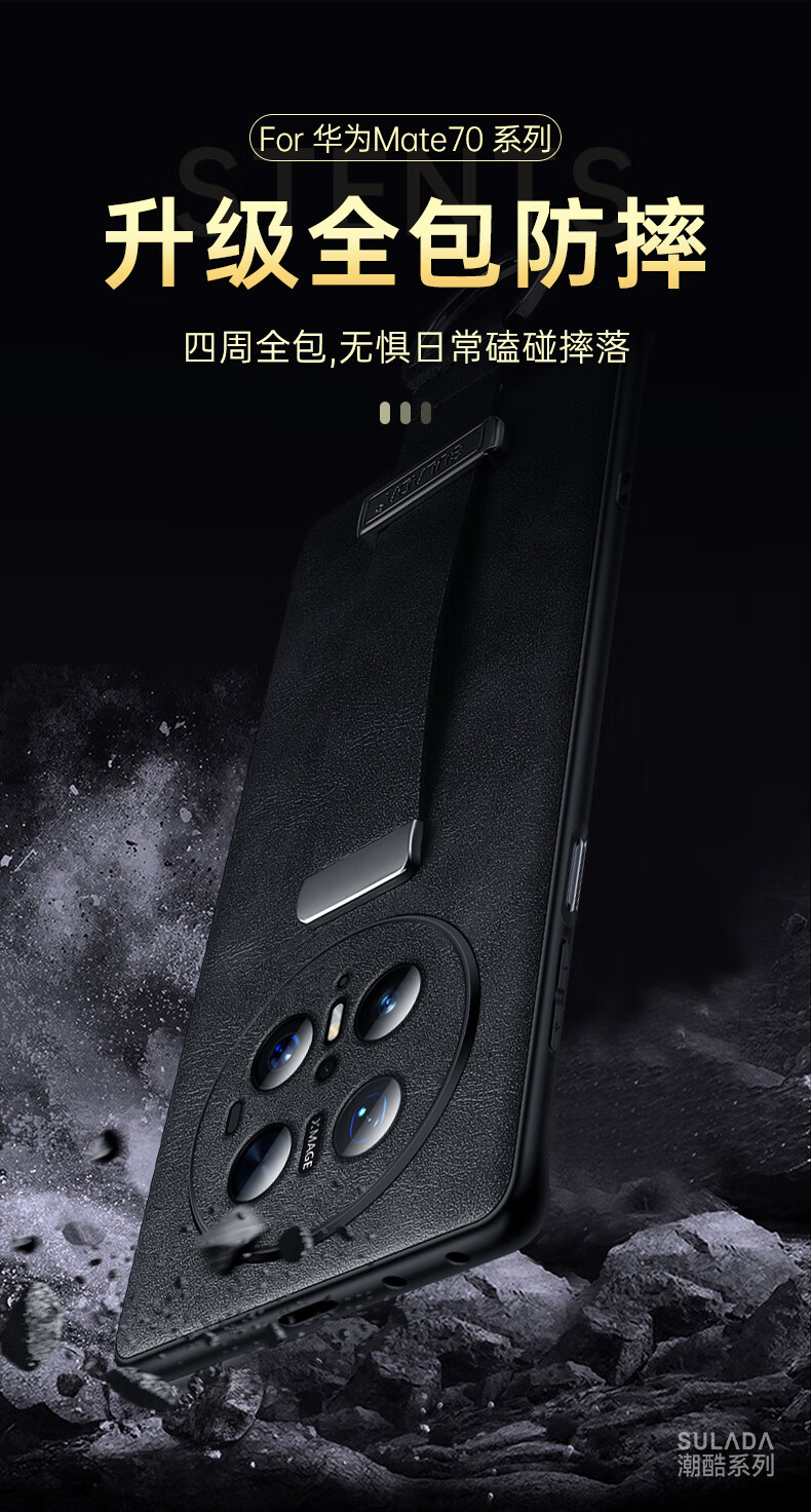 适用华为Mate70Pro手机壳新款素皮防摔mate70Pro腕带指环支架套 优雅黑 华为 Mate 70 Pro+