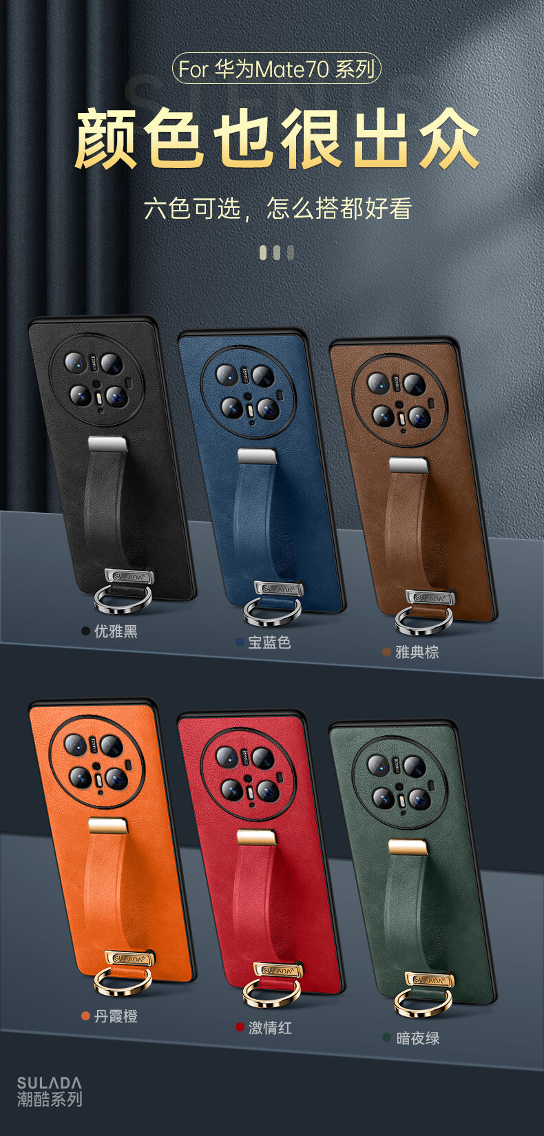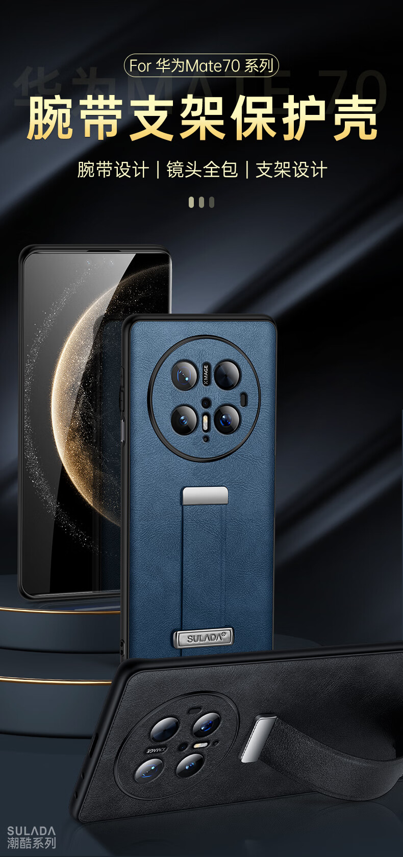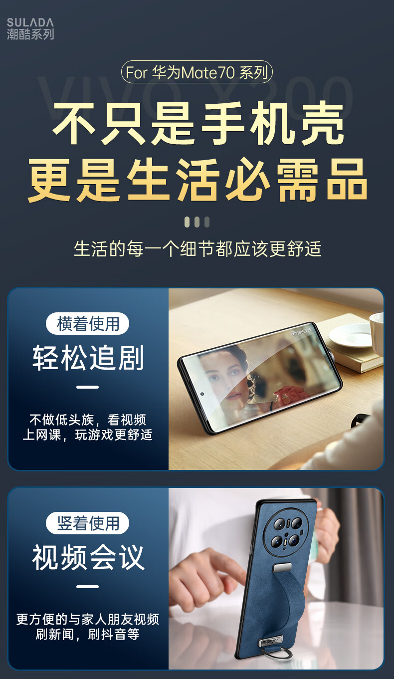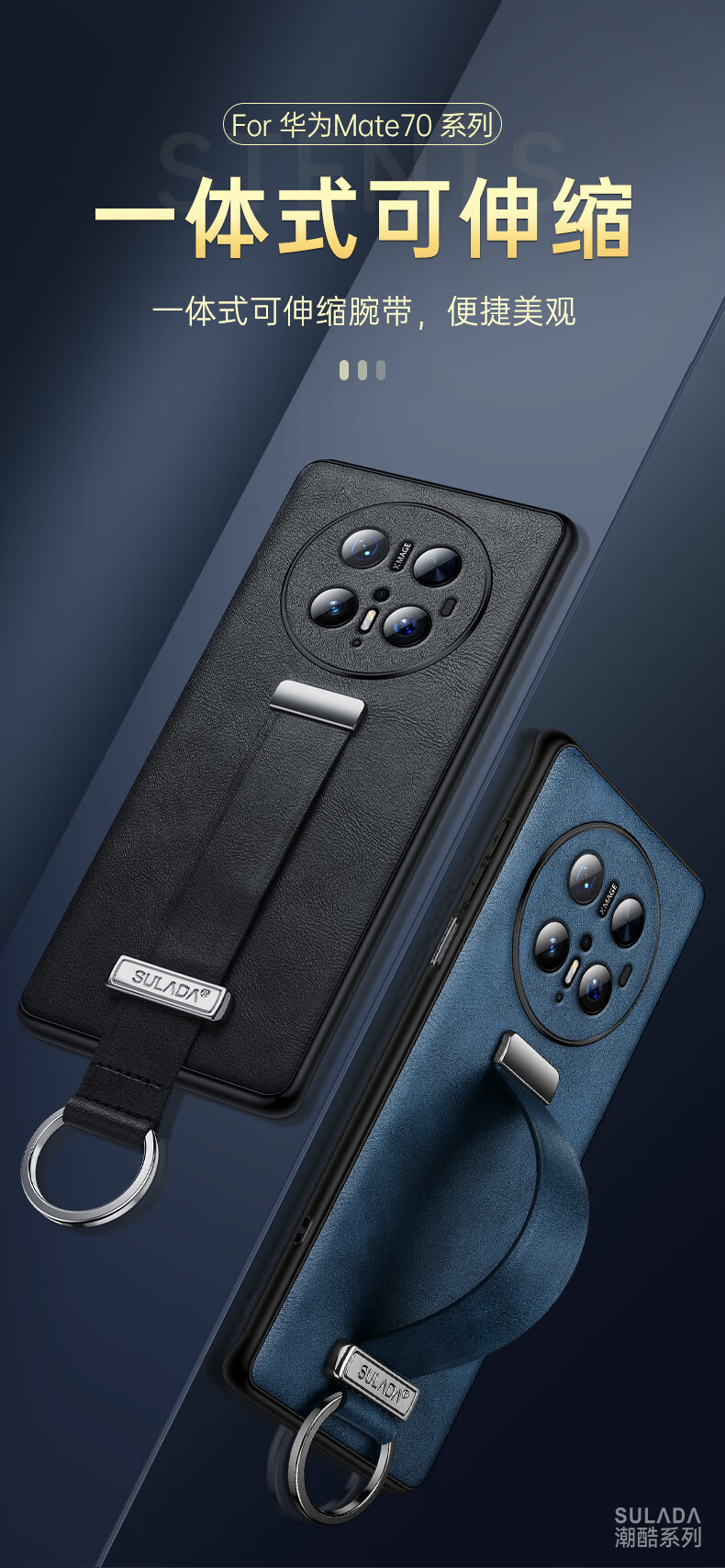 适用华为Mate70Pro手机壳新款素皮防摔mate70Pro腕带指环支架套 优雅黑 华为 Mate 70 Pro+