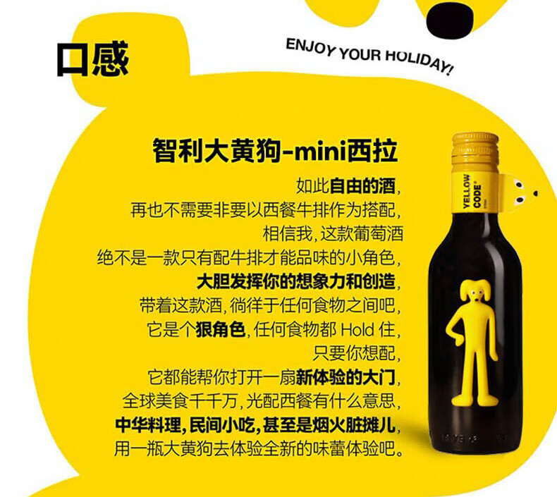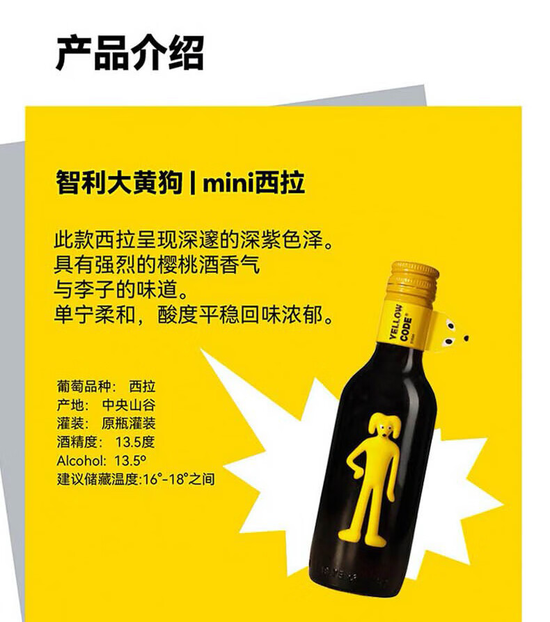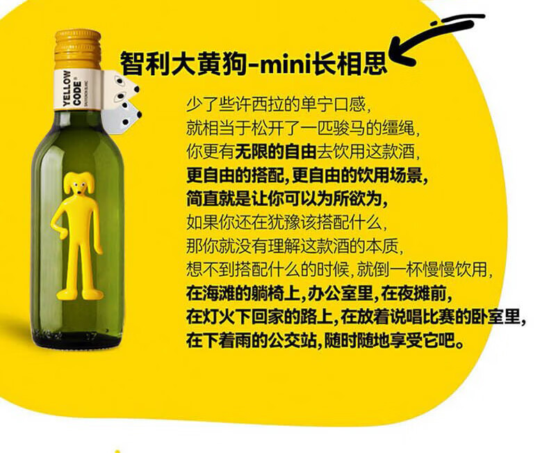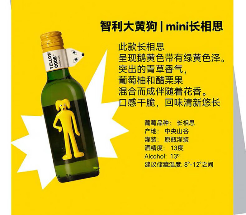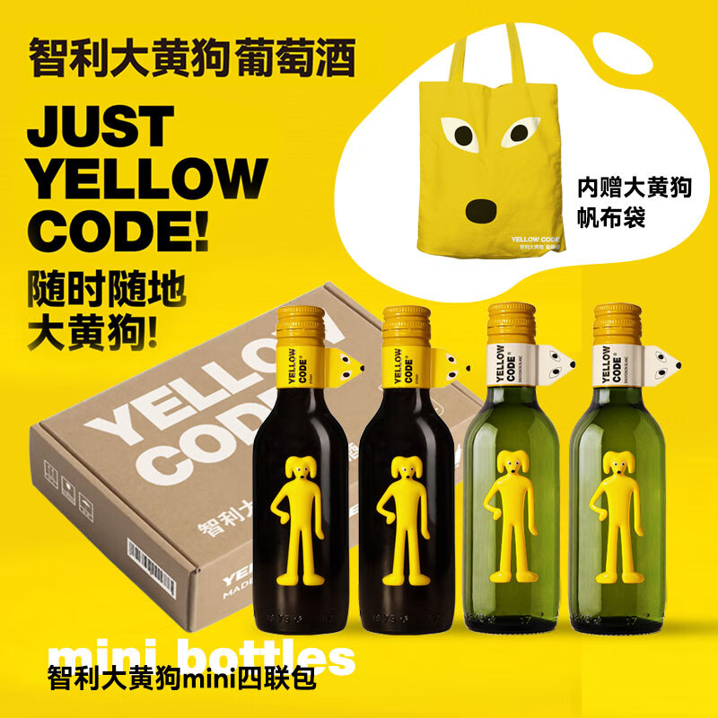 大黄狗智利进口中央山谷产区大黄狗mini四联包葡萄酒 187.5ml (西拉2支+长相思2支)*4瓶装