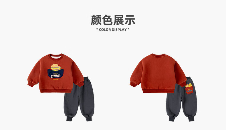 嘟嘟家宝宝套装冬款男童洋气两件套冬装女童休闲卫衣裤子儿童衣服童装潮 红色 110