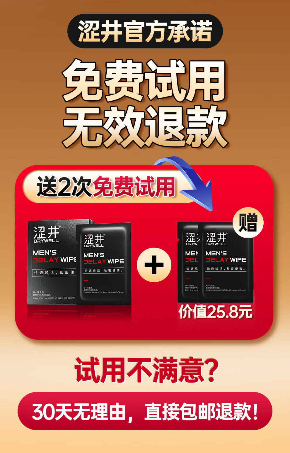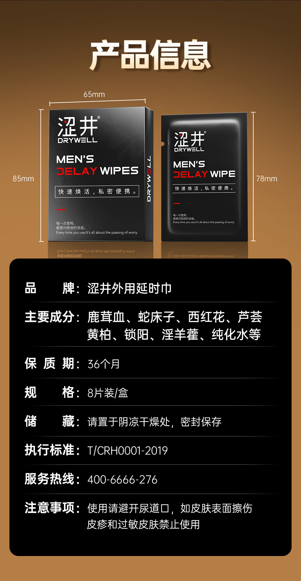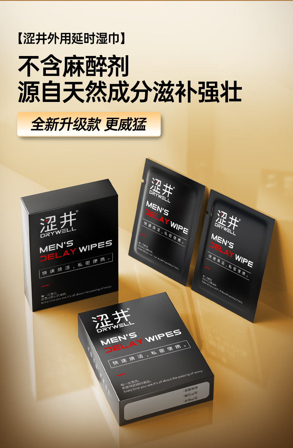 涩井延时湿巾 延迟时间 男士外用持久不射 硬久可口不麻 神油印度 【延时湿巾2.0】3盒/24片 可搭配男士延时喷雾喷剂男科药久插不射早泄龟头敏感用