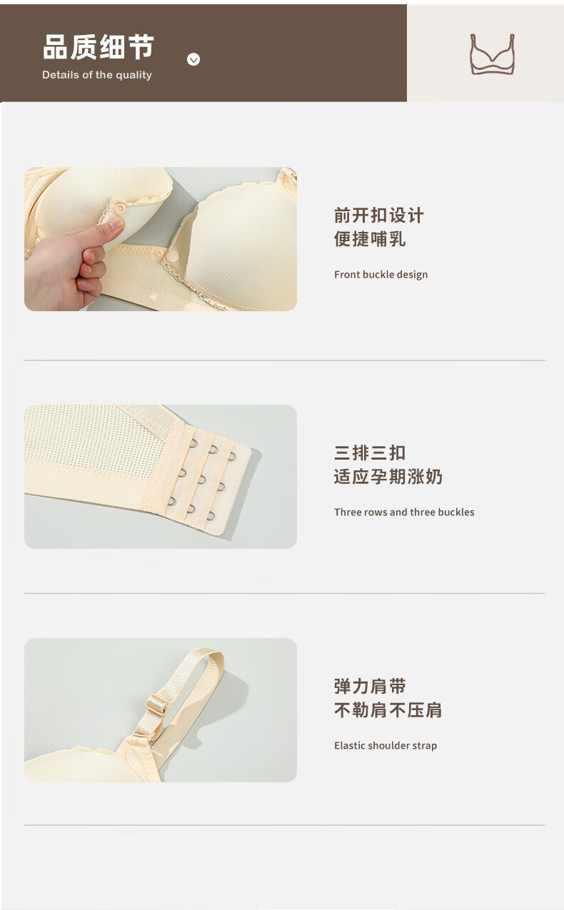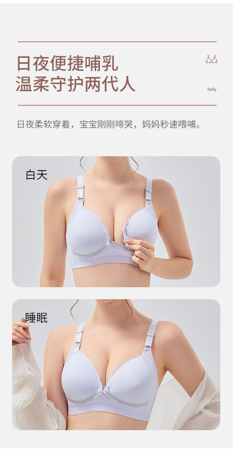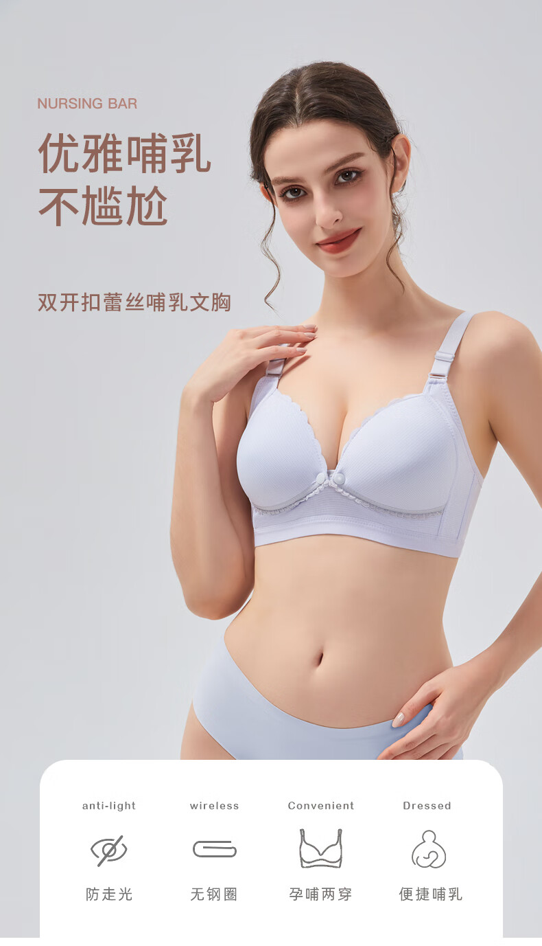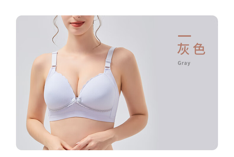 ROVO哺乳文胸孕妇内衣产前产后喂奶胸罩聚拢前开扣怀孕期喂奶专用 灰色+肤色 L【适用于90-120】