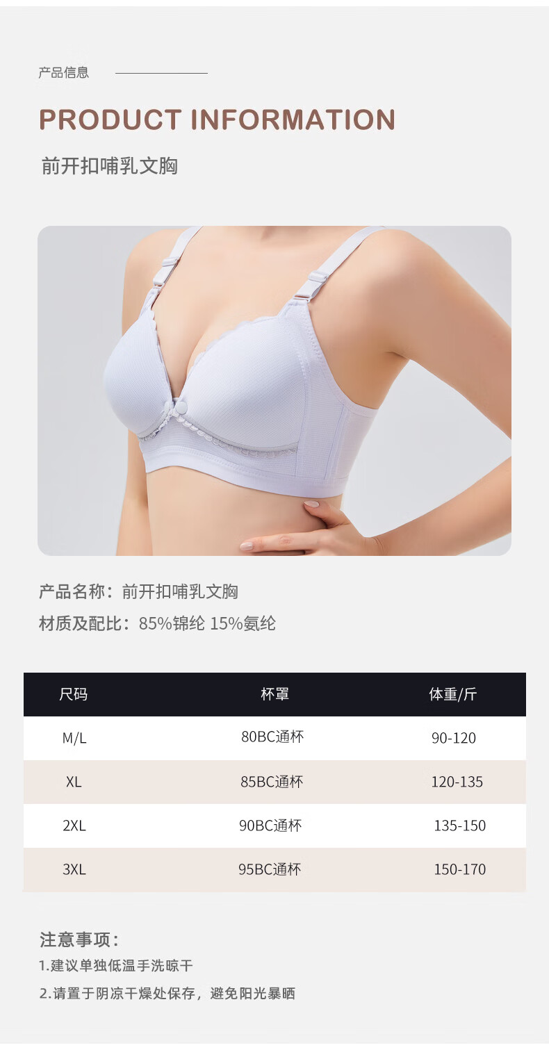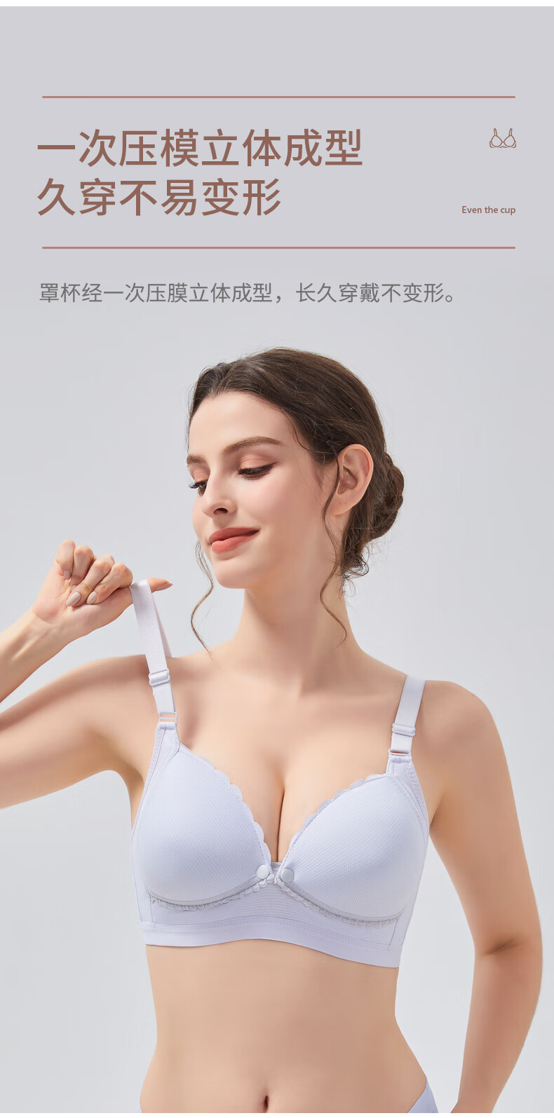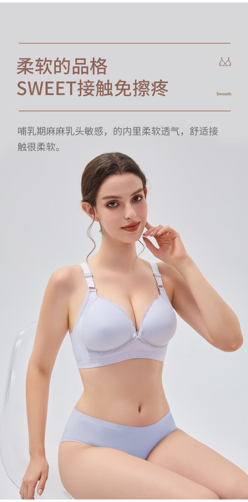 ROVO哺乳文胸孕妇内衣产前产后喂奶胸罩聚拢前开扣怀孕期喂奶专用 灰色+肤色 L【适用于90-120】