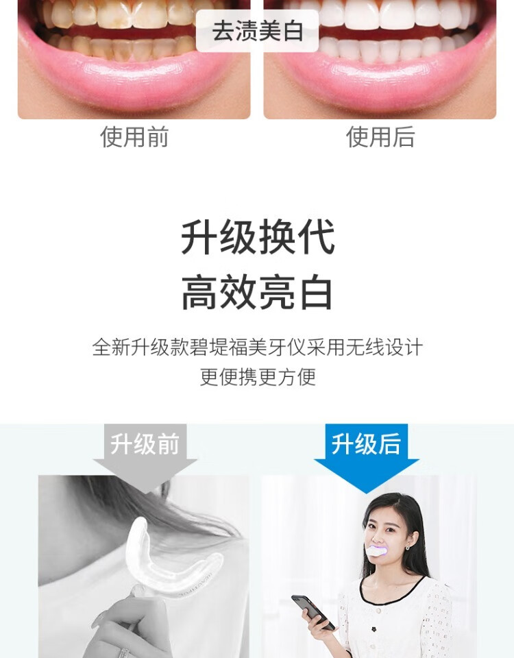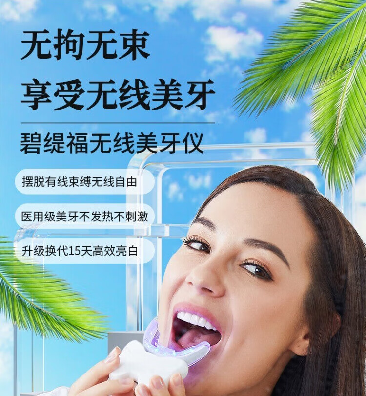 碧缇福2025年新款无线美牙亮白牙齿蓝光冷光仪美白牙神器凝胶去除黄牙渍 无线美牙仪+凝胶5支+赠牙粉牙膏美笔