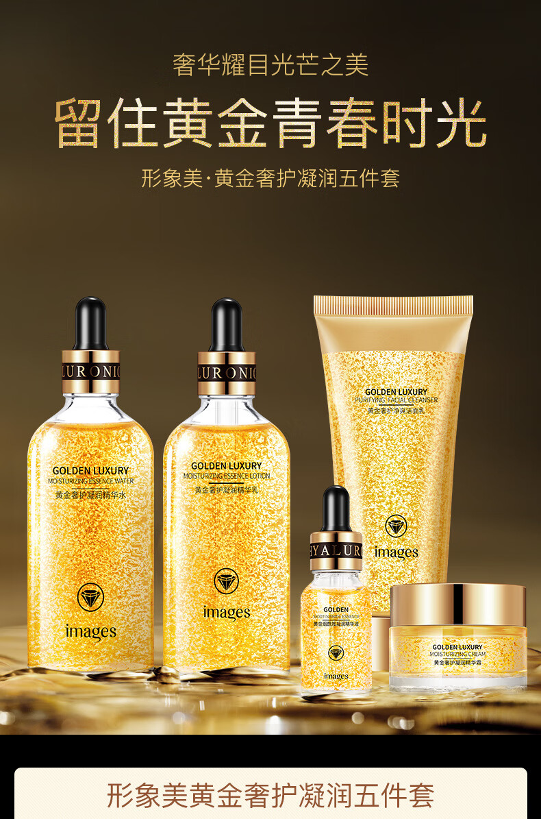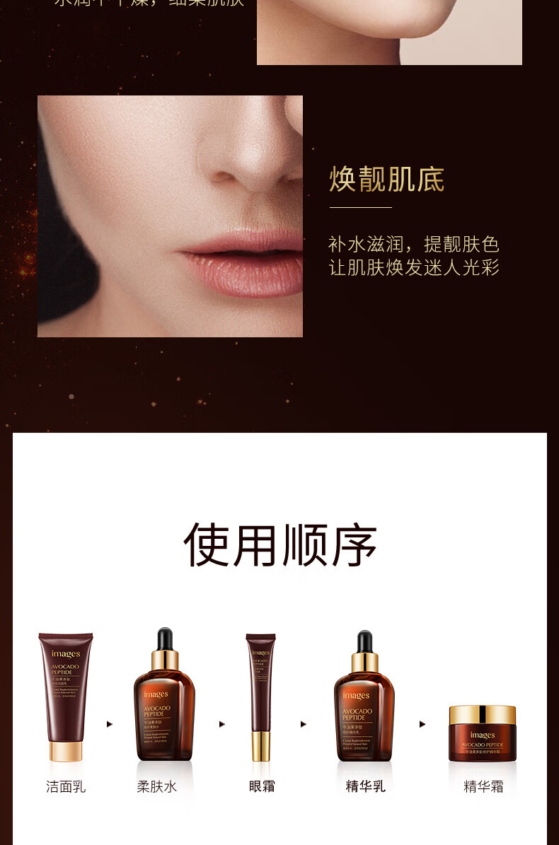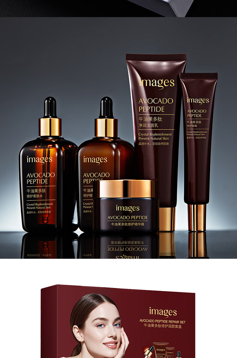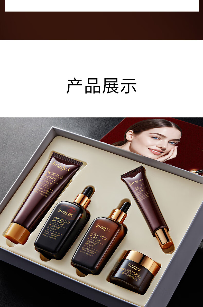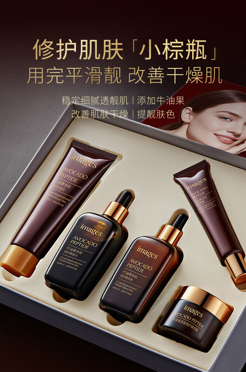 形象美小棕瓶护肤品套装五件套滋润补水牛油果多肽化妆品礼盒 小金瓶【黄金奢护凝润五件套礼盒装】
