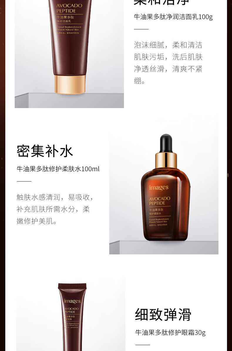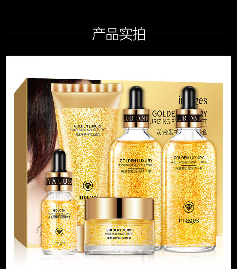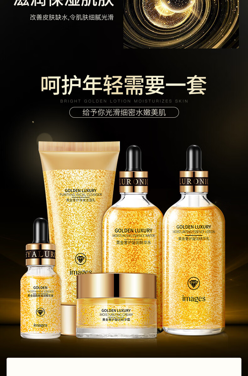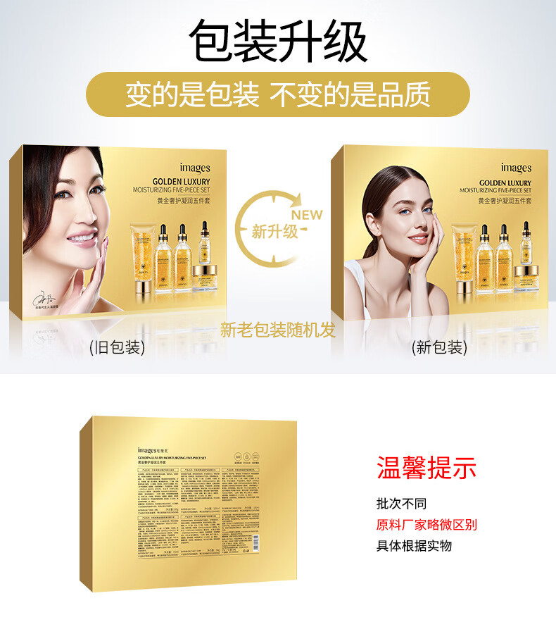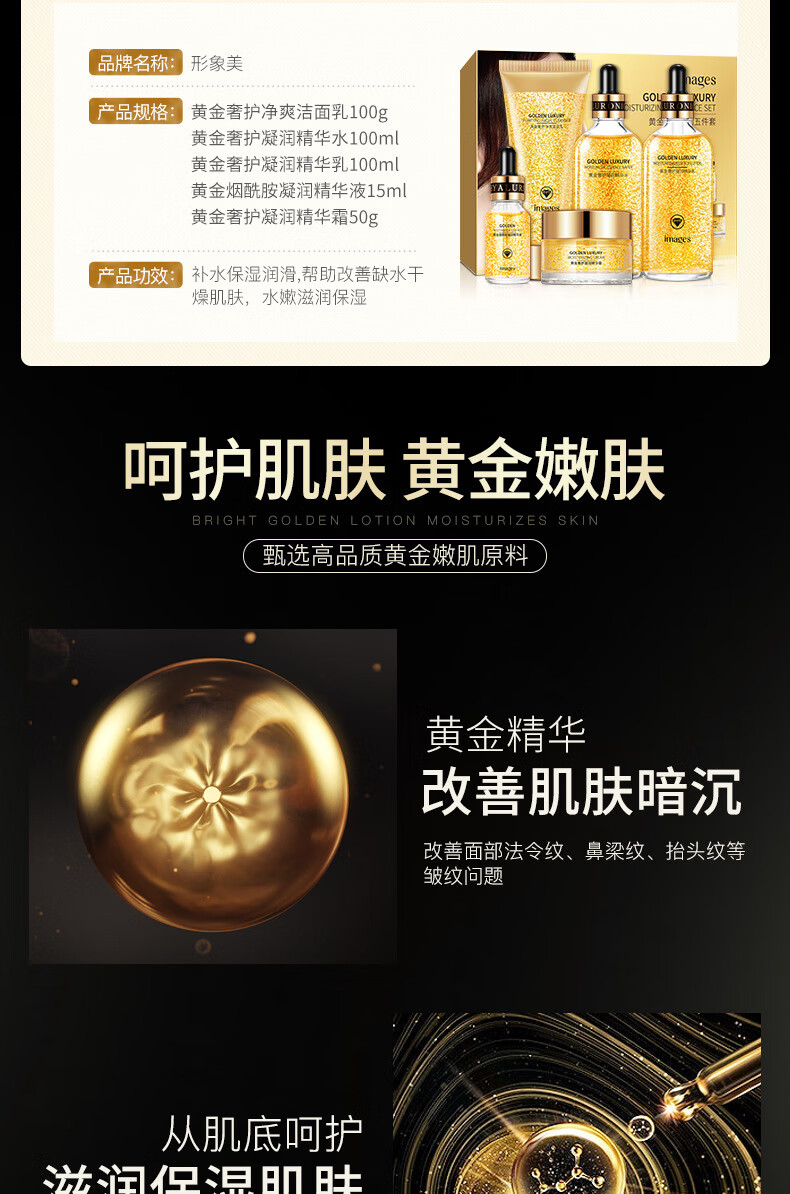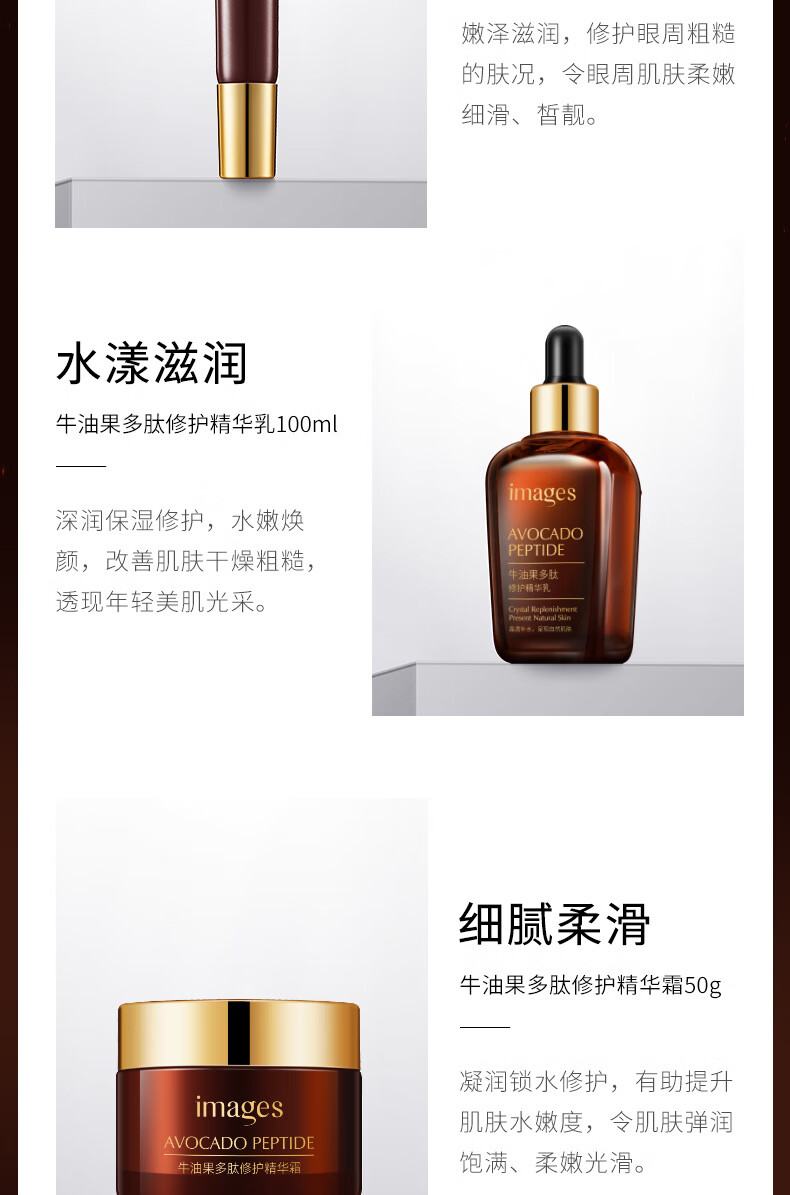 形象美小棕瓶护肤品套装五件套滋润补水牛油果多肽化妆品礼盒 小金瓶【黄金奢护凝润五件套礼盒装】