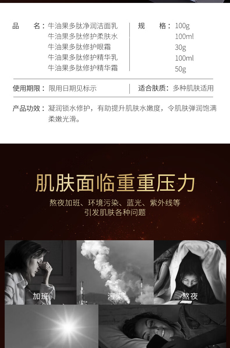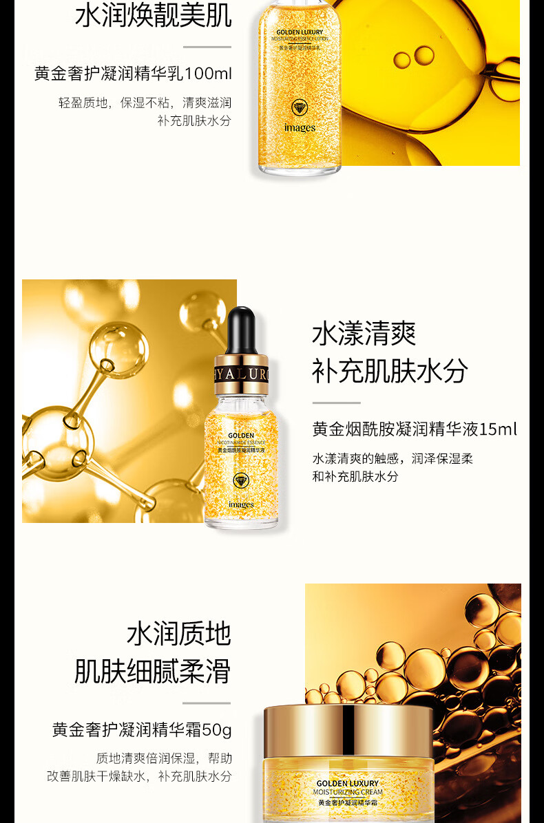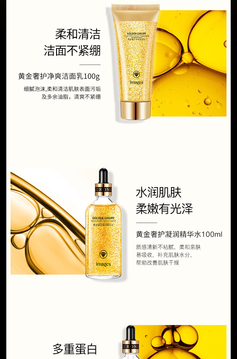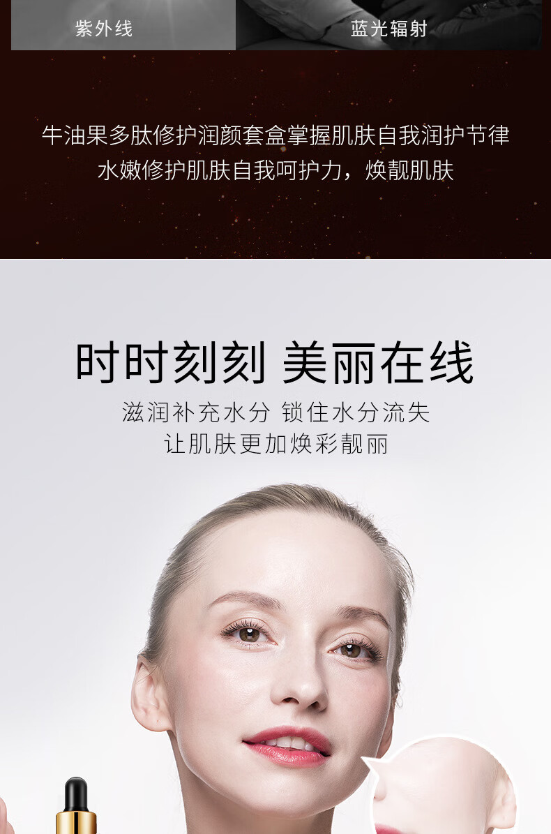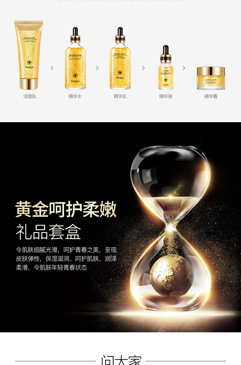 形象美小棕瓶护肤品套装五件套滋润补水牛油果多肽化妆品礼盒 小金瓶【黄金奢护凝润五件套礼盒装】