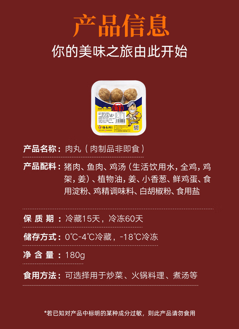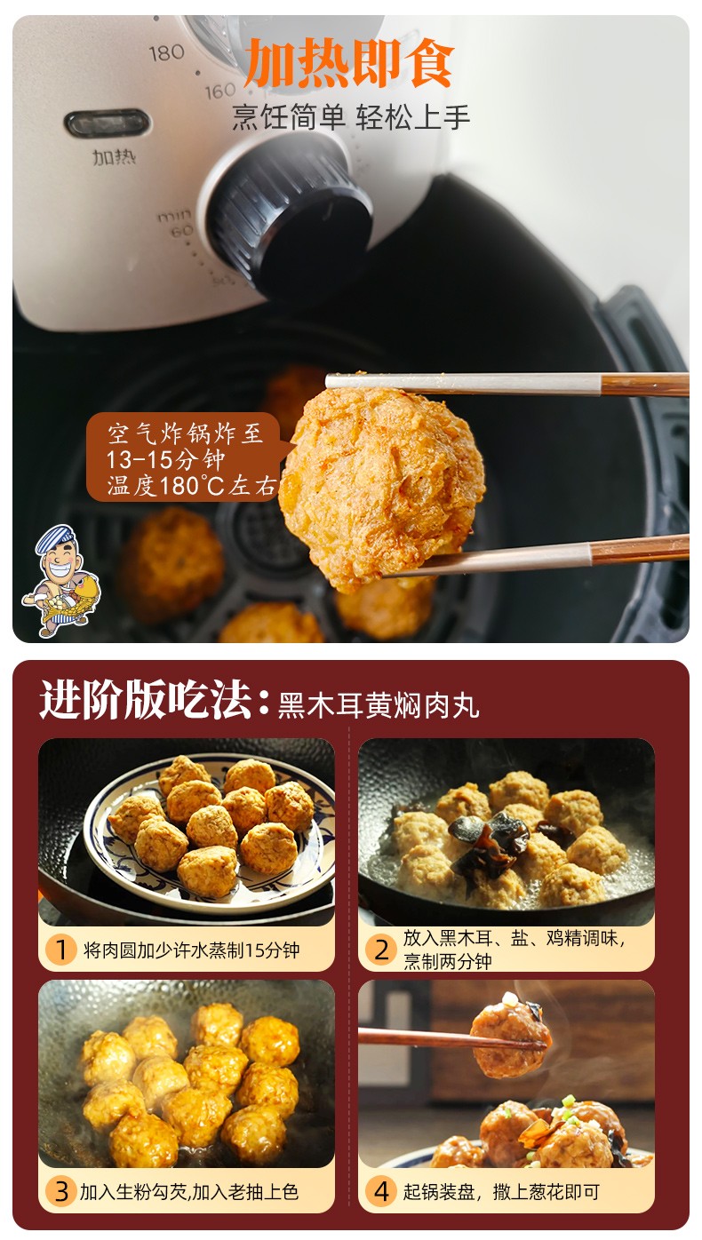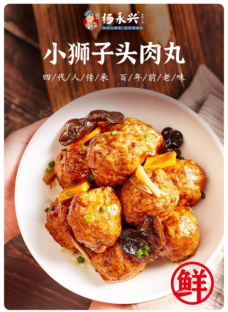 杨永兴黄陂三鲜猪肉丸子四喜丸子狮子头肉圆子年夜饭半成品预制菜速食菜 180g肉丸*4盒