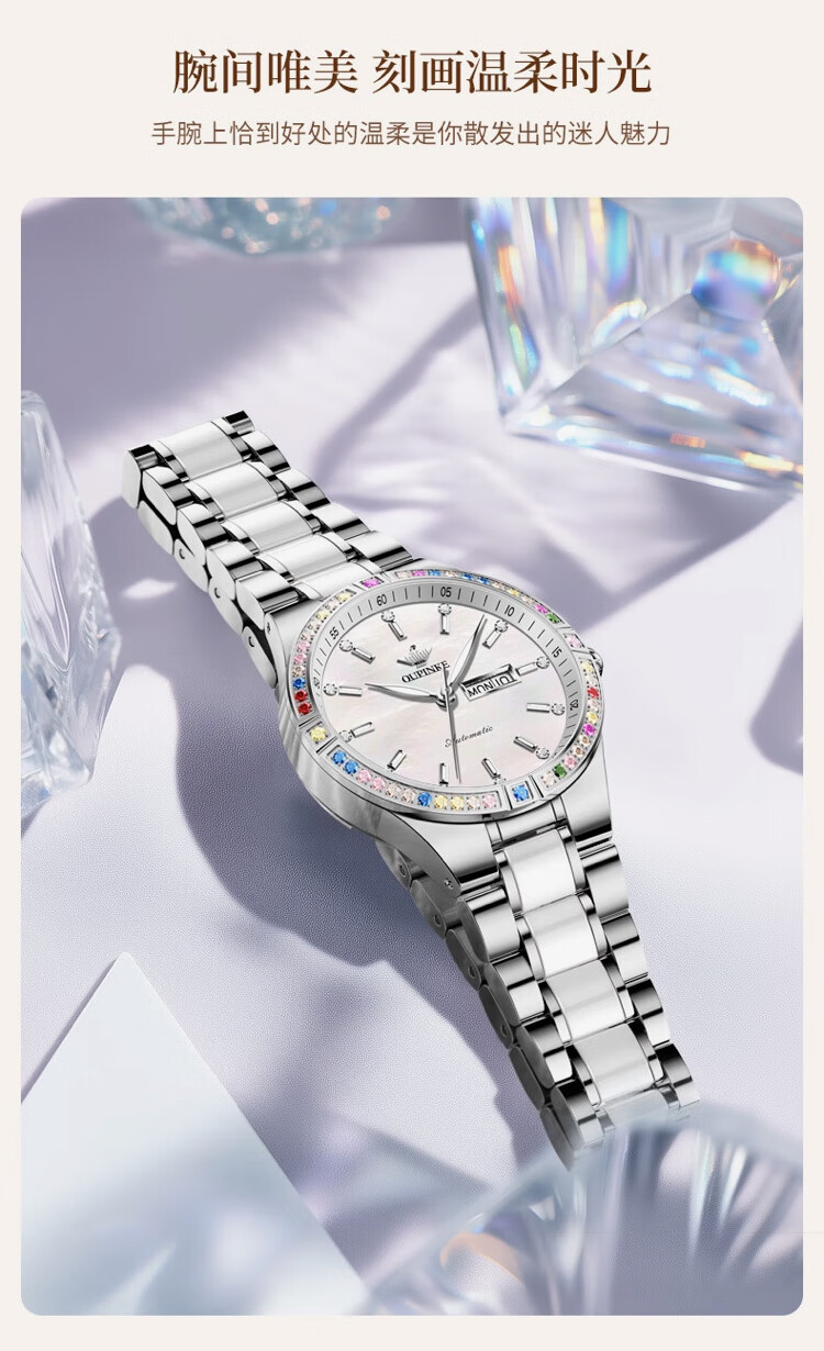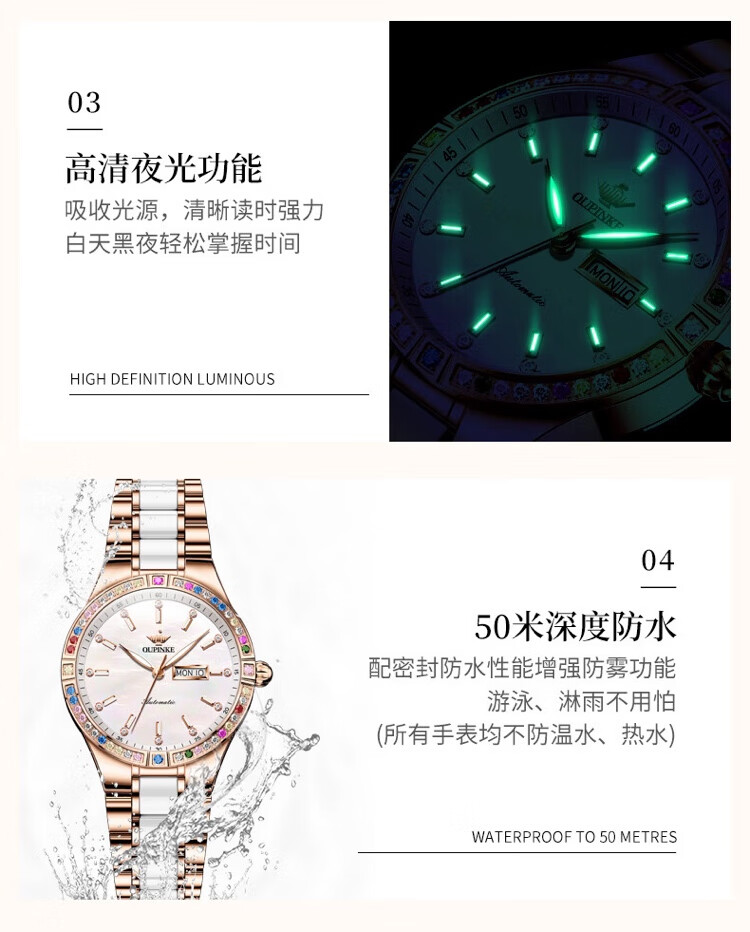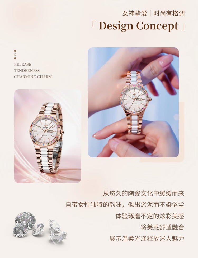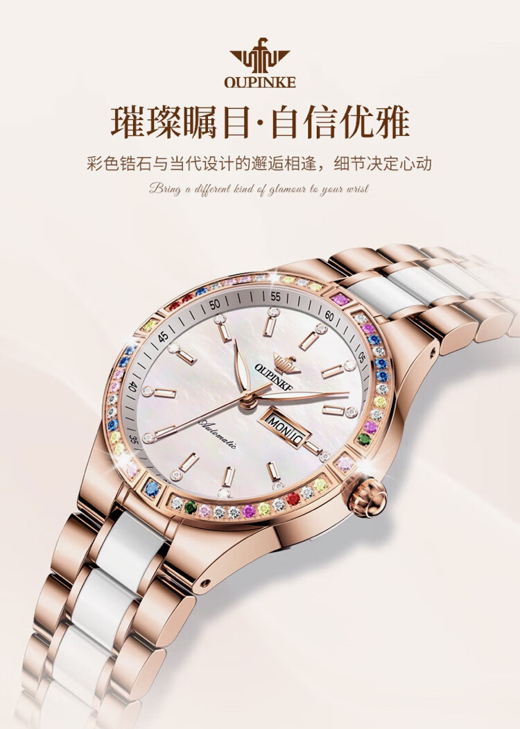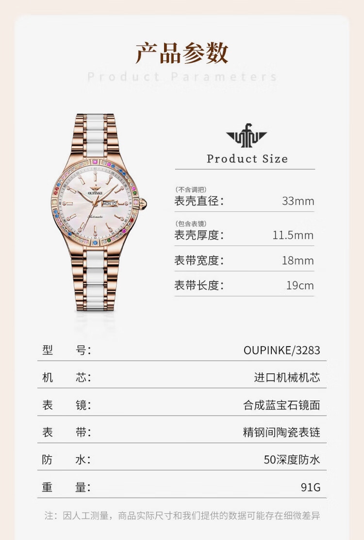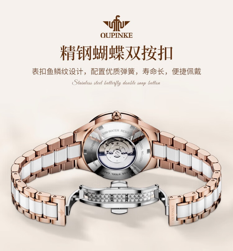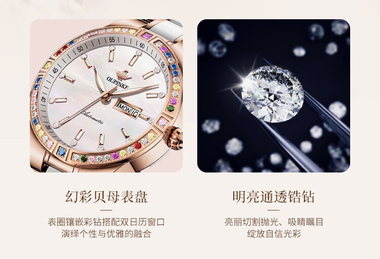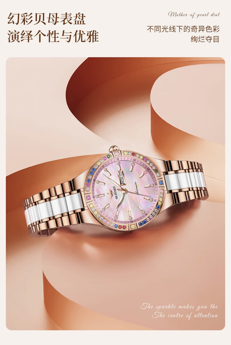 瑞士正品浪琴Longines手表女全自动机械表双日历夜光防水专用女表 玫金白面【官方标配】 33mm