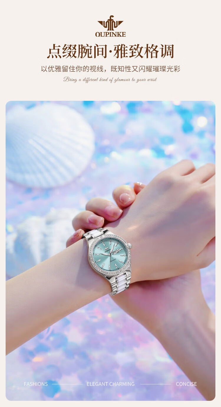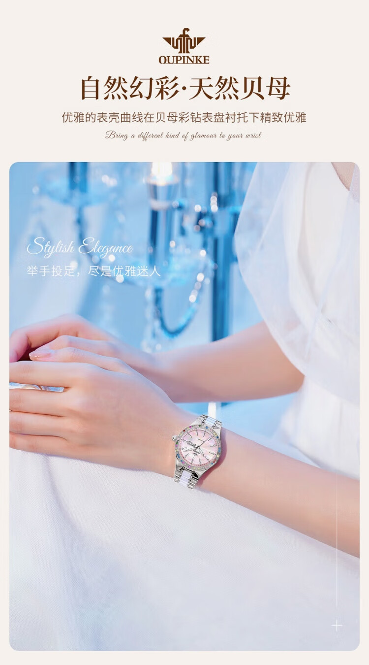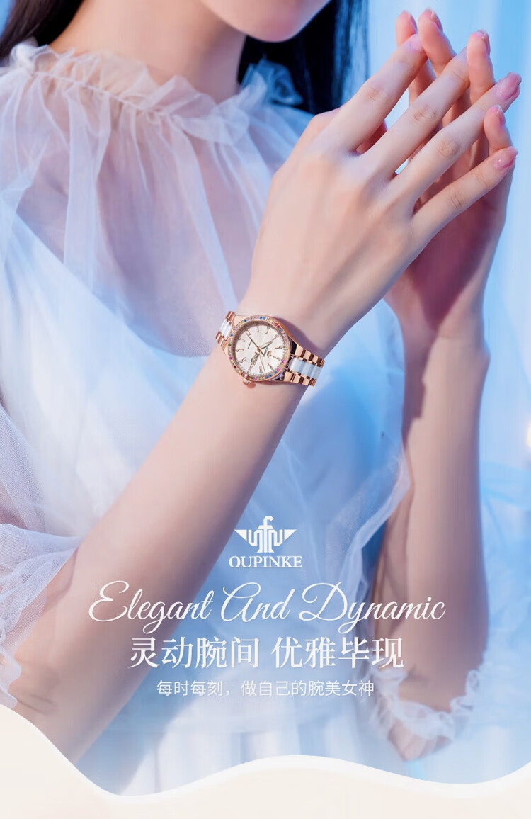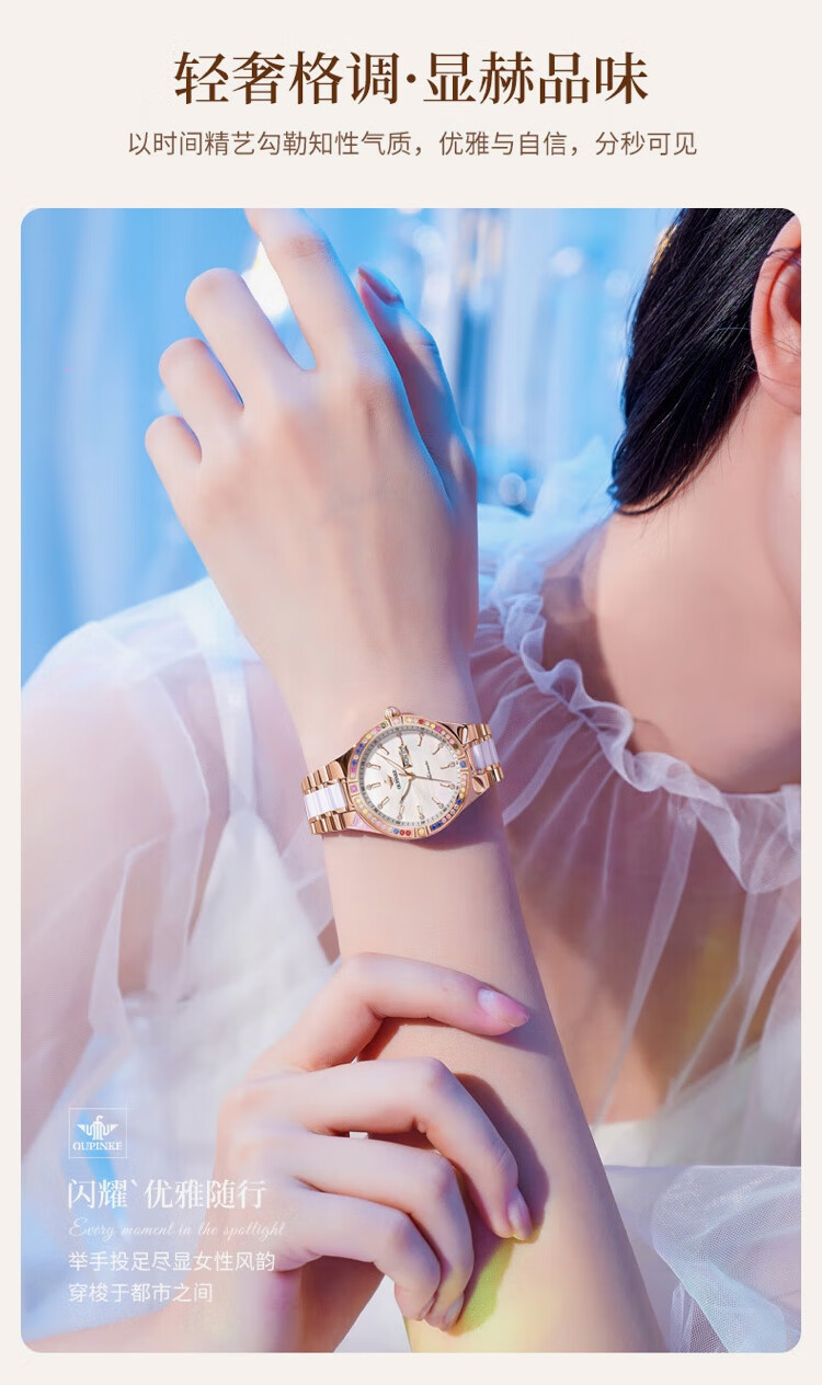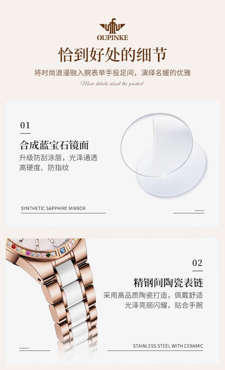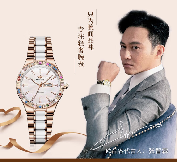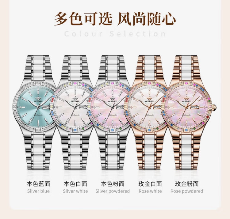 瑞士正品浪琴Longines手表女全自动机械表双日历夜光防水专用女表 玫金白面【官方标配】 33mm