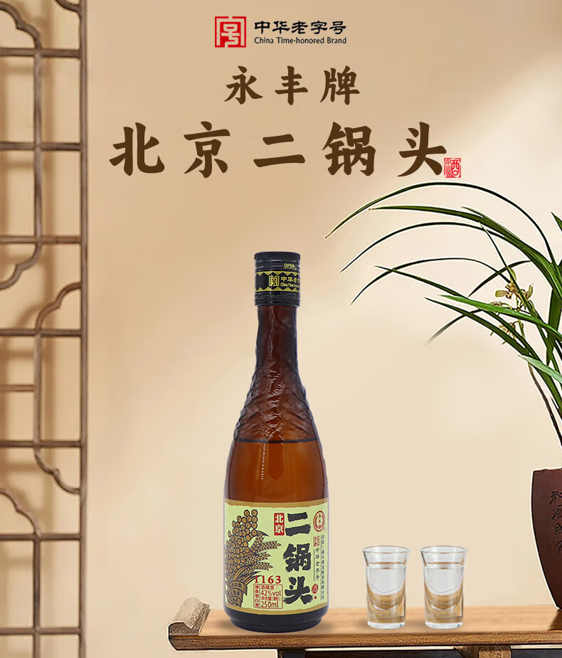 永丰牌北京二锅头 清香型白酒 纯粮酒 永丰二锅头 整箱装白酒 42度 250mL 15瓶 咖标