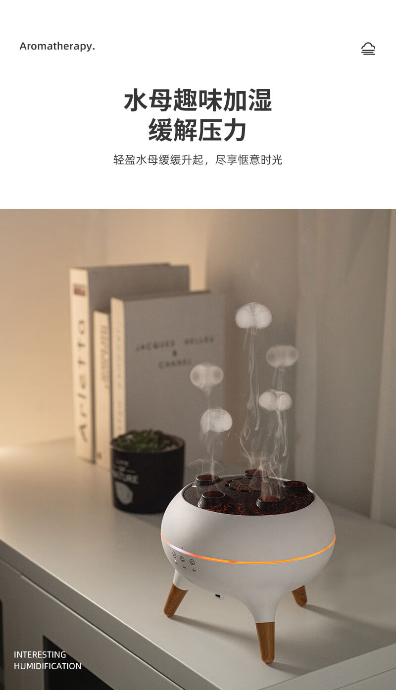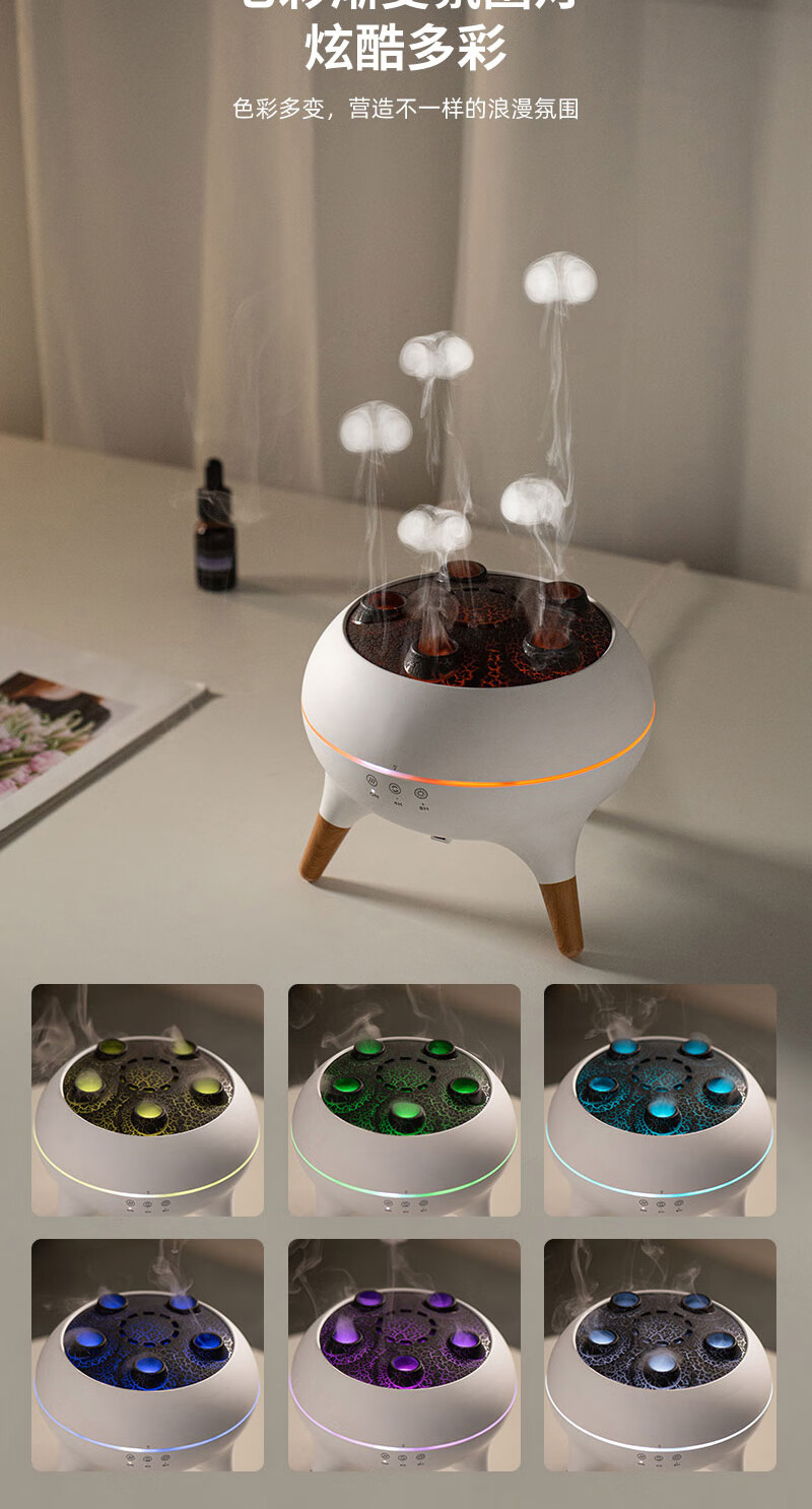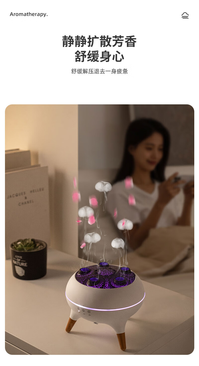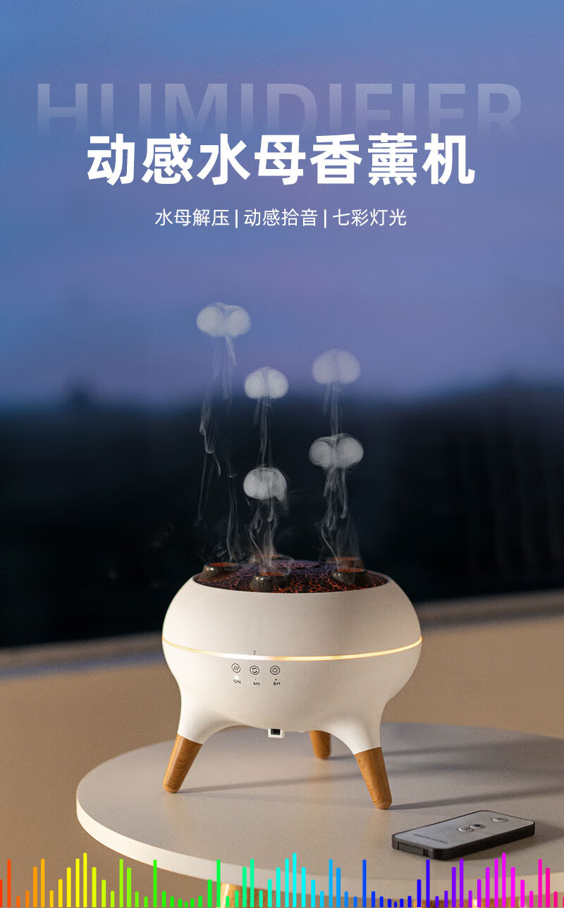 大猫日记声控拾音水母加湿器小型香薰机七彩氛围灯静音遥控空气加湿器办公室桌面摆件乔迁男士生日礼物女 拾音水母加湿器+香薰精油+礼袋
