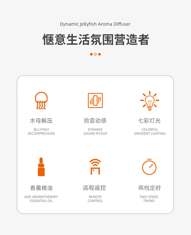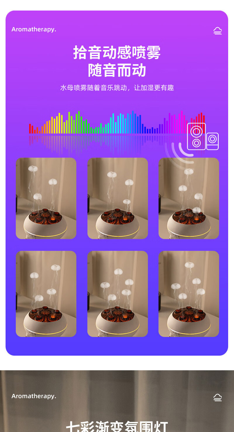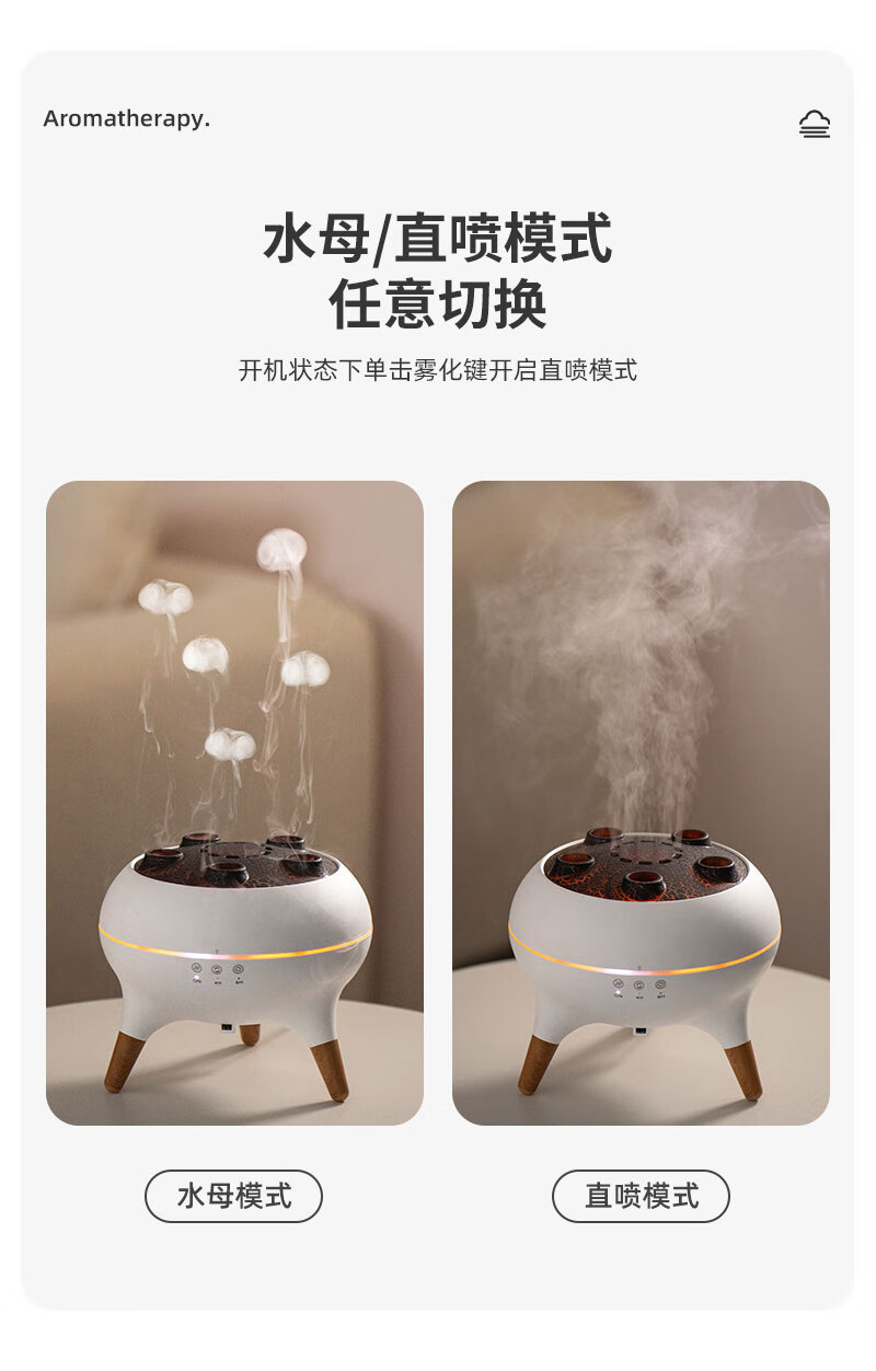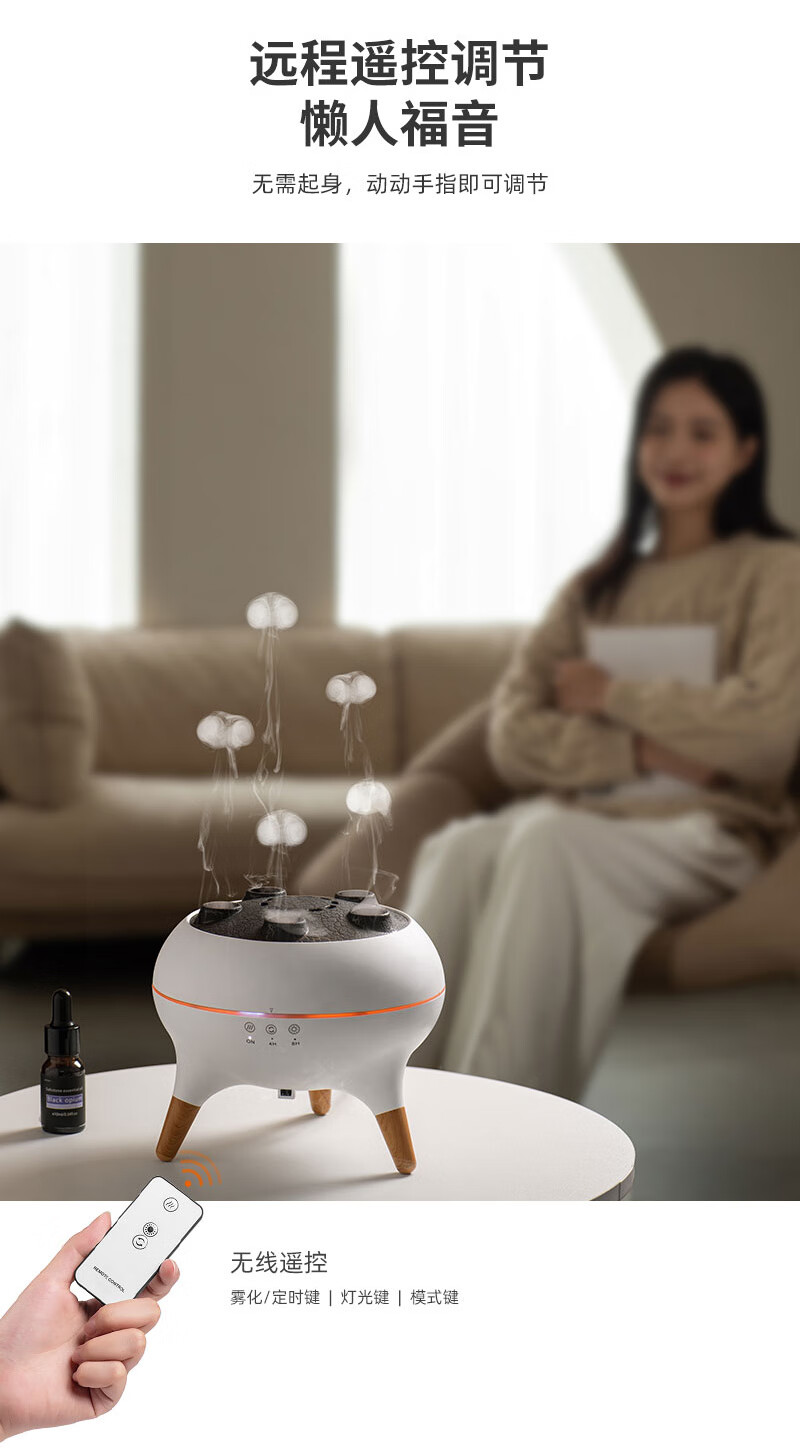 大猫日记声控拾音水母加湿器小型香薰机七彩氛围灯静音遥控空气加湿器办公室桌面摆件乔迁男士生日礼物女 拾音水母加湿器+香薰精油+礼袋