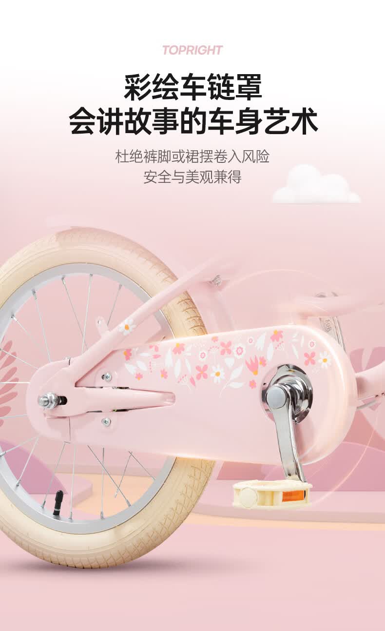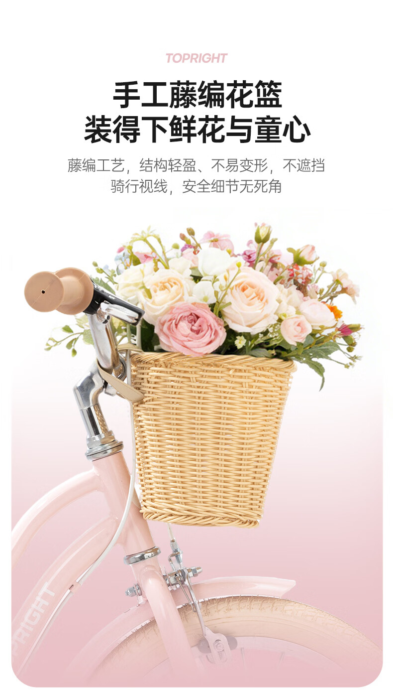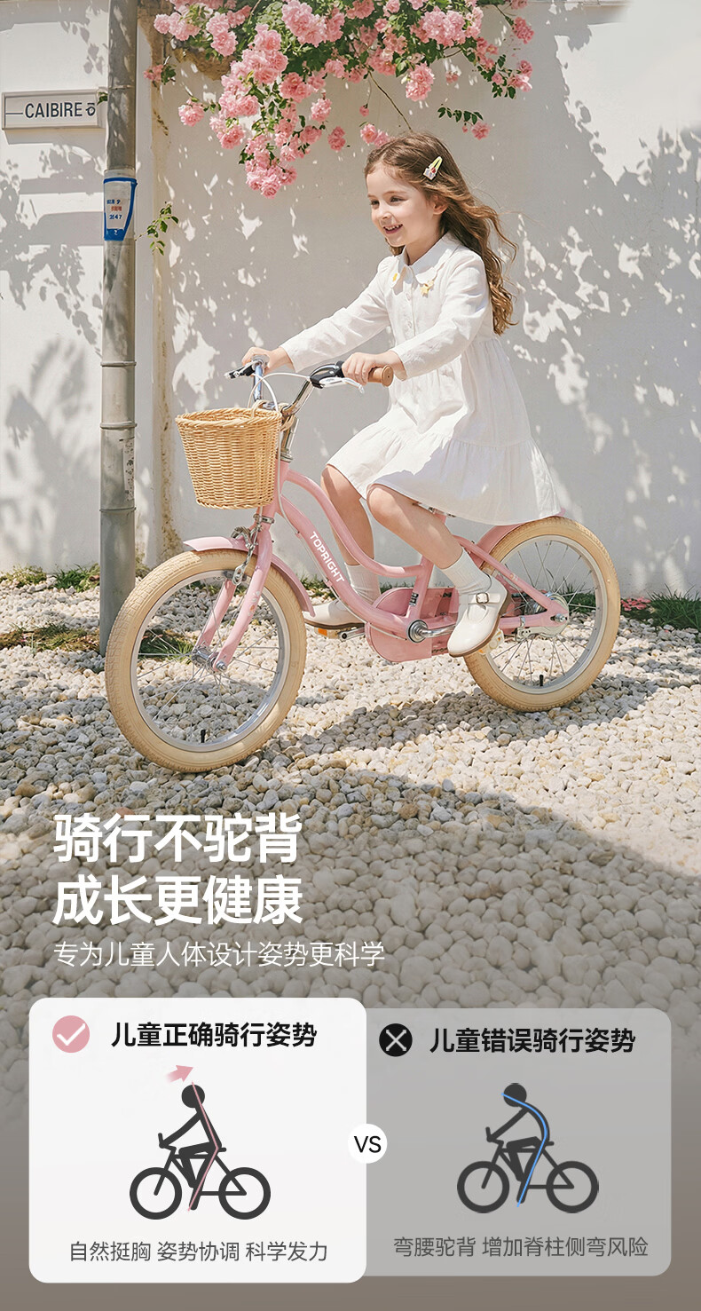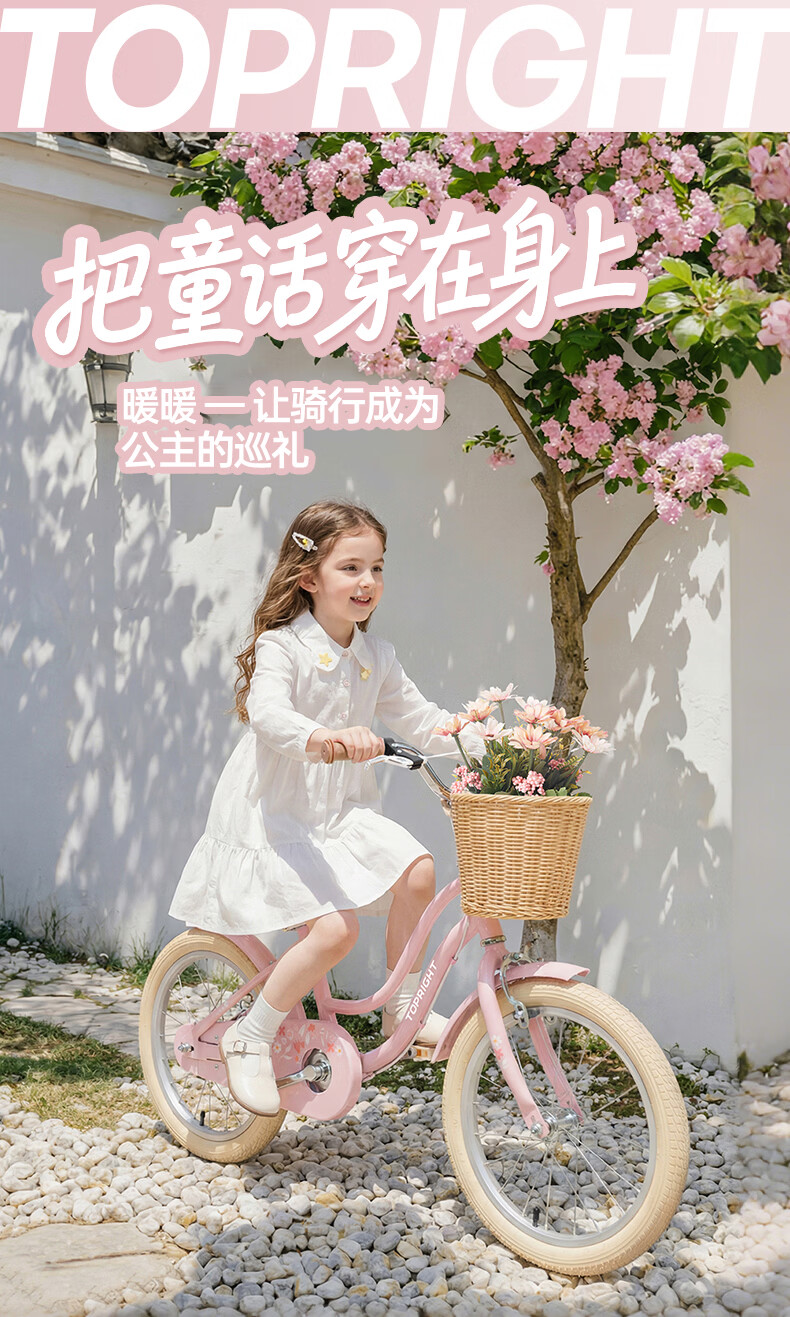 途锐达(TOPRIGHT)暖暖儿童自行车6-12岁女孩骑行16寸公主车学生专用女童单车脚踏车 暖暖黑胎版 16寸适合身高105-135CM