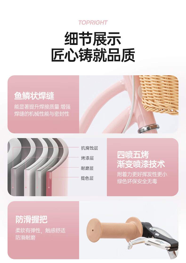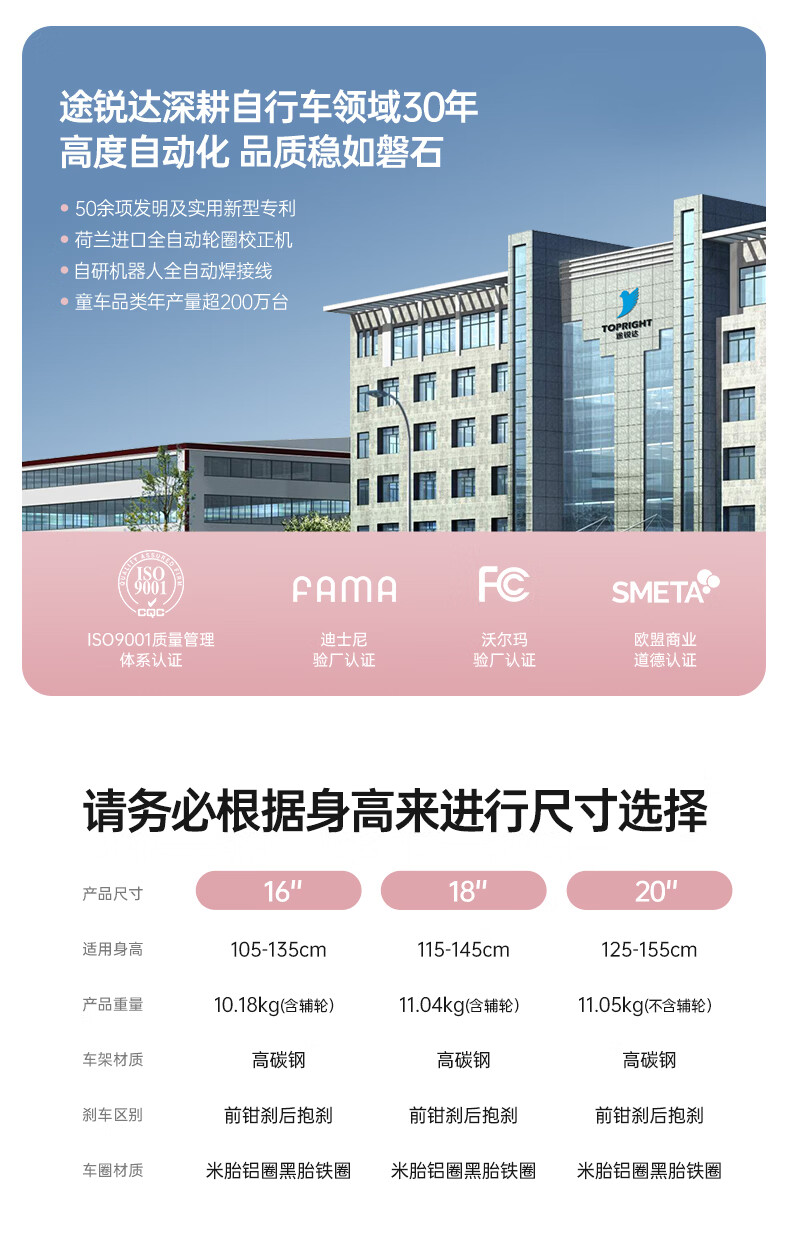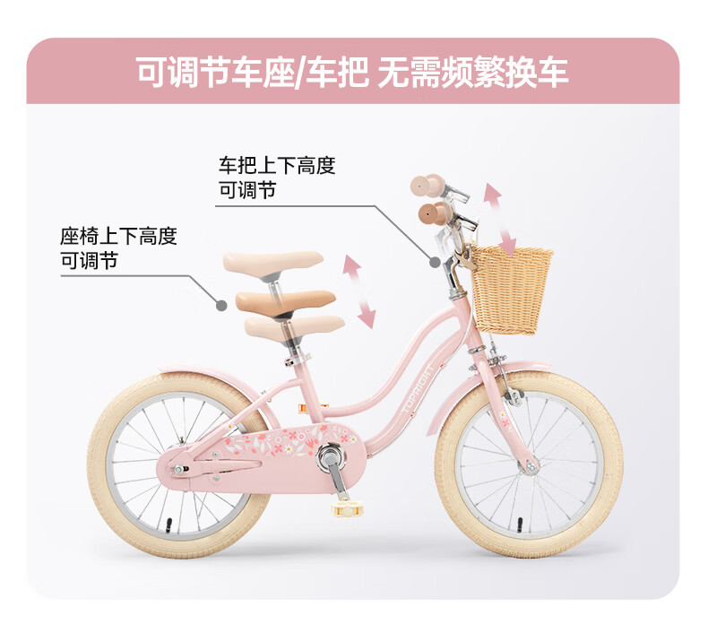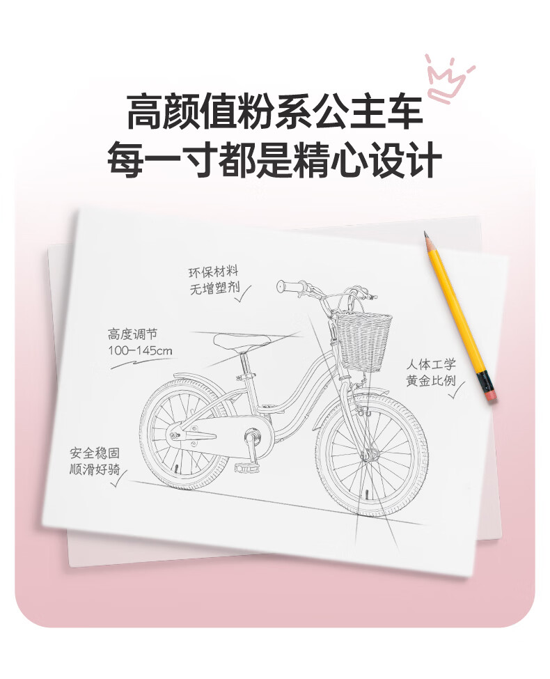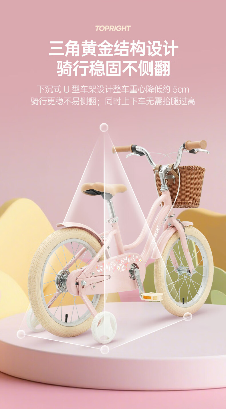 途锐达(TOPRIGHT)暖暖儿童自行车6-12岁女孩骑行16寸公主车学生专用女童单车脚踏车 暖暖黑胎版 16寸适合身高105-135CM