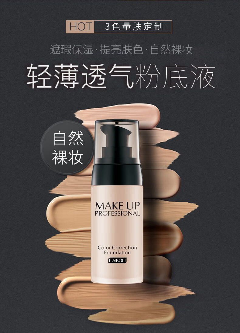 莱蔻【精选好物】粉底液40g遮瑕自然妆容保湿不易脱妆粉底彩妆BB霜化 40g 深肤色(1瓶装) 40ml
