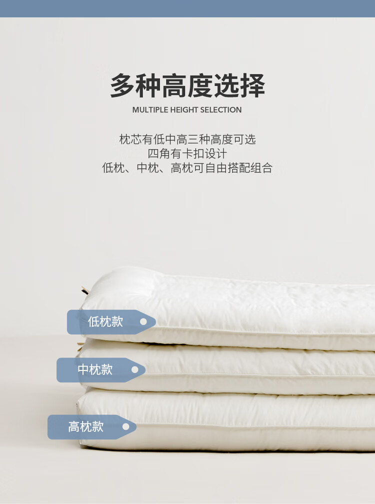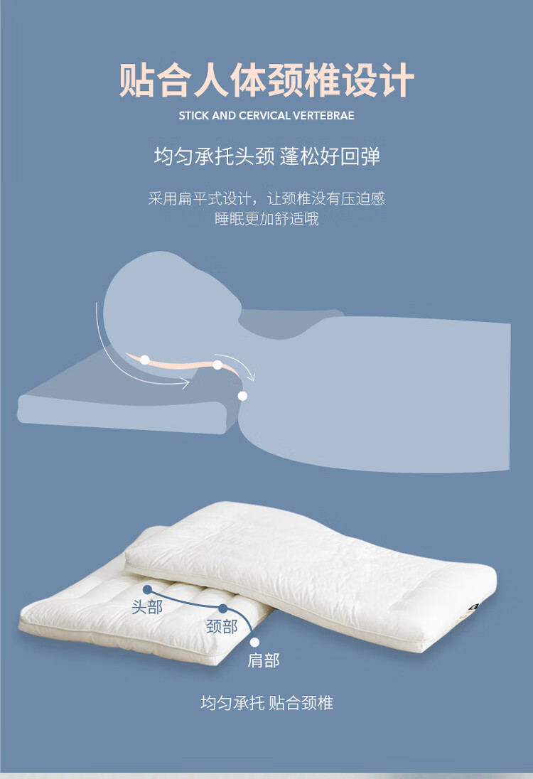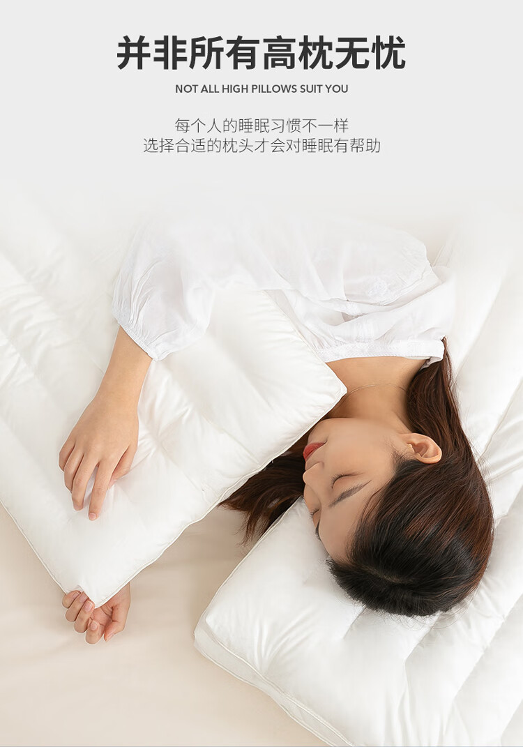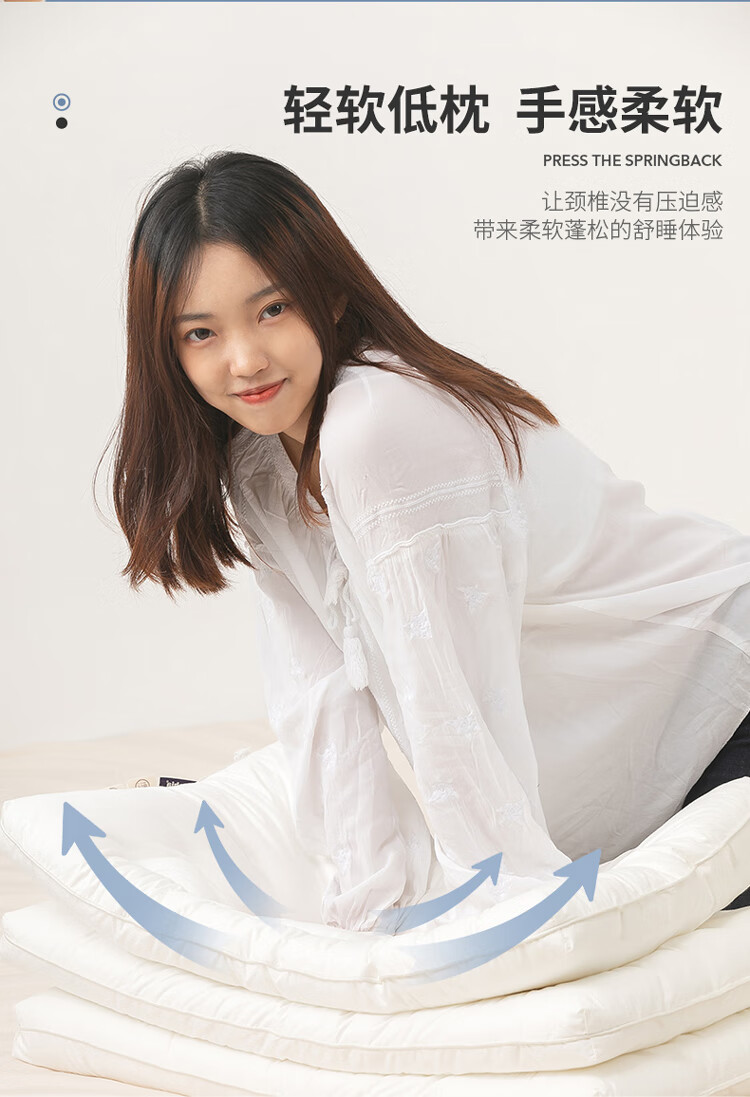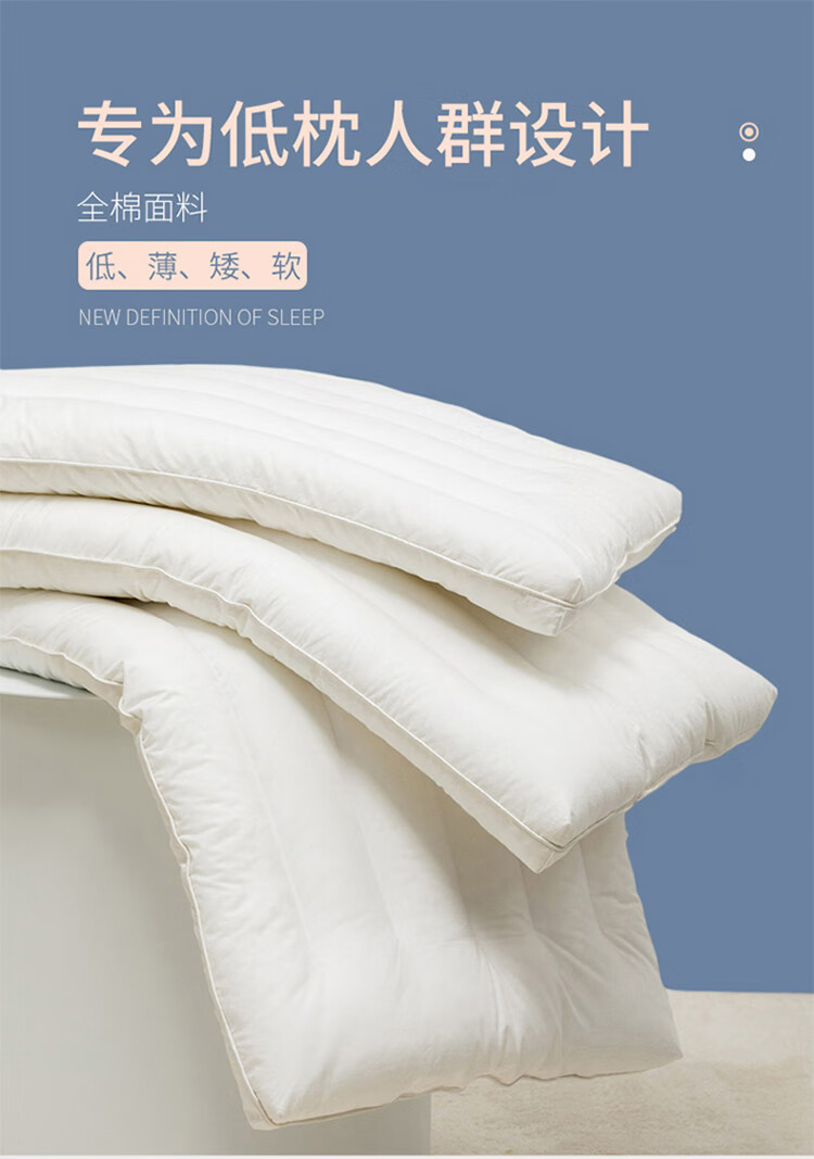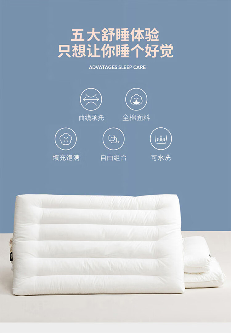 多喜爱家纺全棉枕头 舒适软枕芯学生枕呵护枕单只装 一对拍2个 全棉呵护枕-低枕