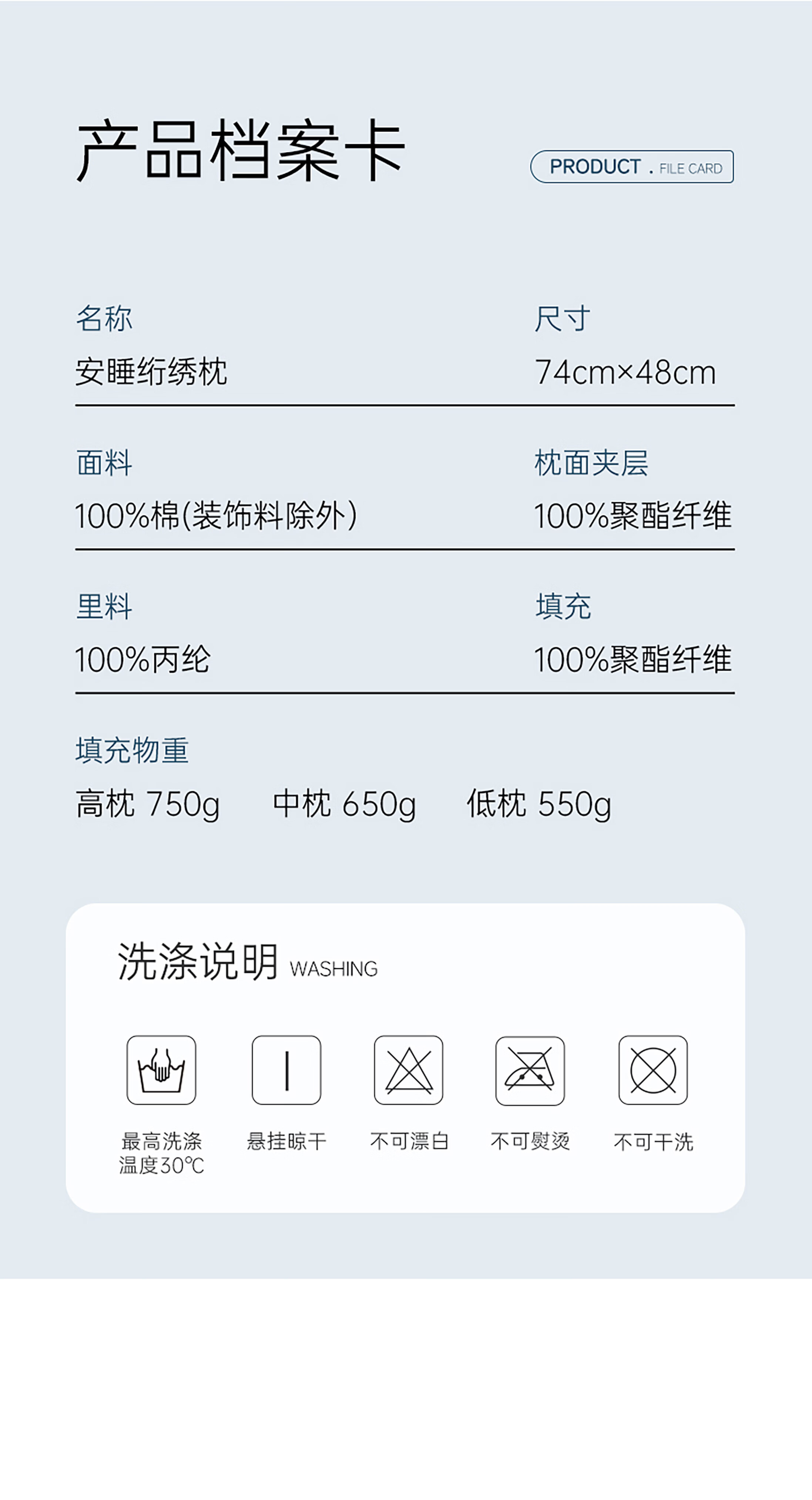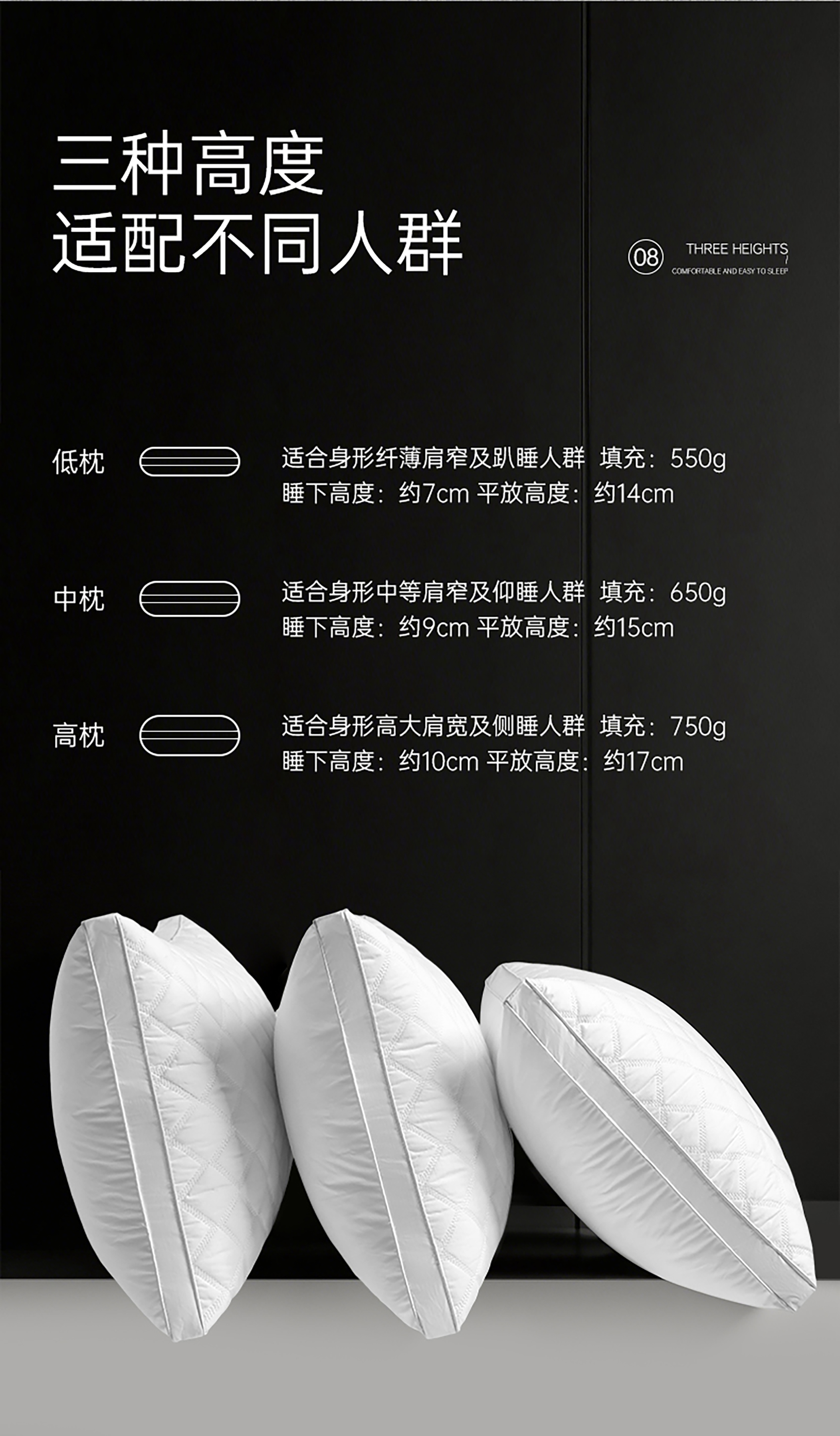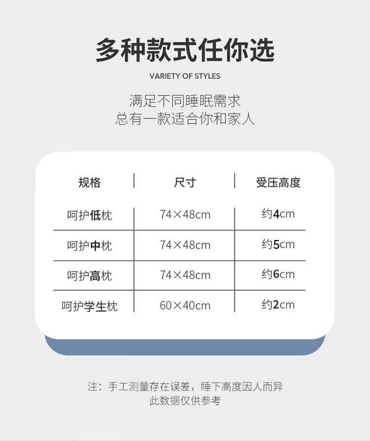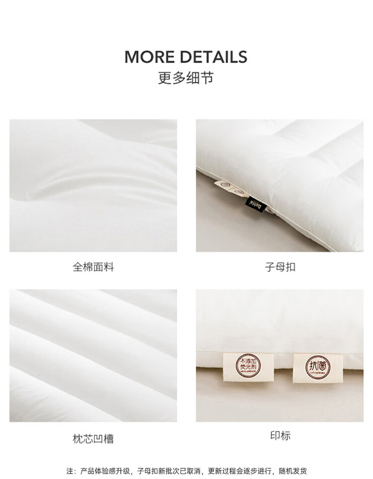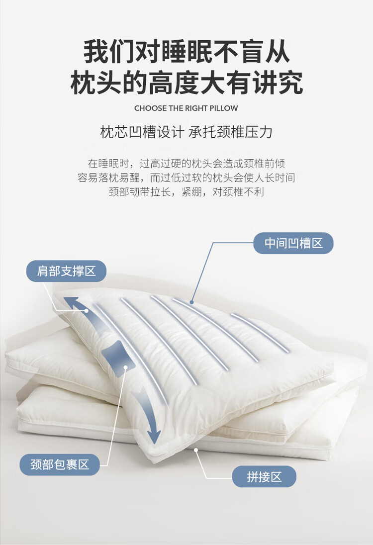多喜爱家纺全棉枕头 舒适软枕芯学生枕呵护枕单只装 一对拍2个 全棉呵护枕-低枕