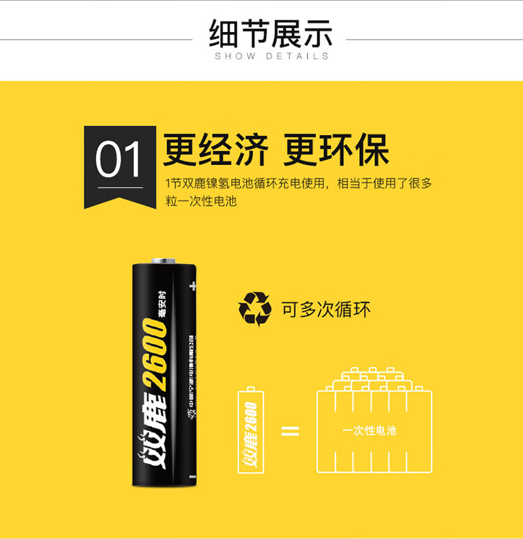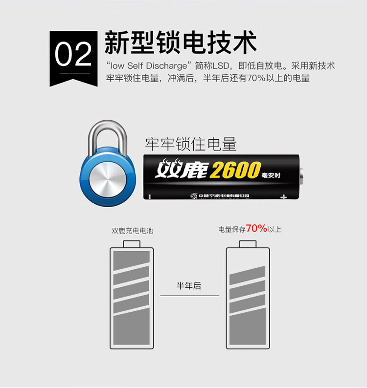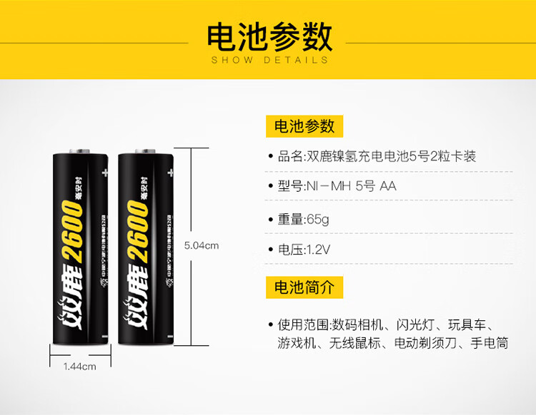 双鹿5号五号镍氢充电电池2600毫安时 数码相机闪光灯儿童玩具游戏机无线鼠标剃须刀 5号2600毫安时2粒