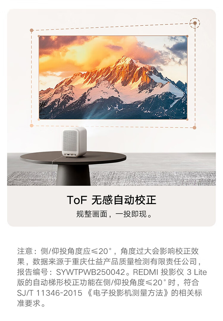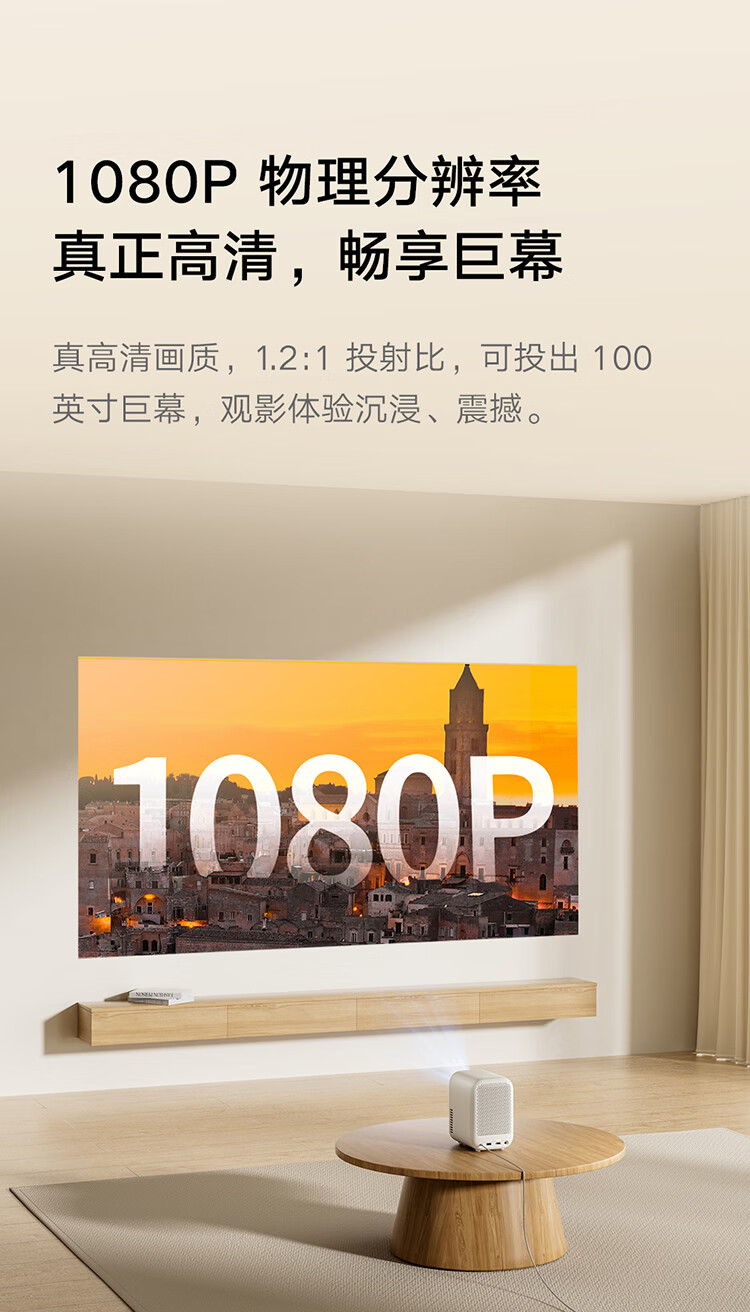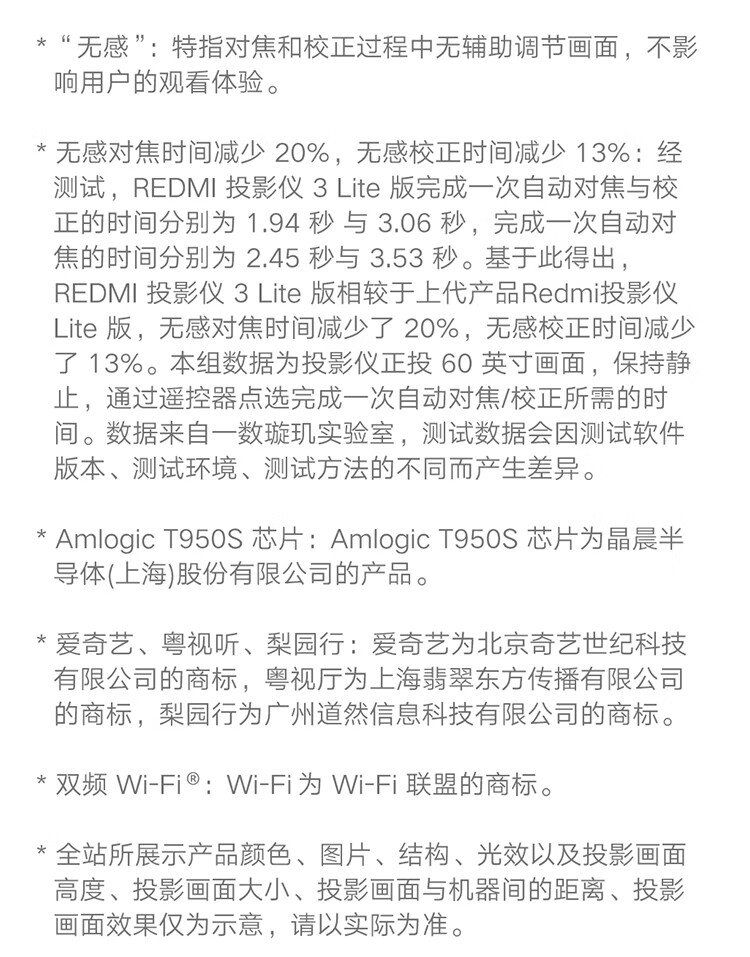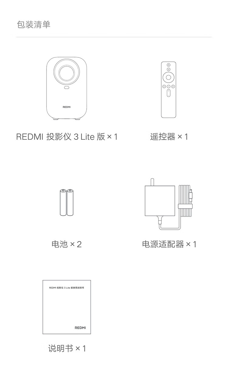 小米(MI)投影仪Redmi3 Lite版 投影仪家用 智能家庭影院 无感对焦 无感校正 1080P物理分辨率 MIUI系统