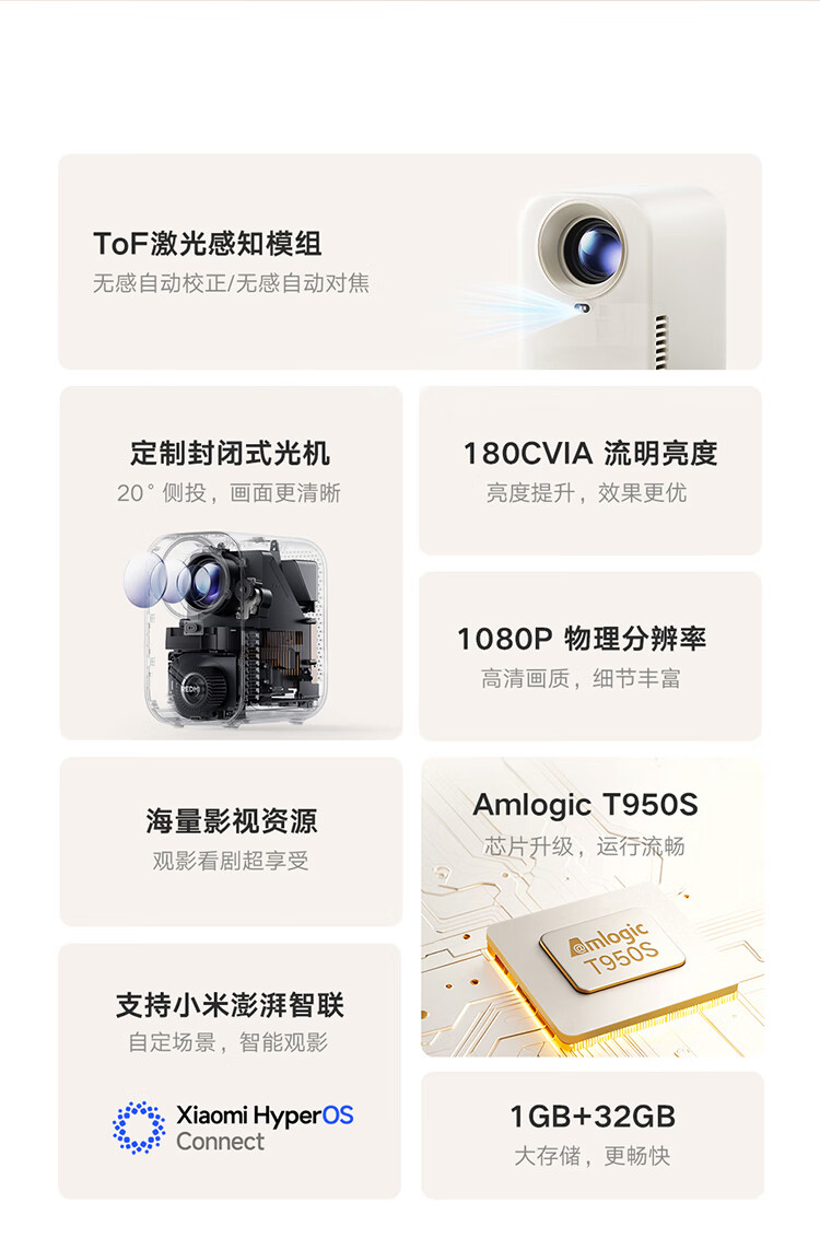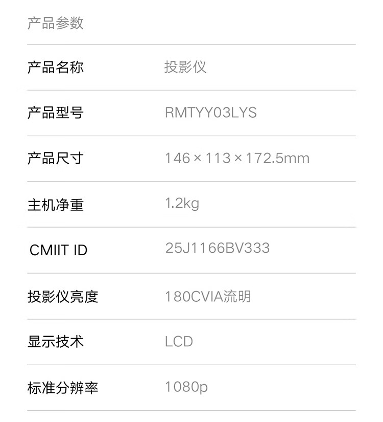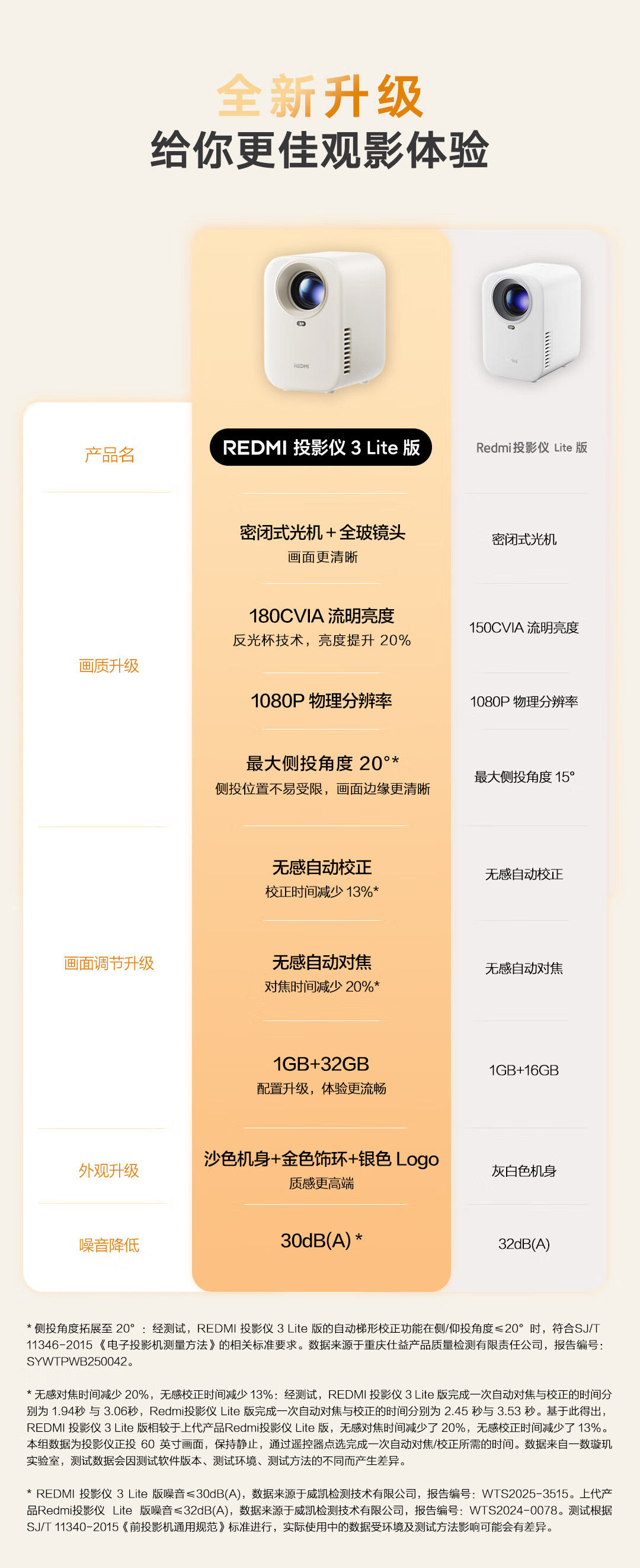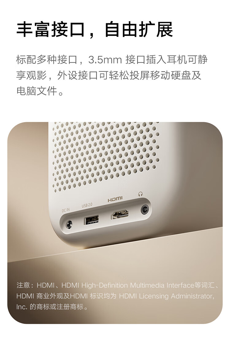 小米(MI)投影仪Redmi3 Lite版 投影仪家用 智能家庭影院 无感对焦 无感校正 1080P物理分辨率 MIUI系统