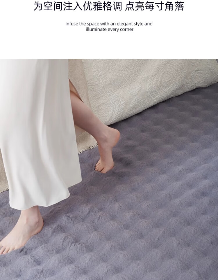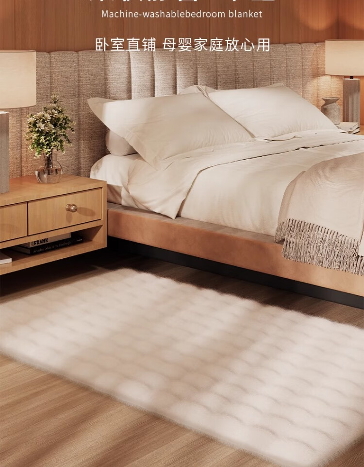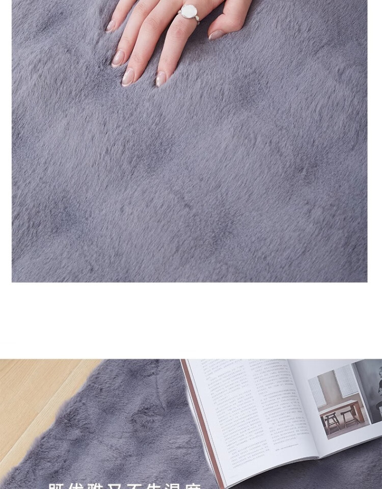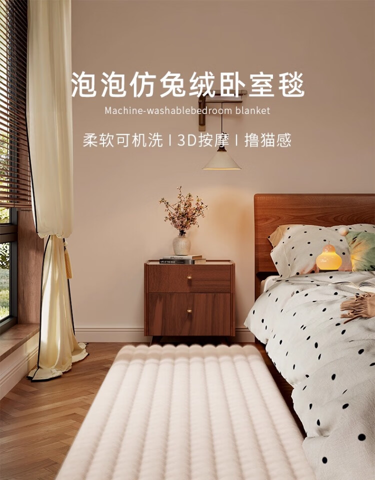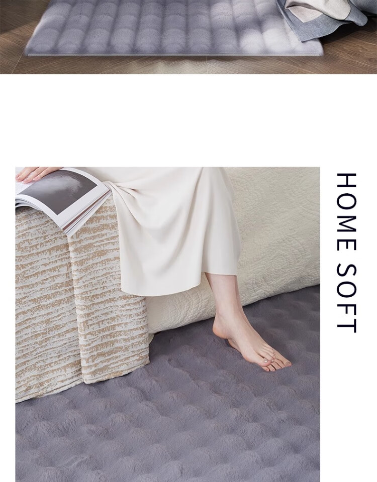 京华仿兔毛床边毯主卧室可机洗新款加厚加密不掉毛长条撸猫感毛绒地毯 深灰-泡泡 60cm*160cm 加厚加密材质